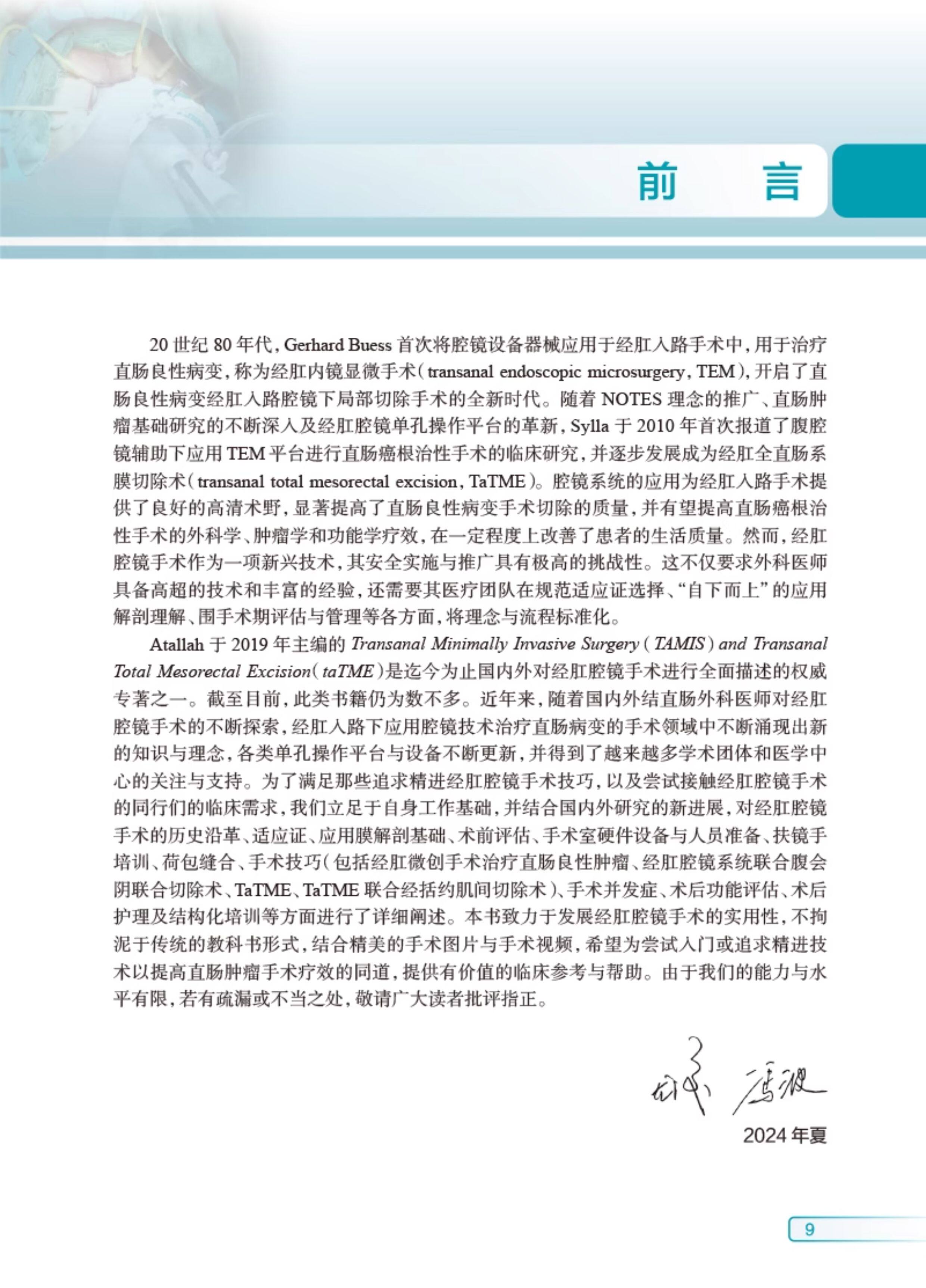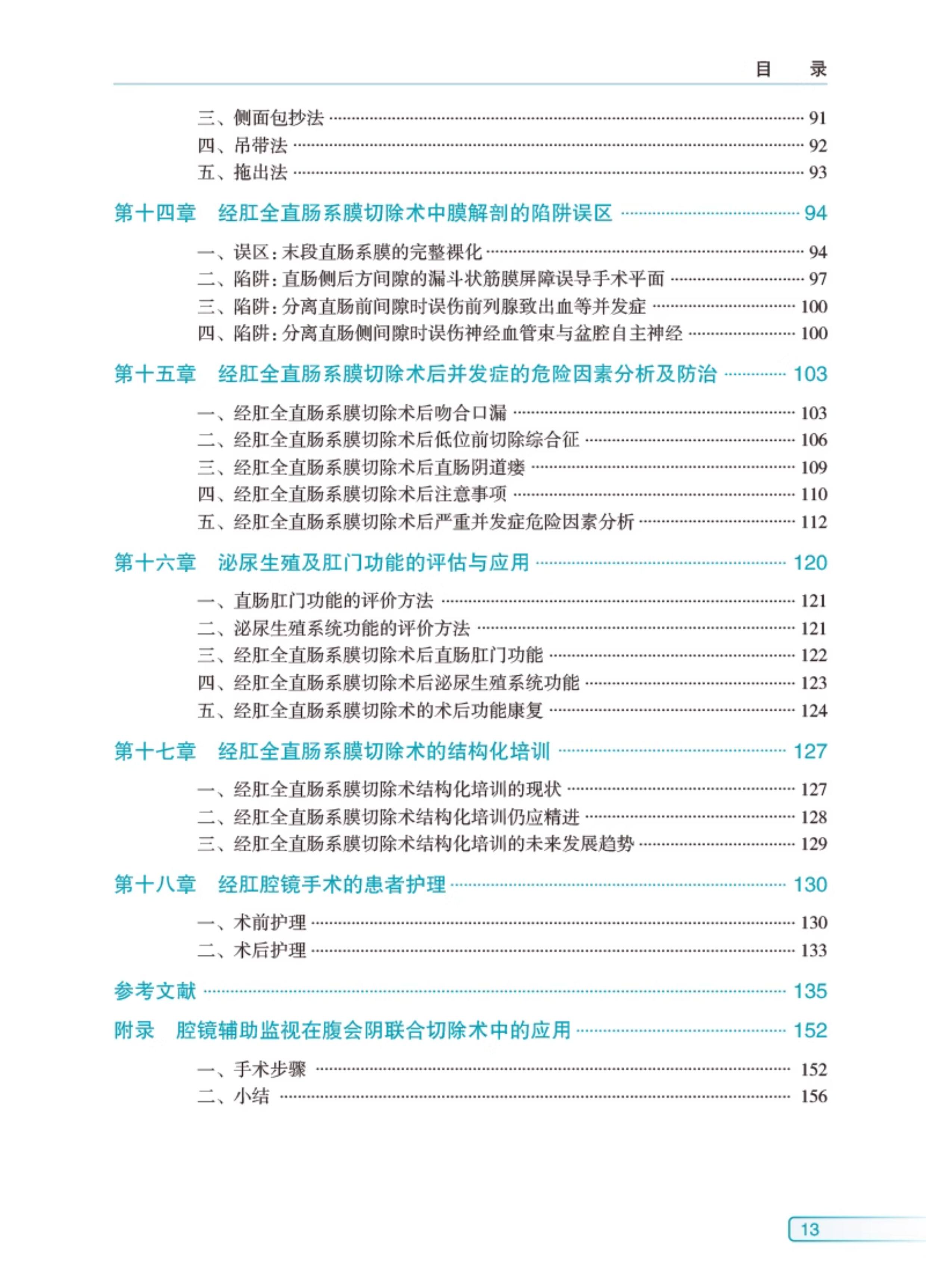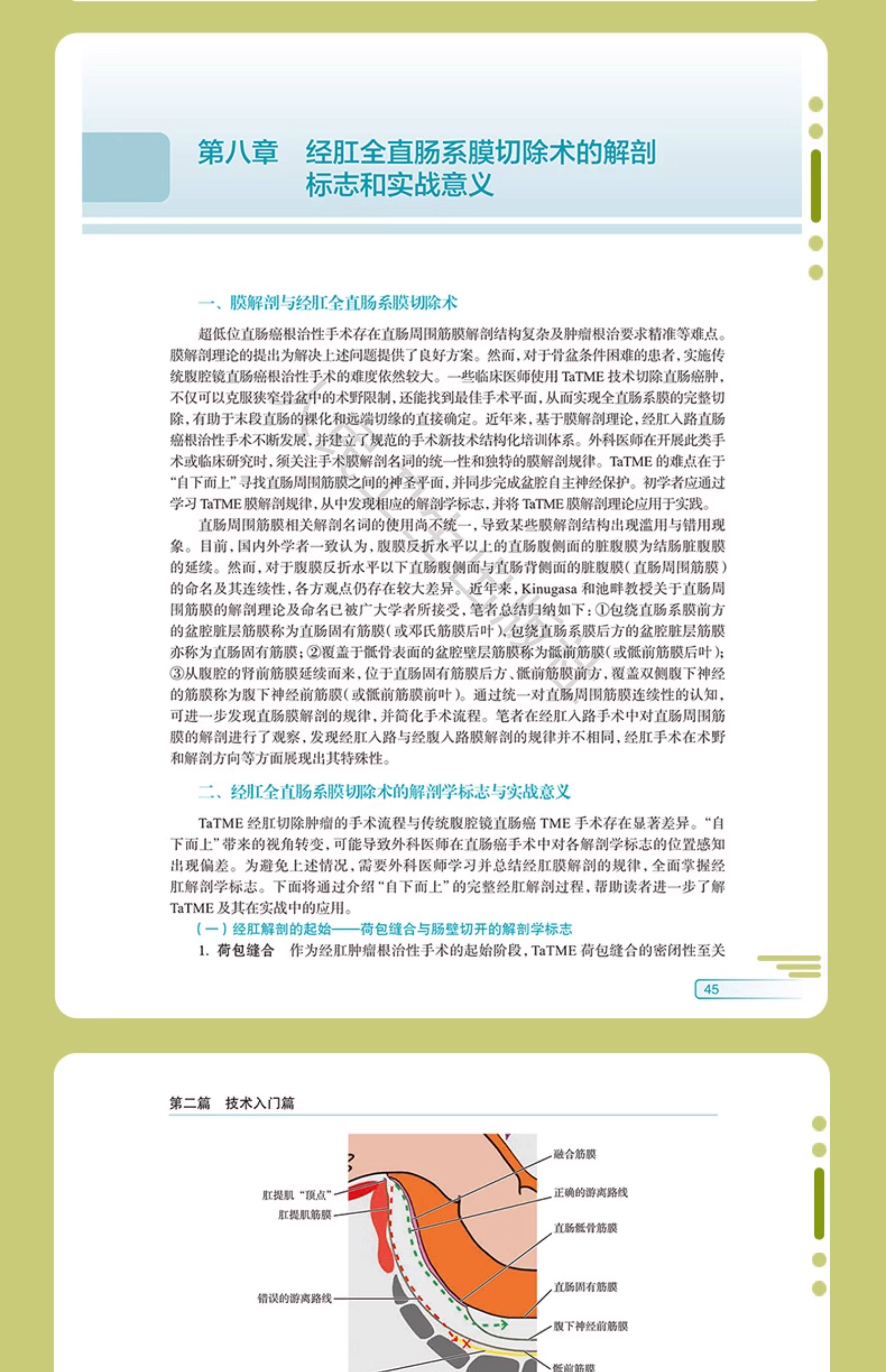 本书立足于笔者自身工作基础,并结合了国内外研究的新进展,将经肛腔镜手术的精华进行总结,主要内容包括以下内容。【1】经肛腔镜手术的基本概念:经肛腔镜手术的历史起源、适应证、应用膜解剖基础、术前评估、手术室硬件设备与人员准备在内的手术室布局及直肠癌术前影像学评估。【2】经肛腔镜手术技术入门:经肛组扶镜手的培训课程、经肛荷包缝合技巧、经肛腔镜手术基本流程与技巧(包括TAMIS治疗直肠良性肿瘤、经肛腔镜系统联合腹会阴联合切除术)。【3】经肛腔镜手术技术精进:详细介绍了经肛腔镜手术的技术精华与拓展(包括taTME、taTME联合经括约肌间切除术)、手术中的解剖陷阱与误区、手术能量器械的选择、手术并发症、术后功能评估、术后护理及结构化培训。