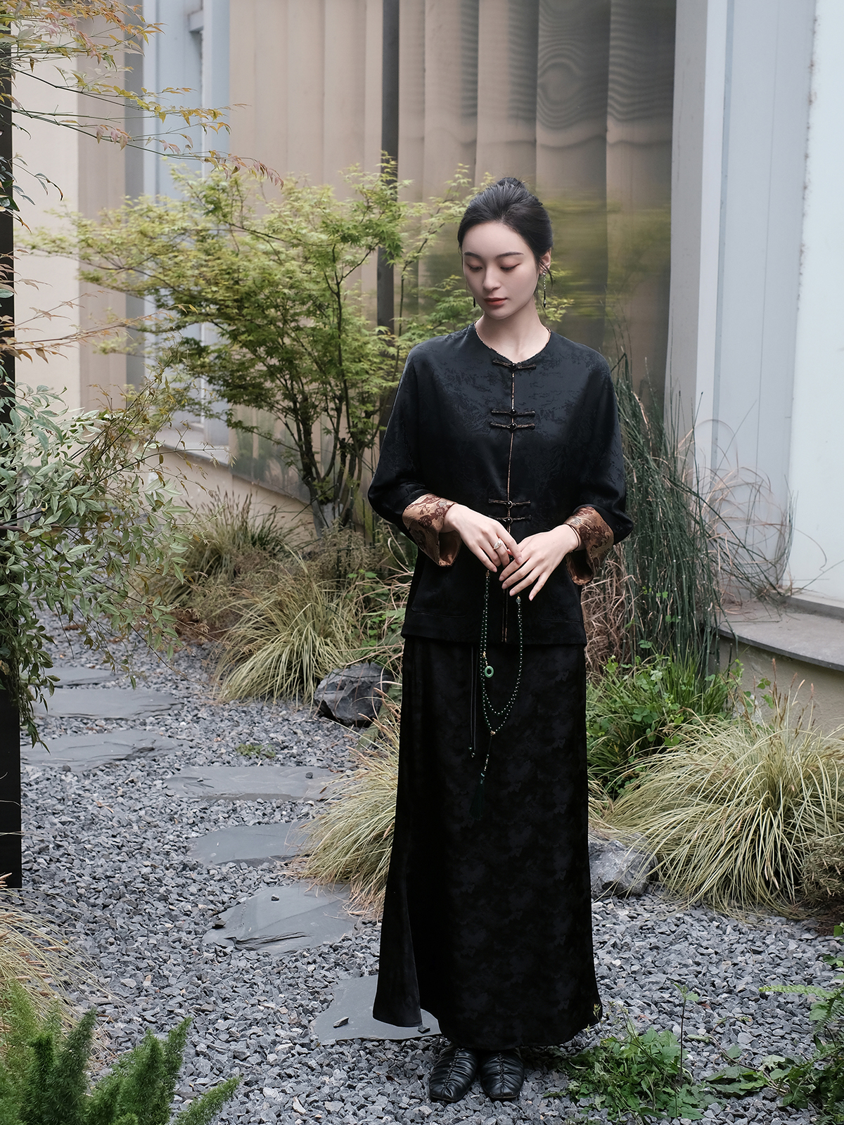 盛唐婧 |桑蚕丝重缎半身鱼尾裙-黑色