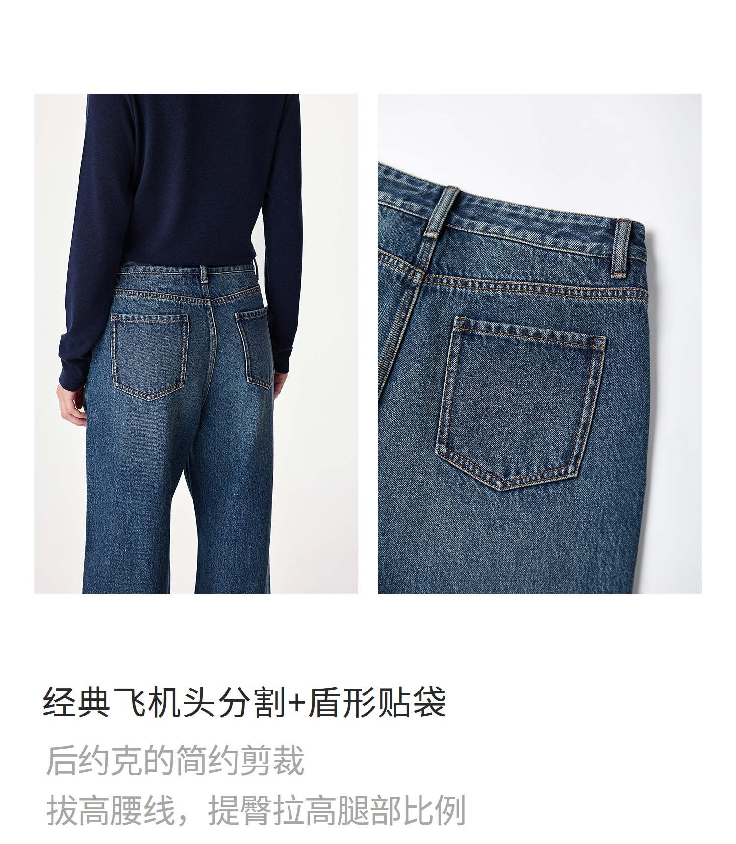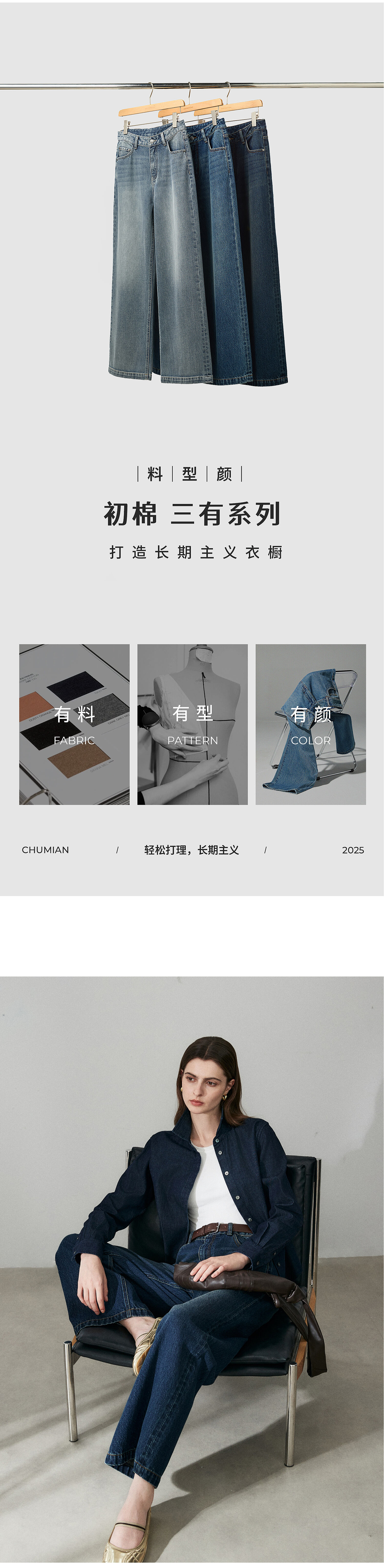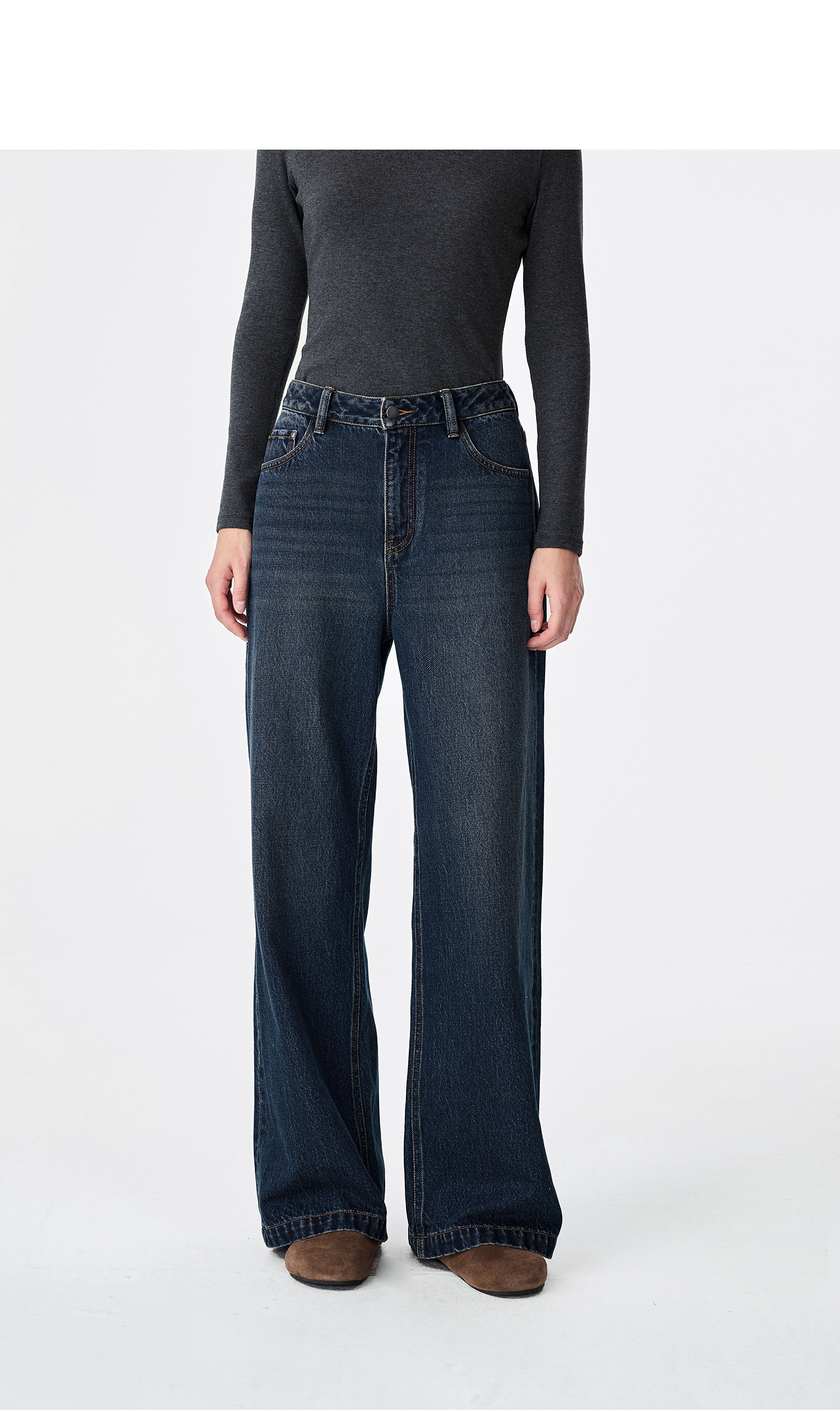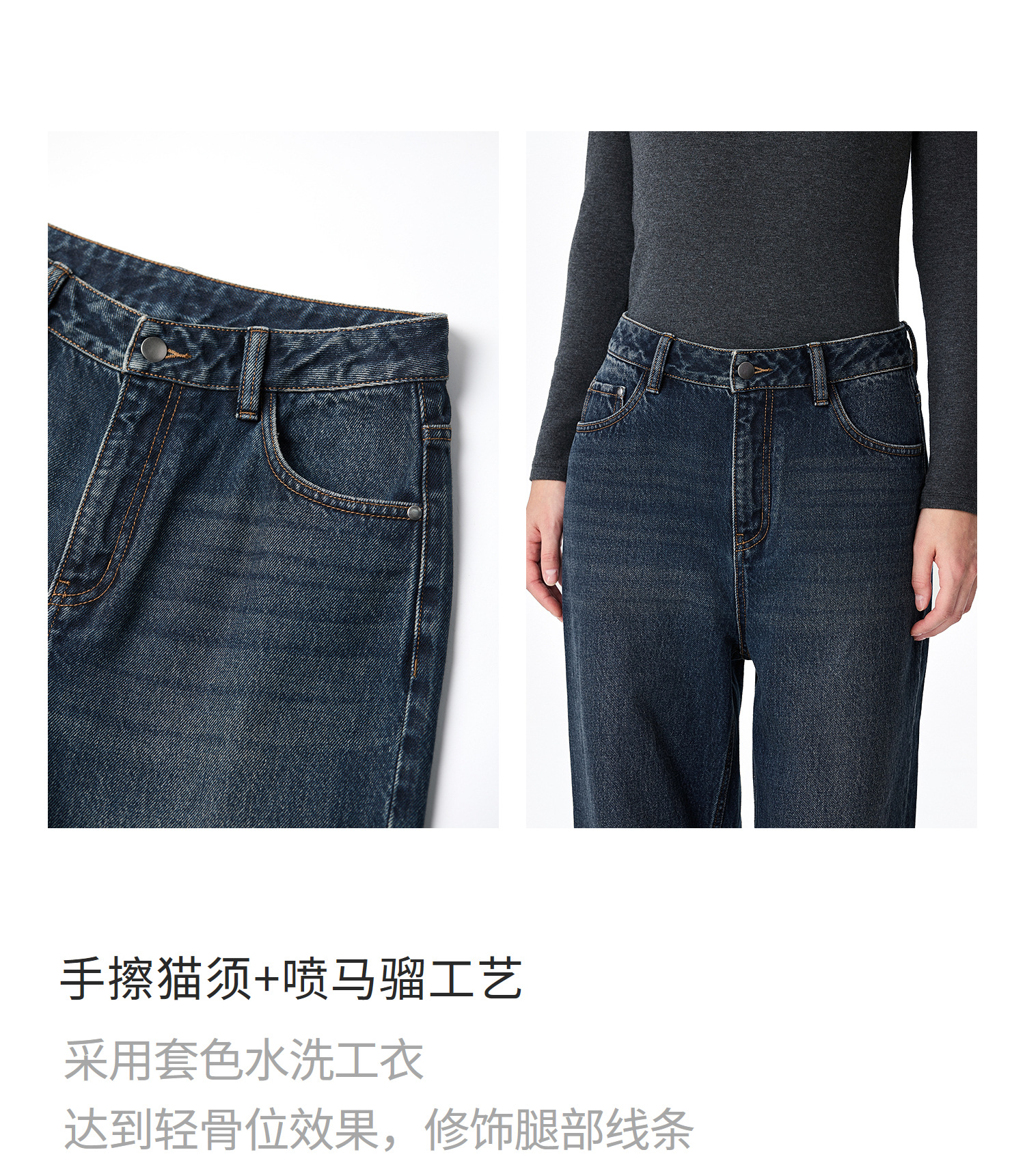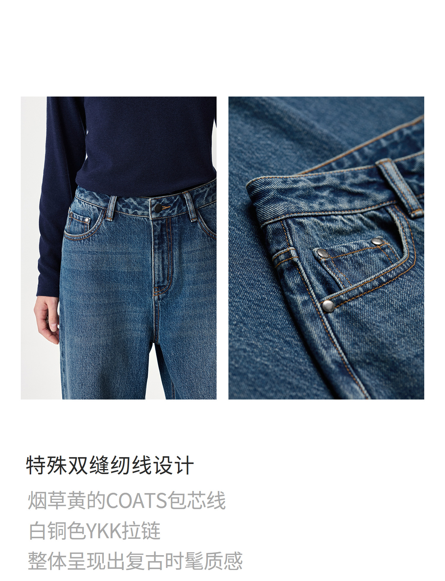 棉仓366619011-复古休闲感水洗牛仔丹宁阔腿裤