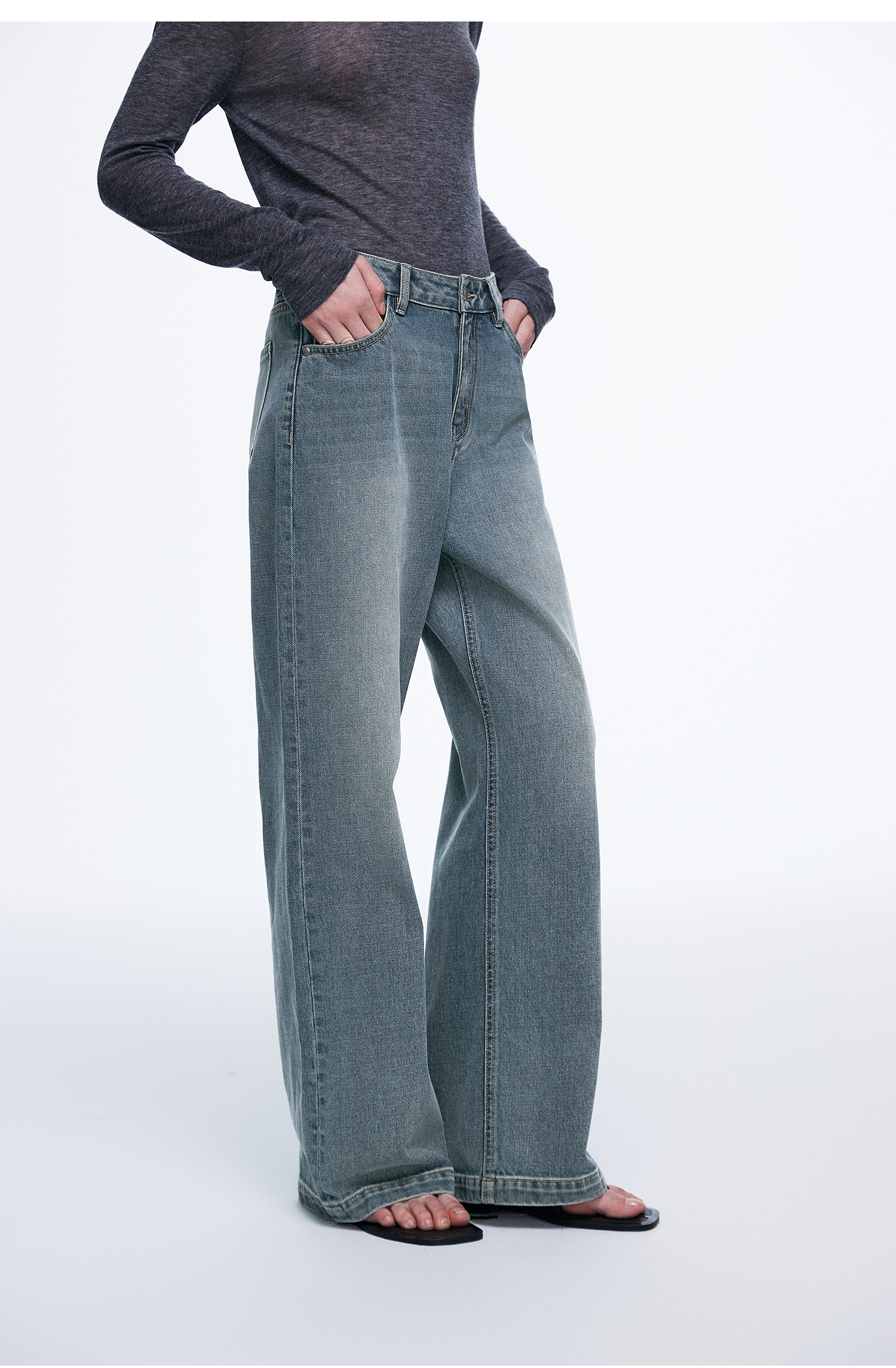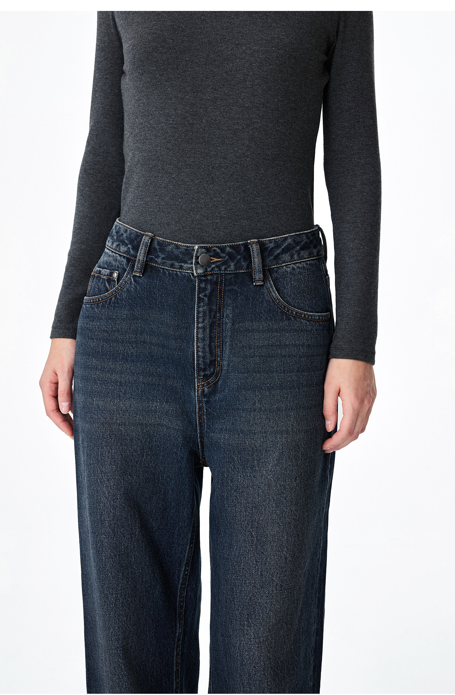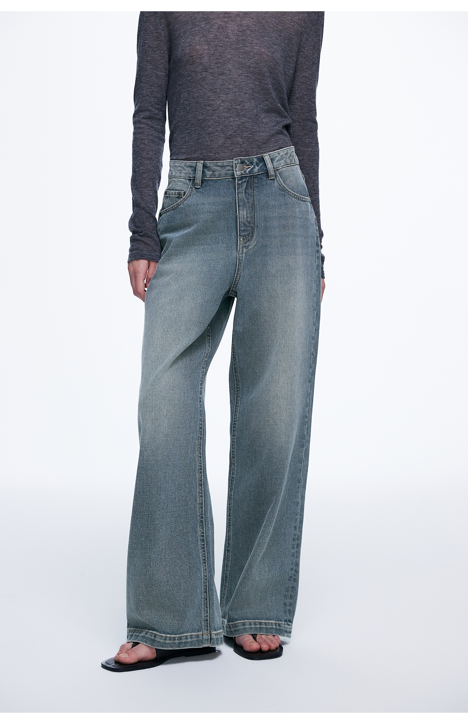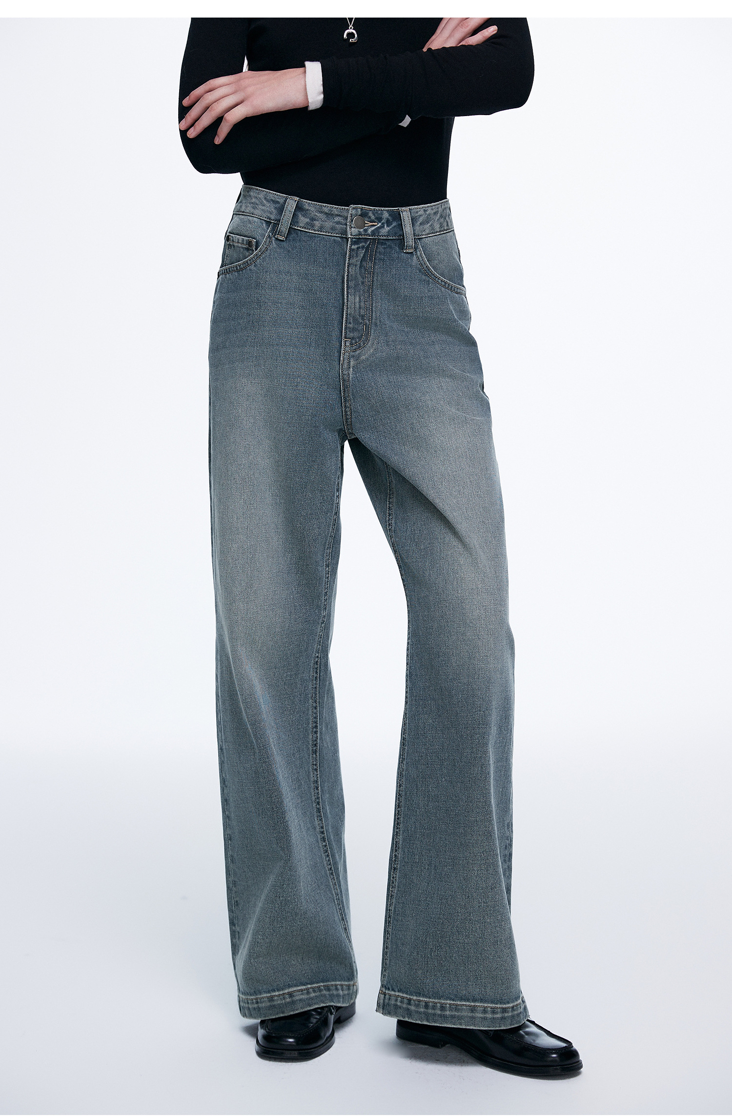 棉仓366619011-复古休闲感水洗牛仔丹宁阔腿裤