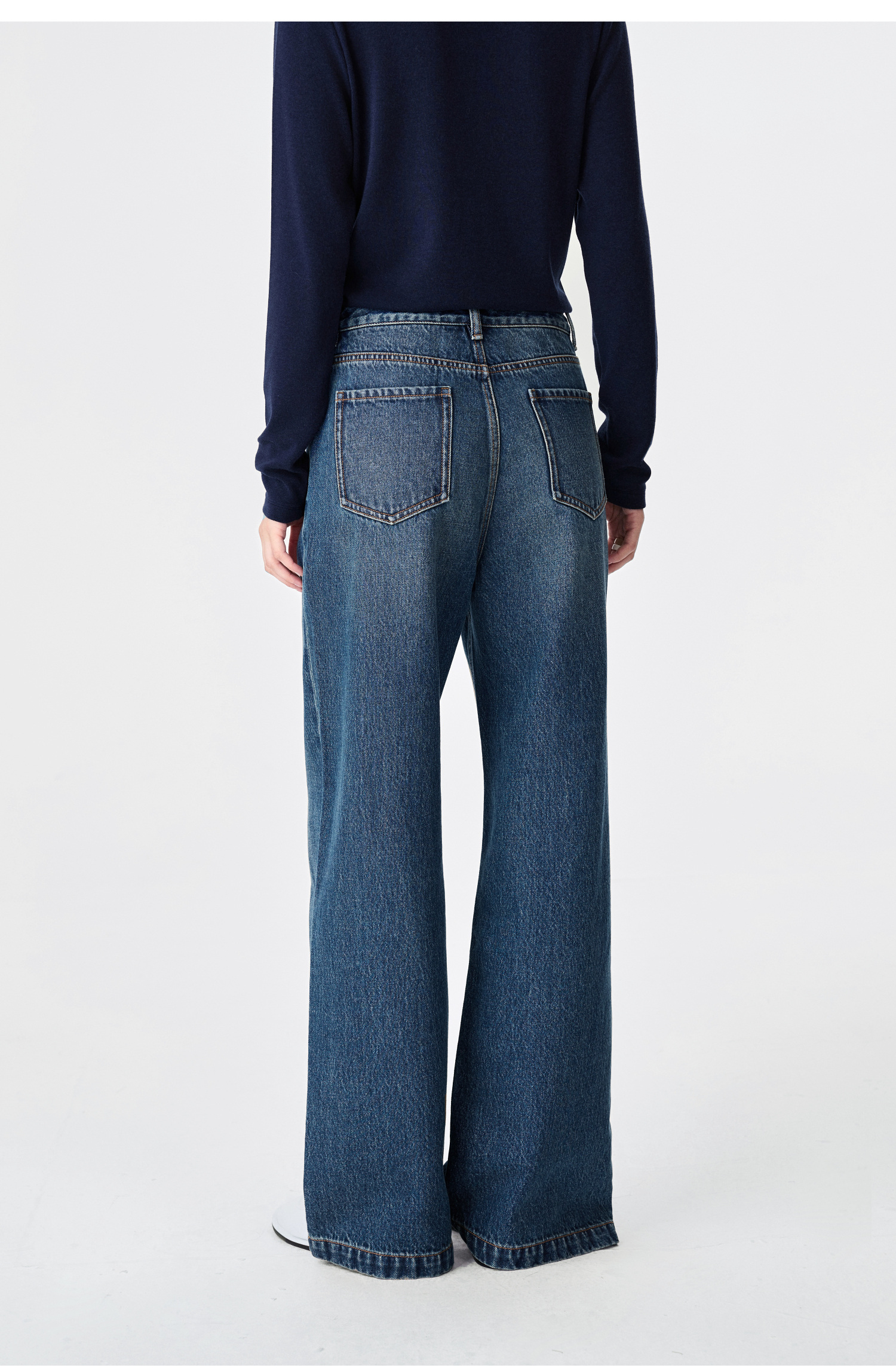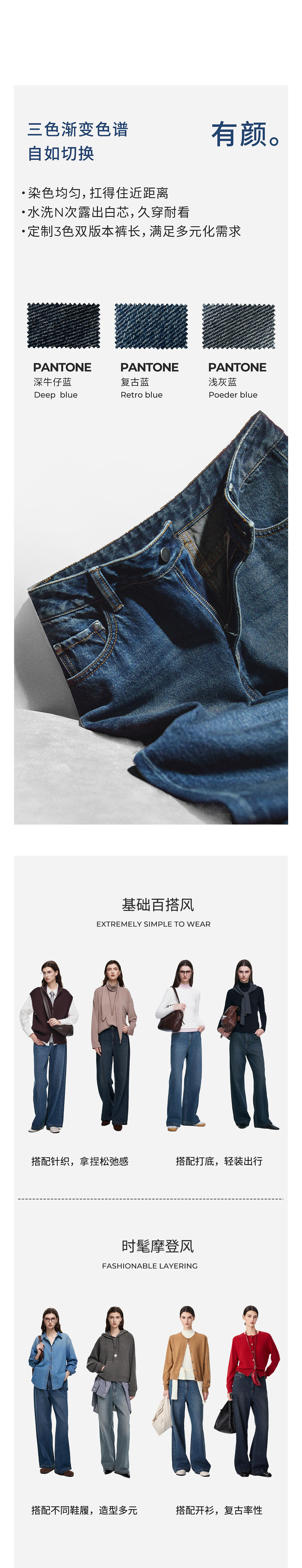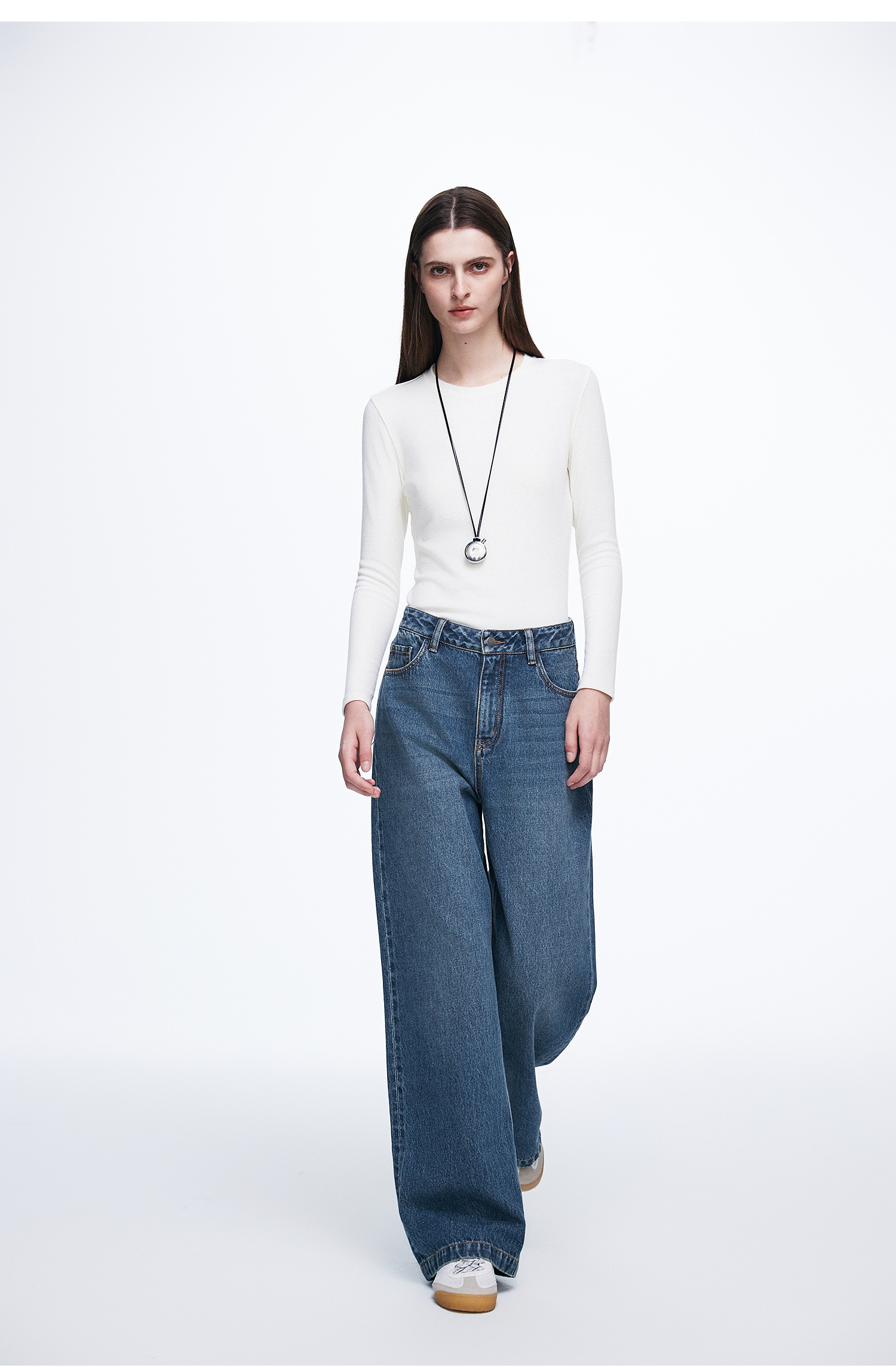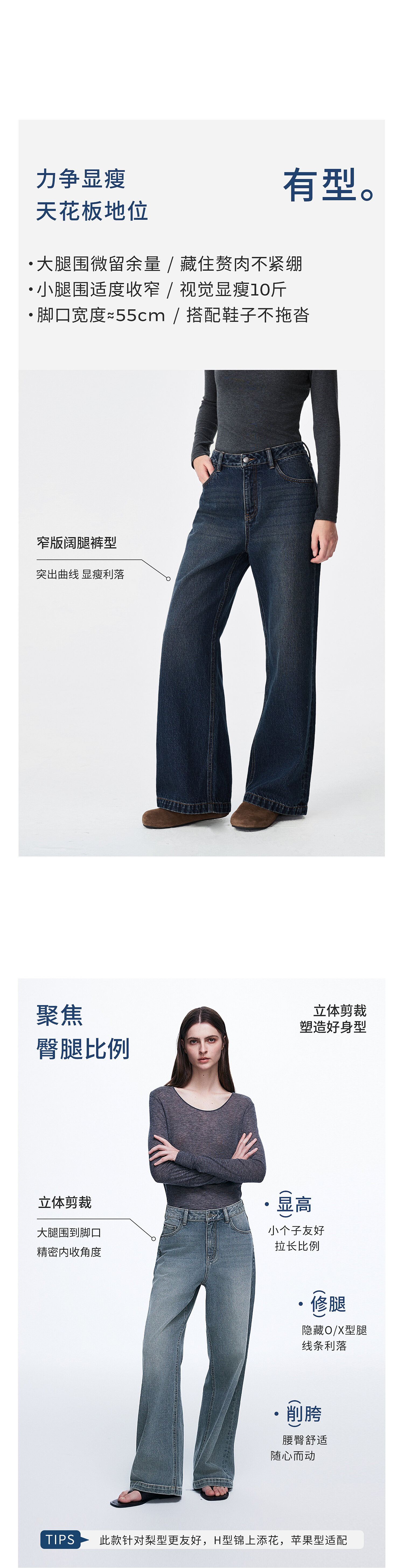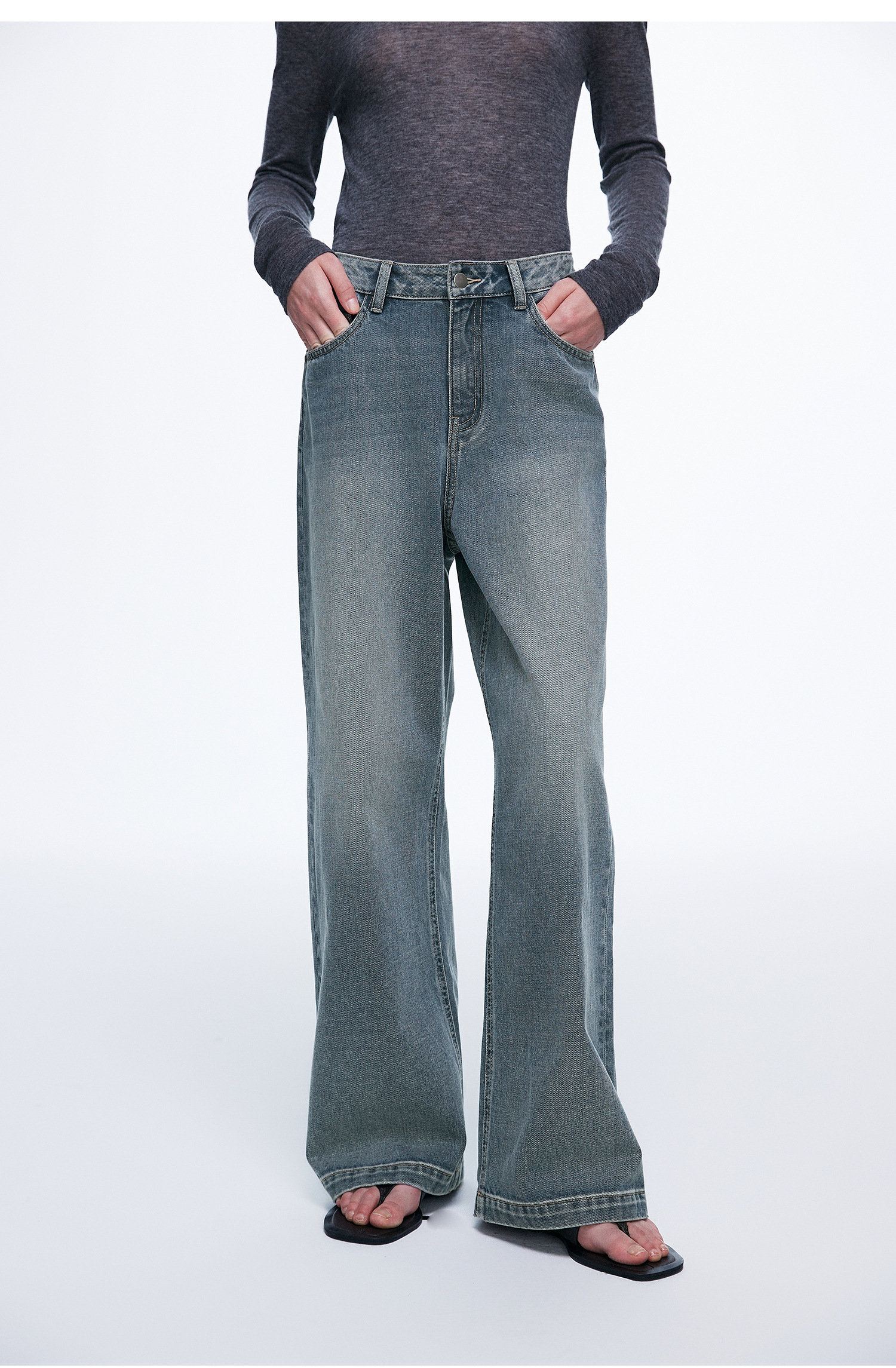 棉仓366619011-复古休闲感水洗牛仔丹宁阔腿裤