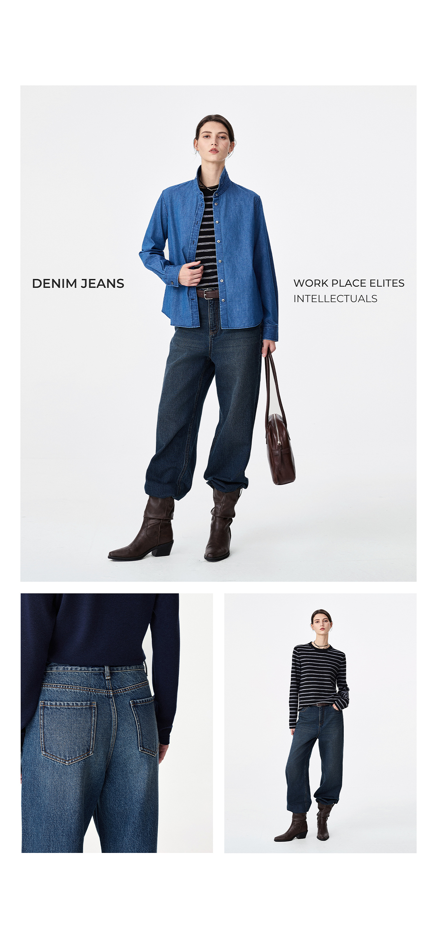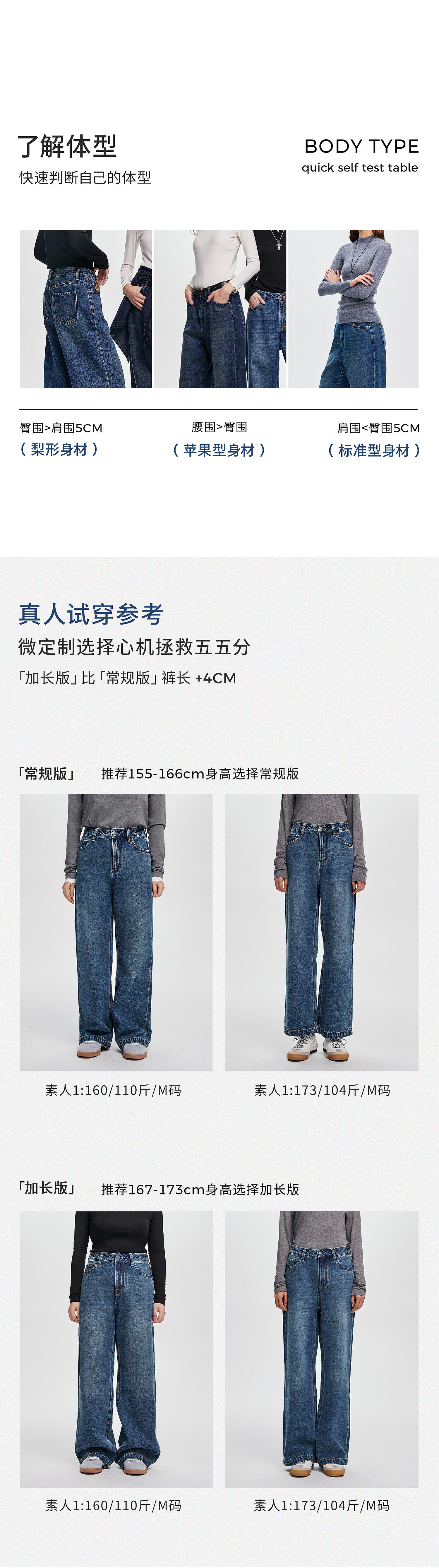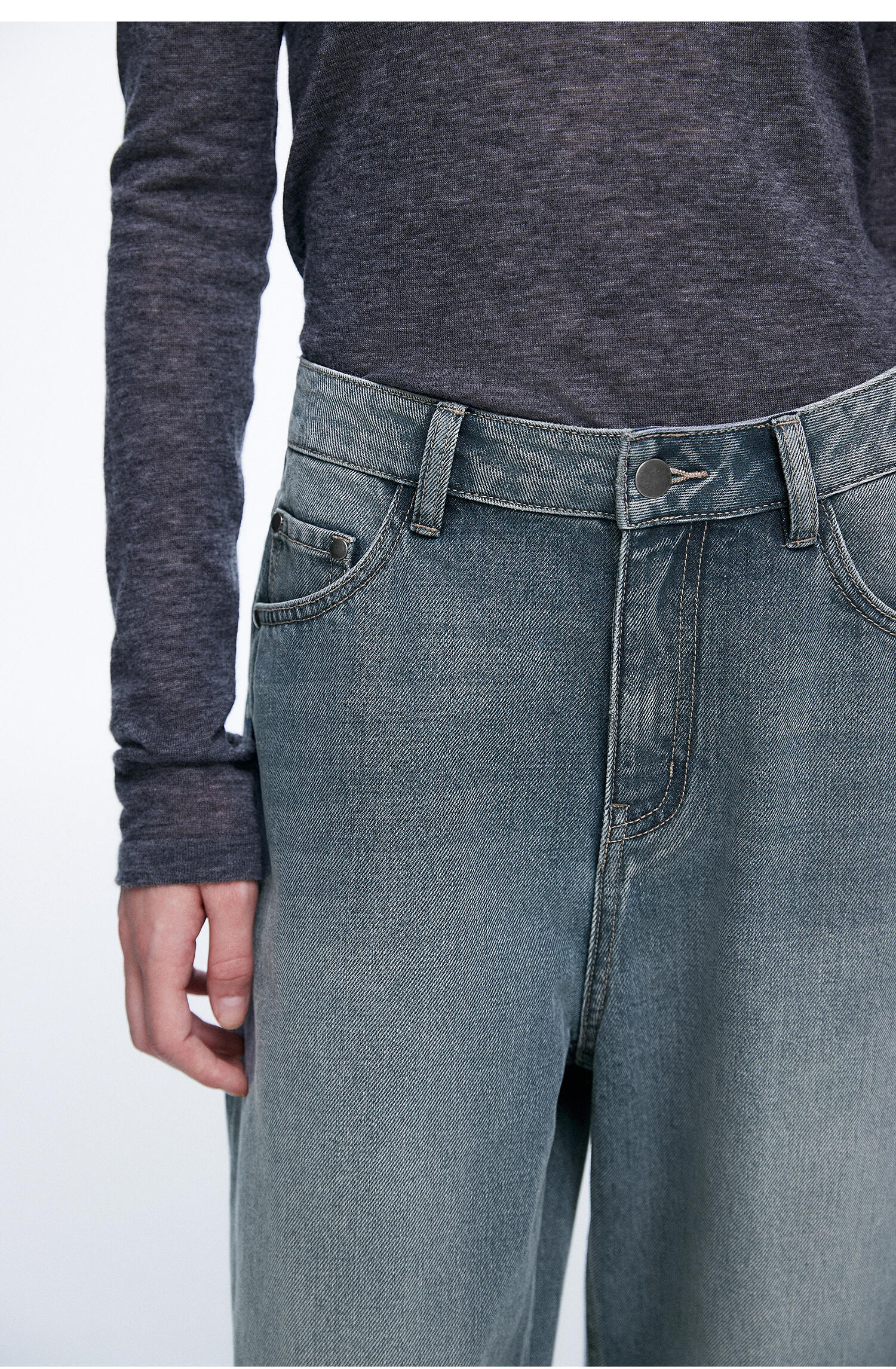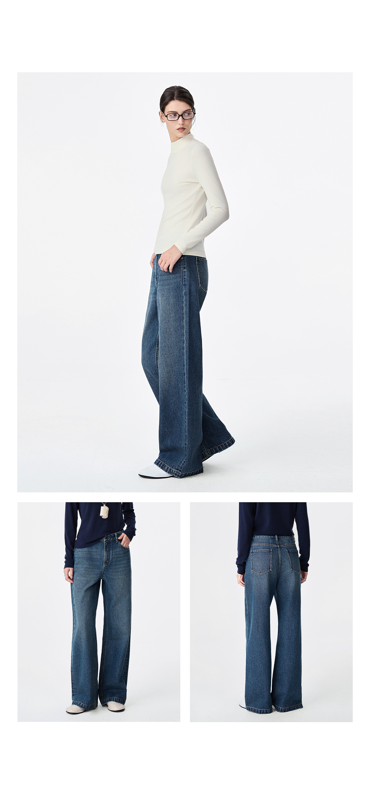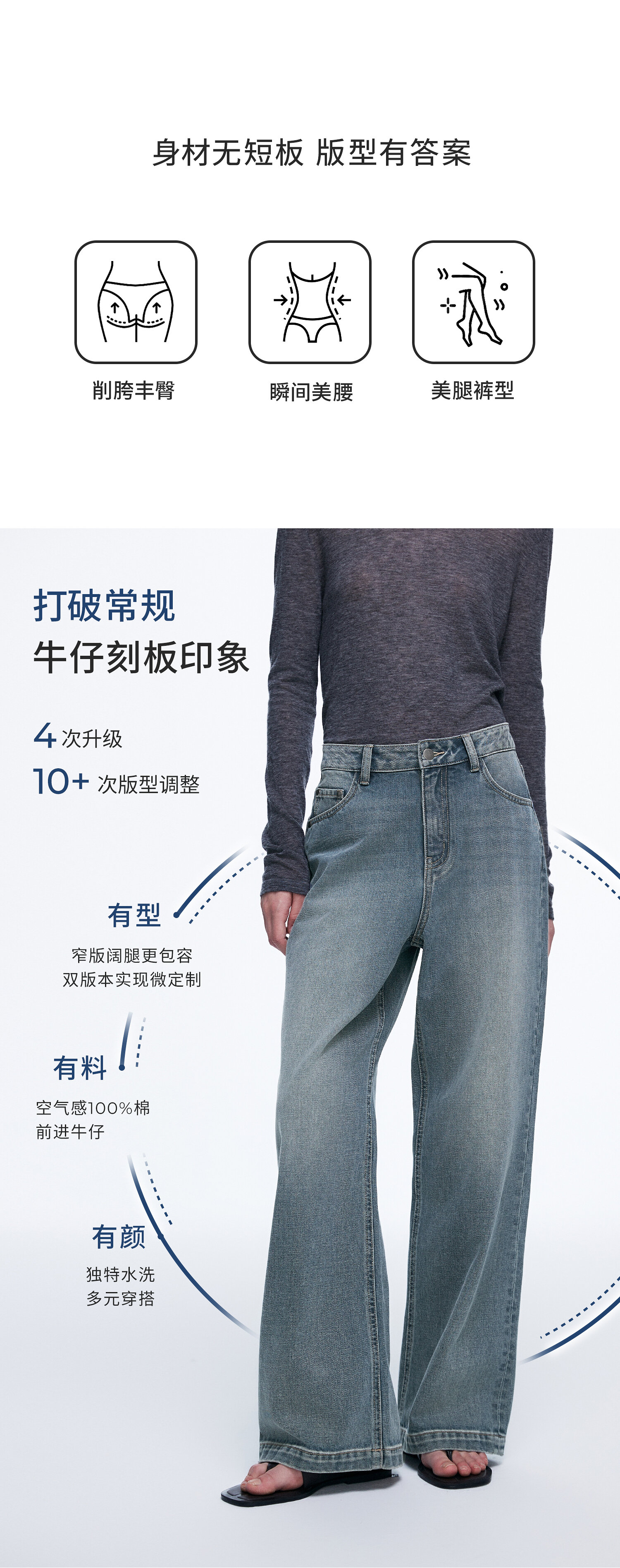 棉仓366619011-复古休闲感水洗牛仔丹宁阔腿裤
