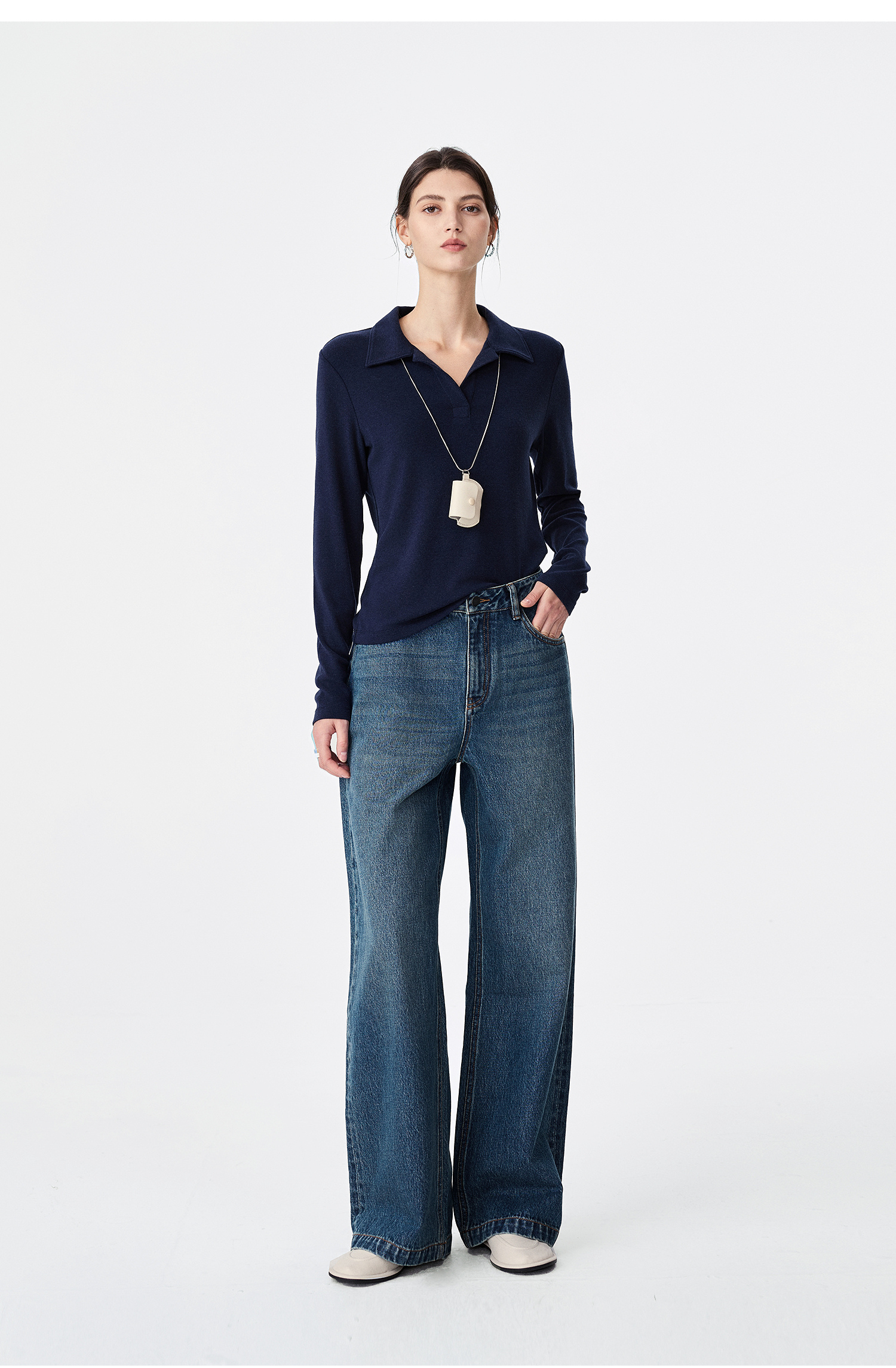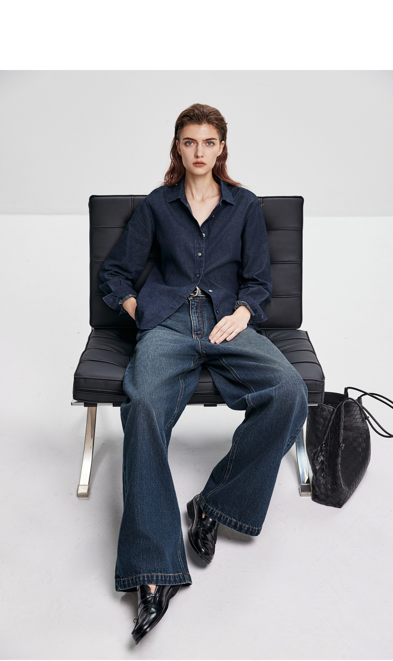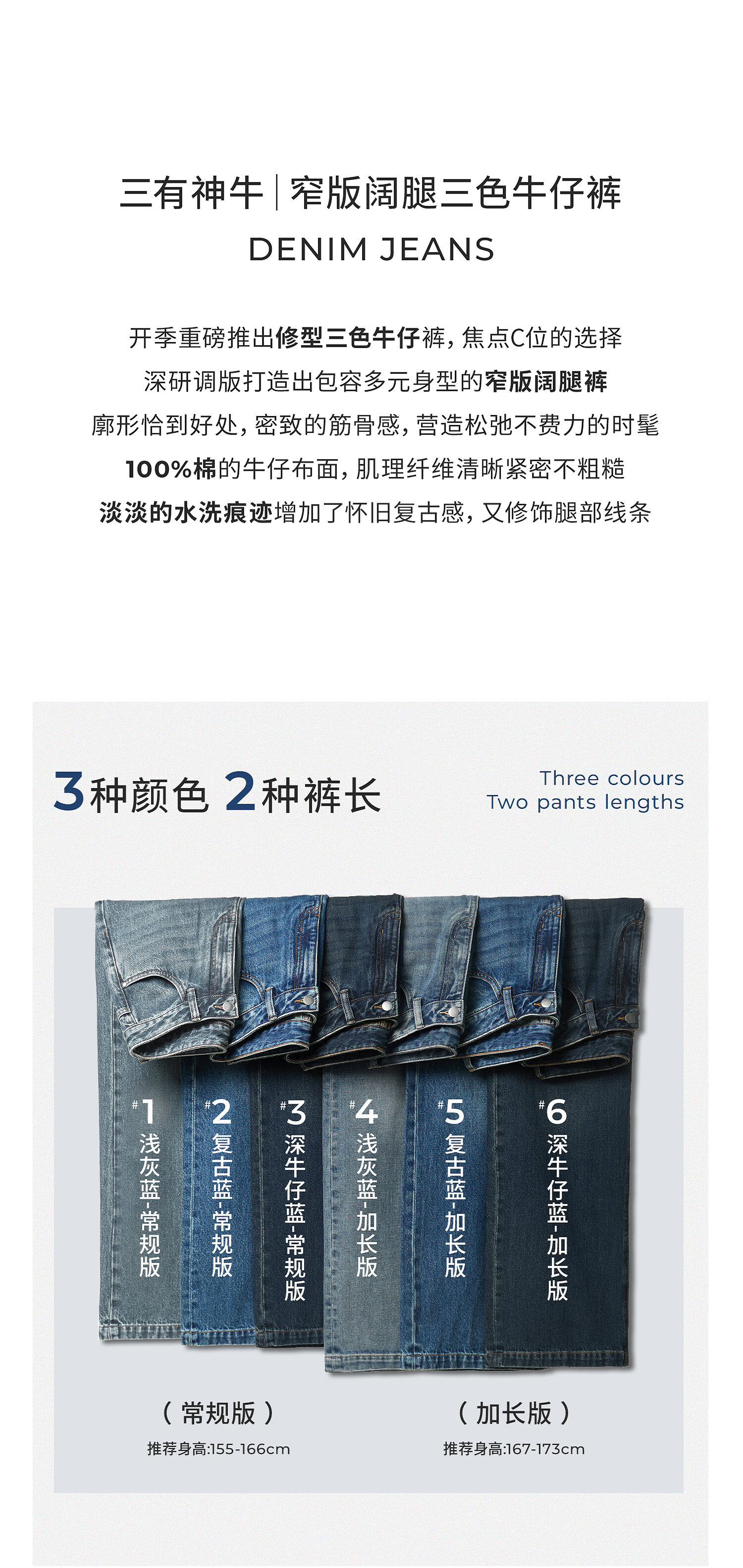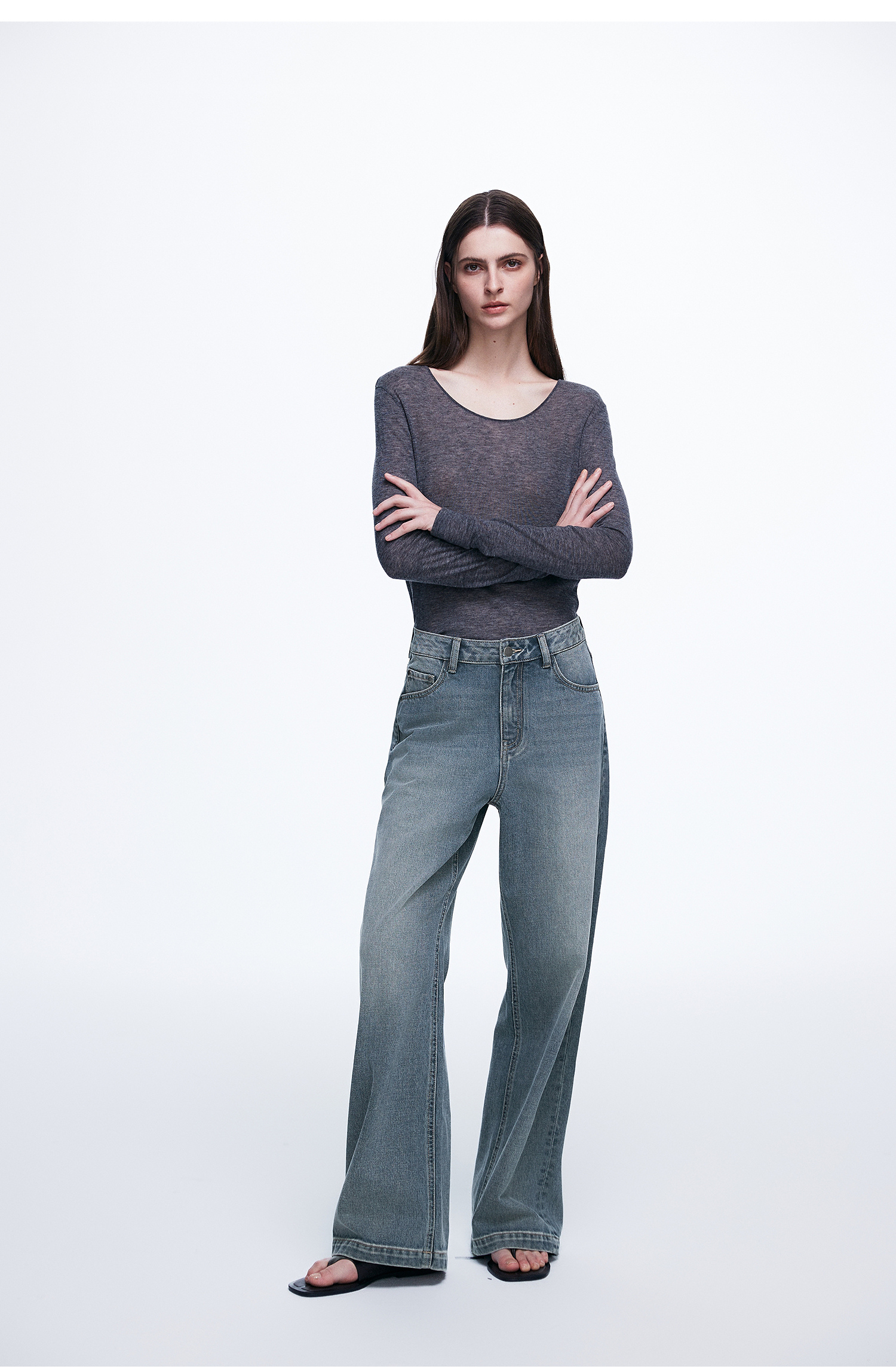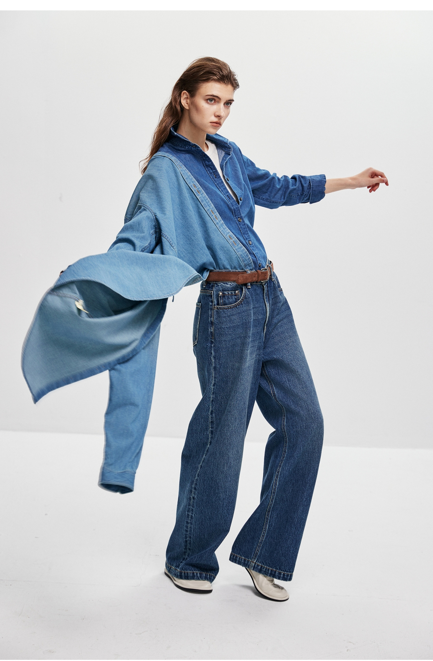 棉仓366619011-复古休闲感水洗牛仔丹宁阔腿裤