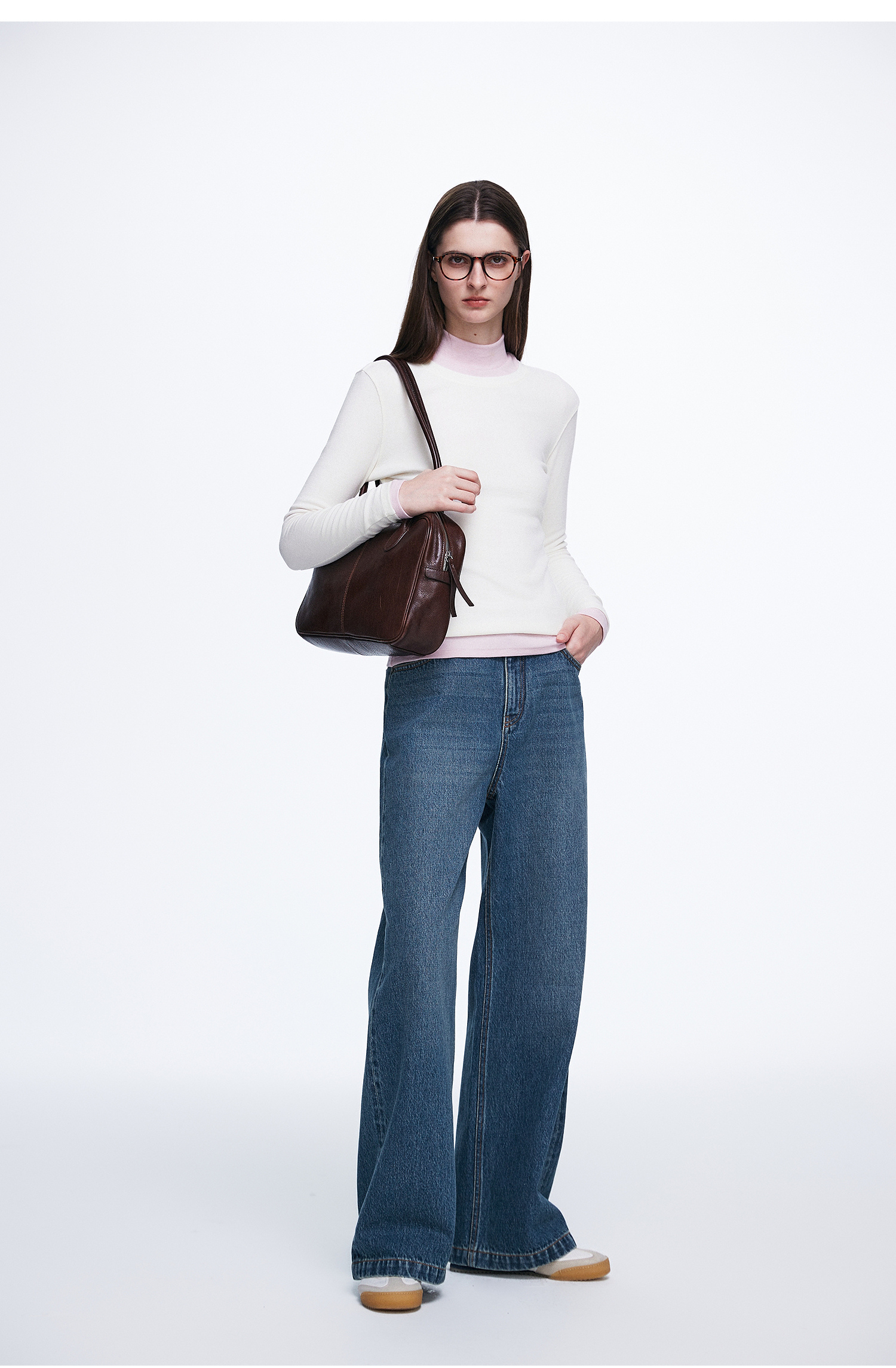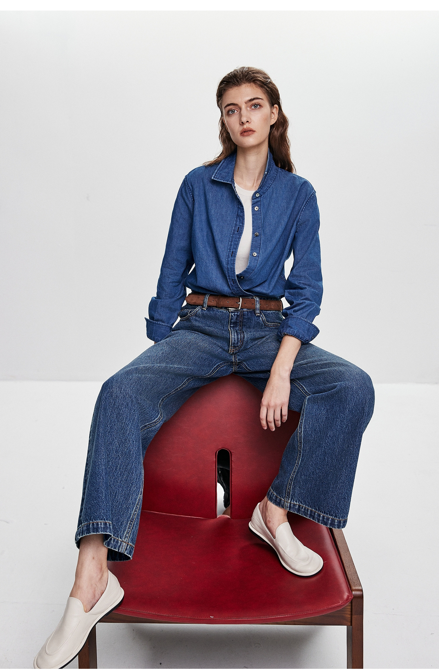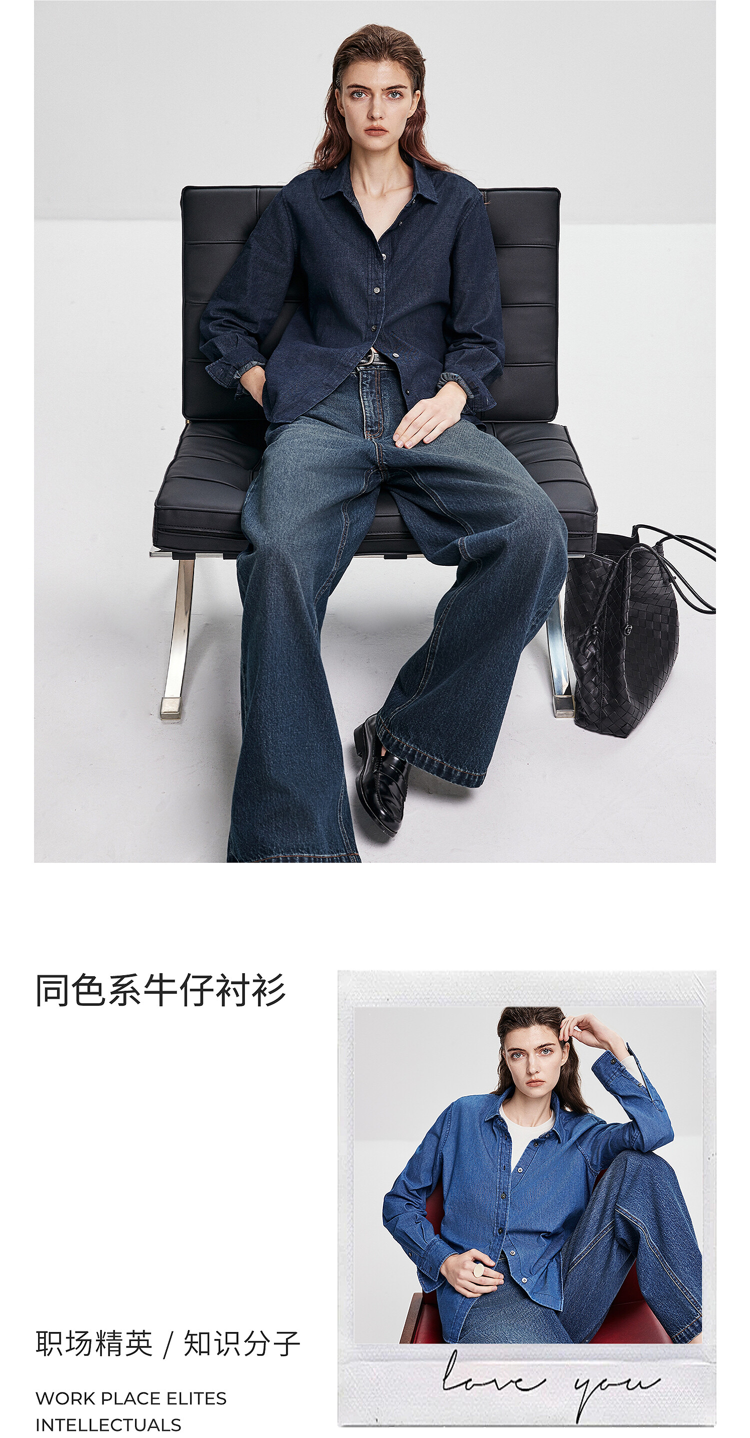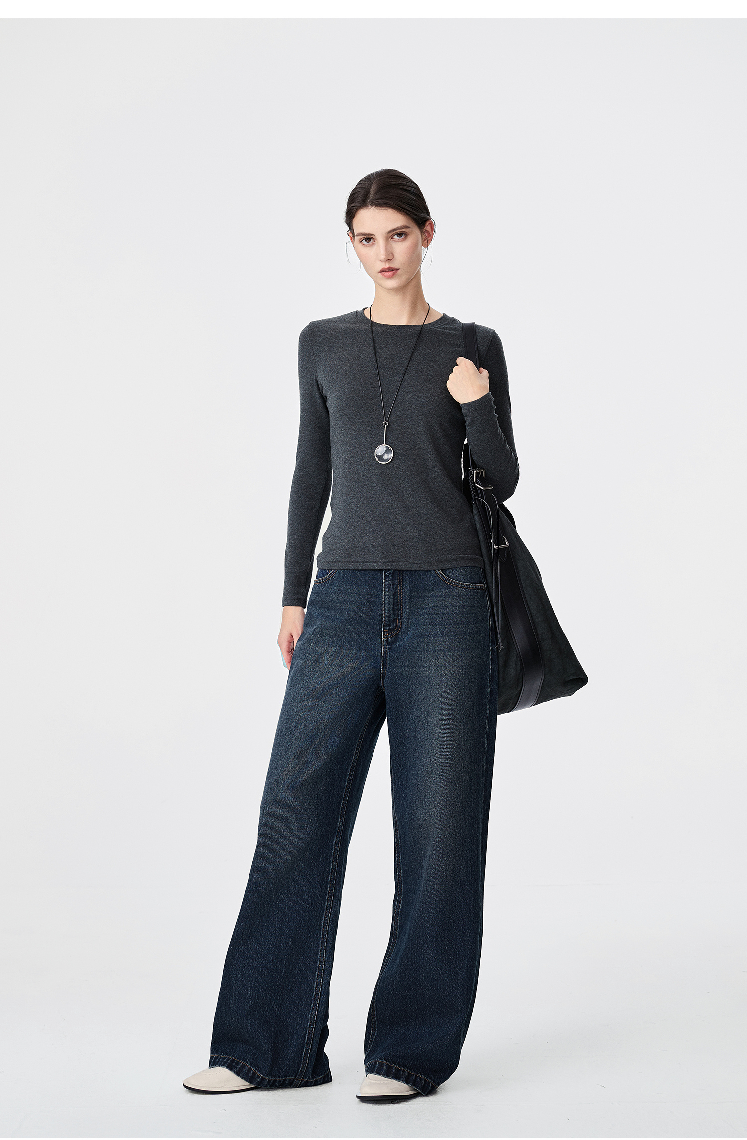 棉仓366619011-复古休闲感水洗牛仔丹宁阔腿裤