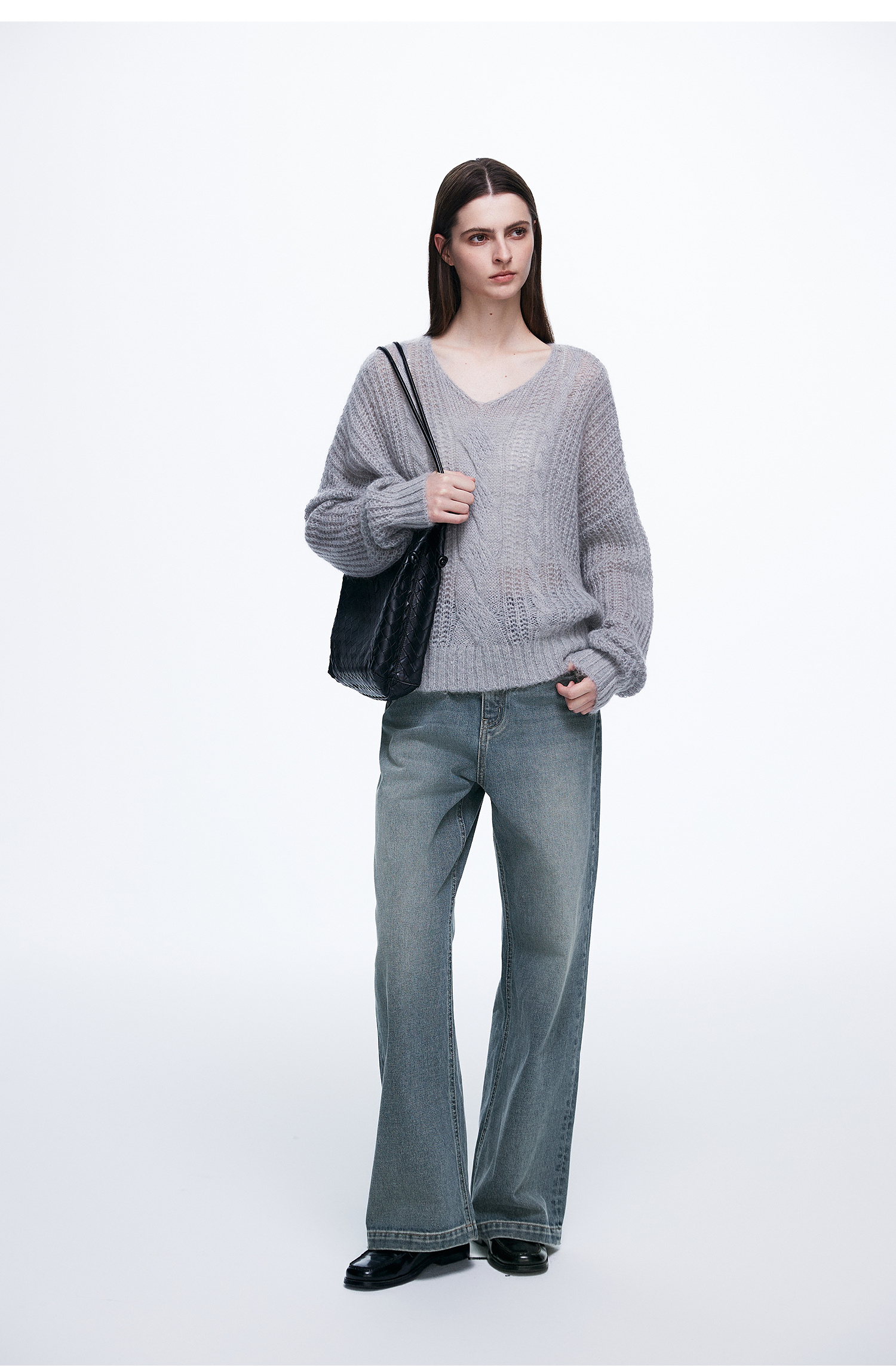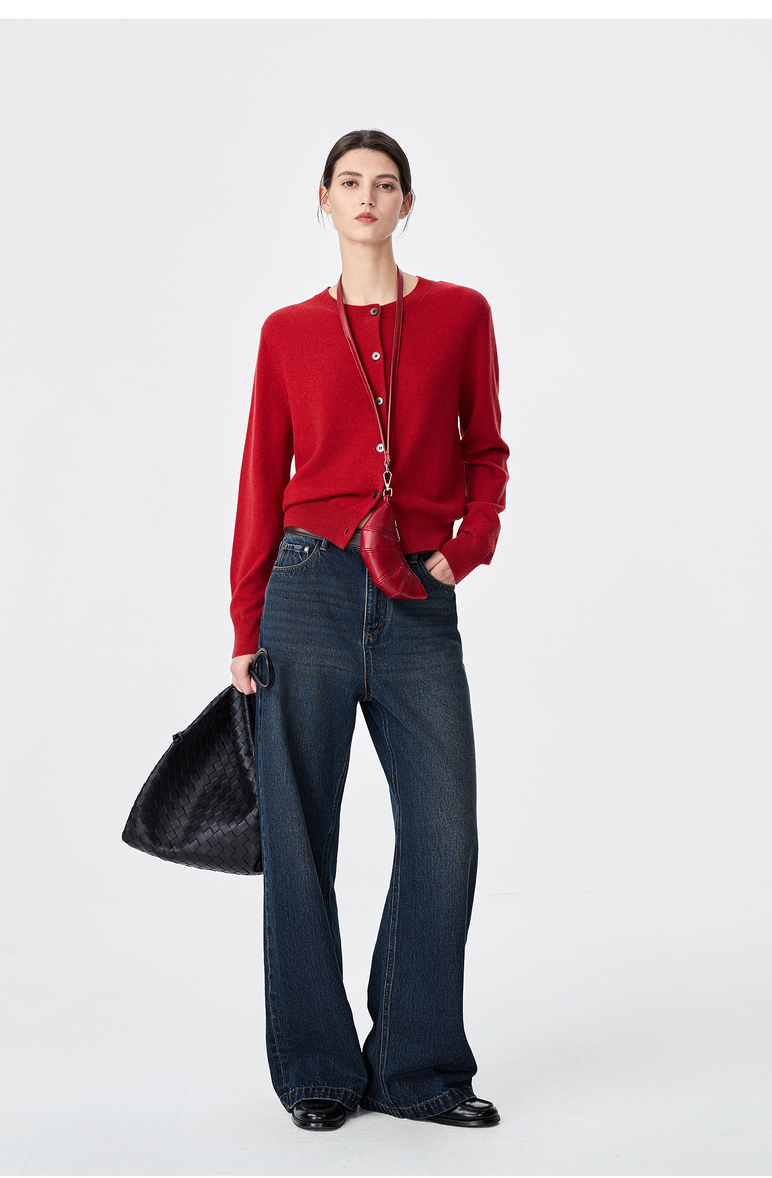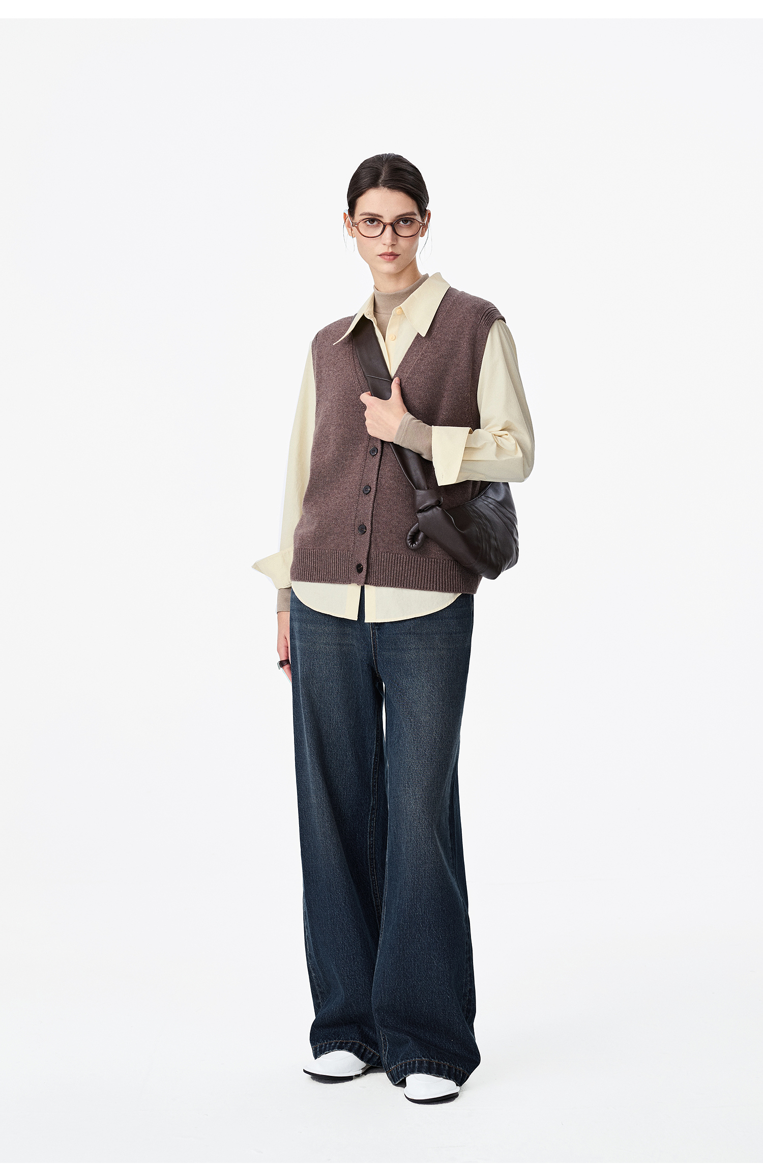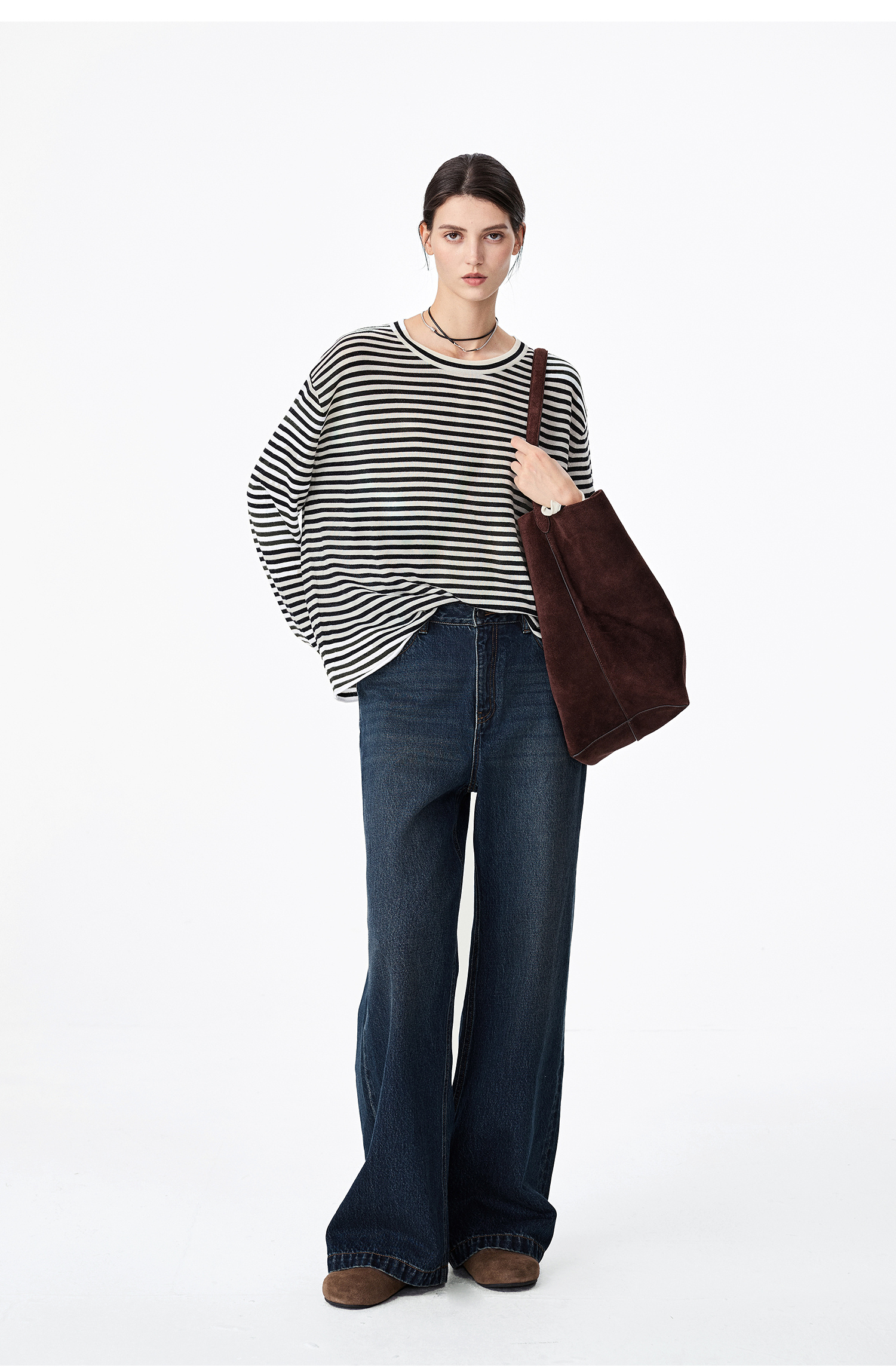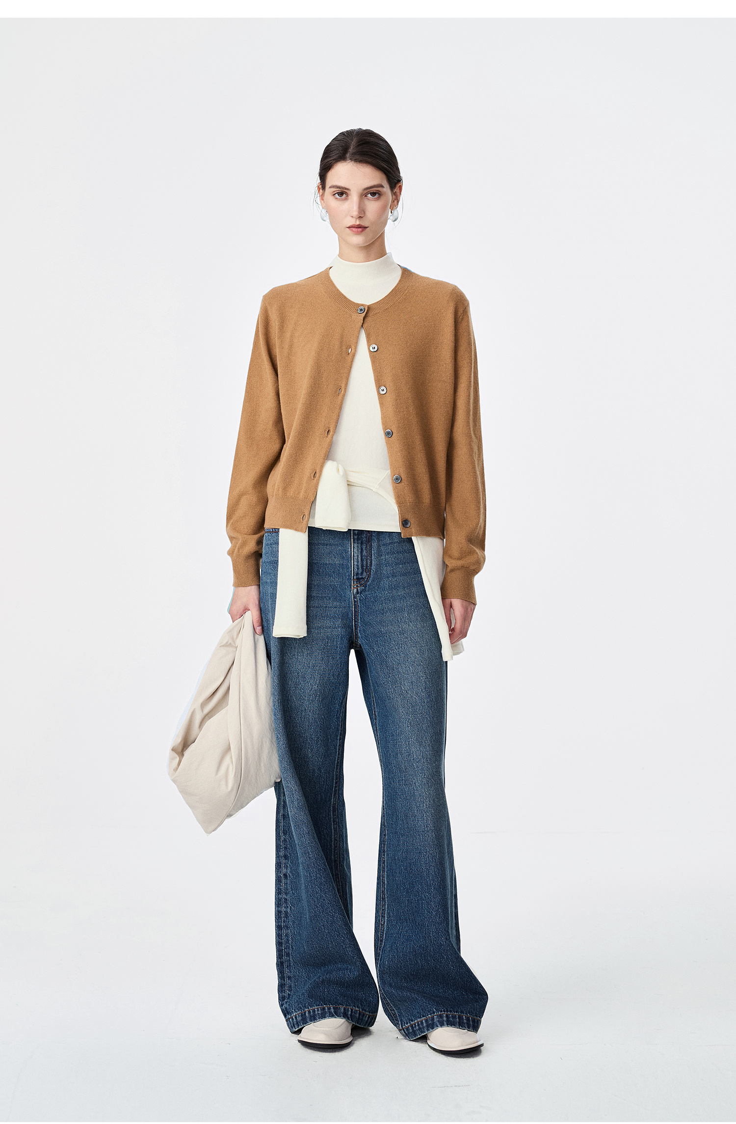 棉仓366619011-复古休闲感水洗牛仔丹宁阔腿裤