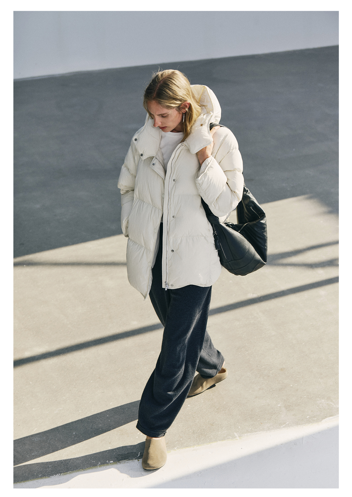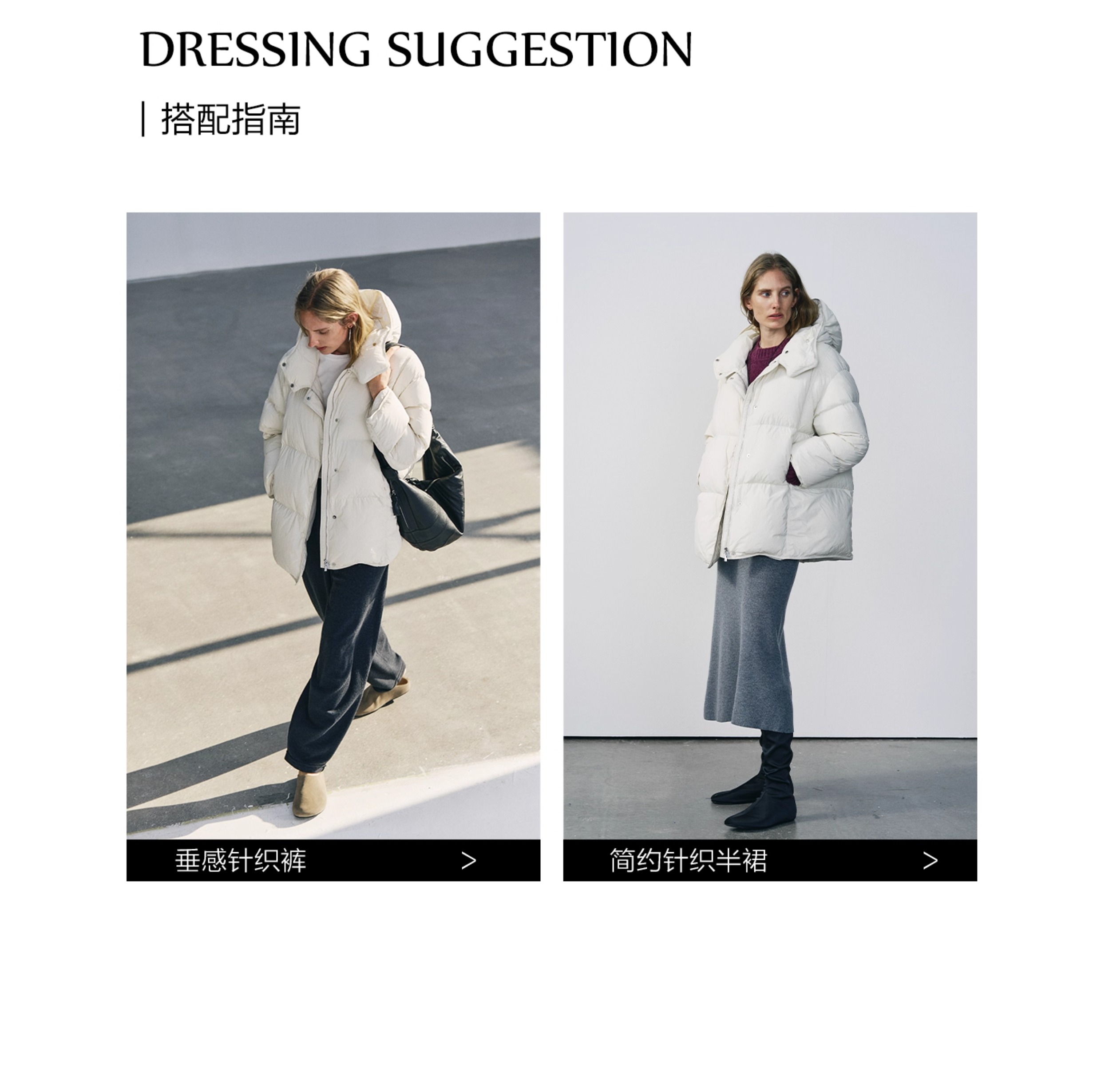 棉仓3671515006-95白鹅绒羽绒服女 25秋冬中长款连帽面包羽绒大帽型保暖