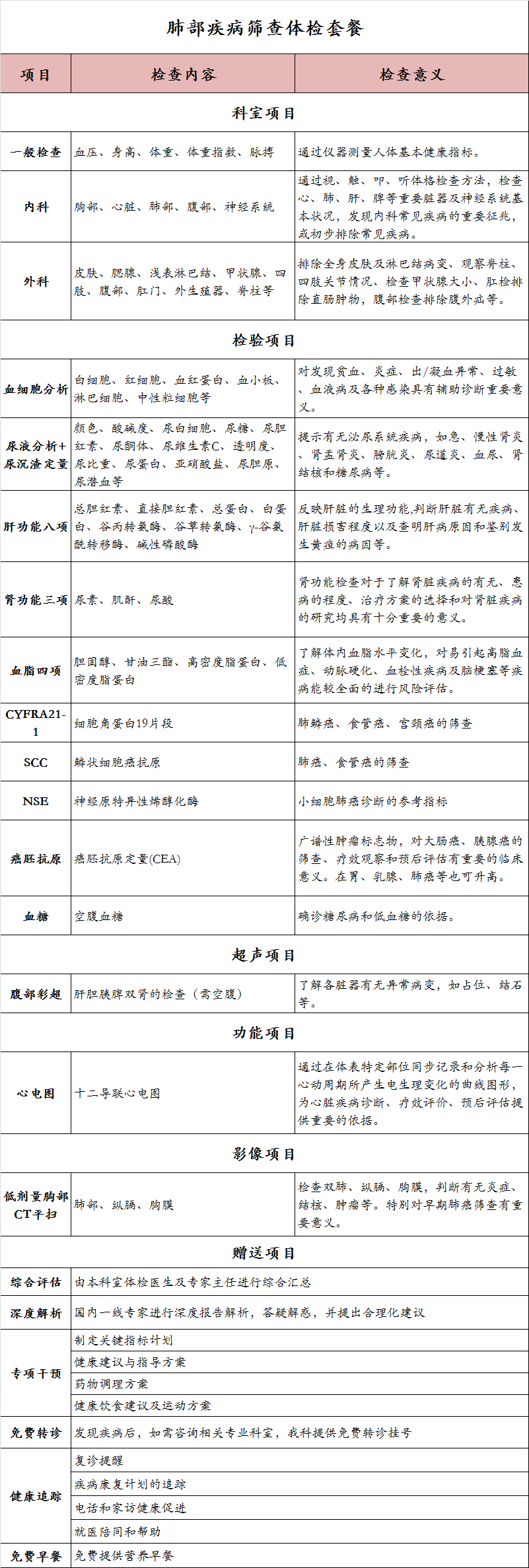 肺部疾病筛查体检套餐