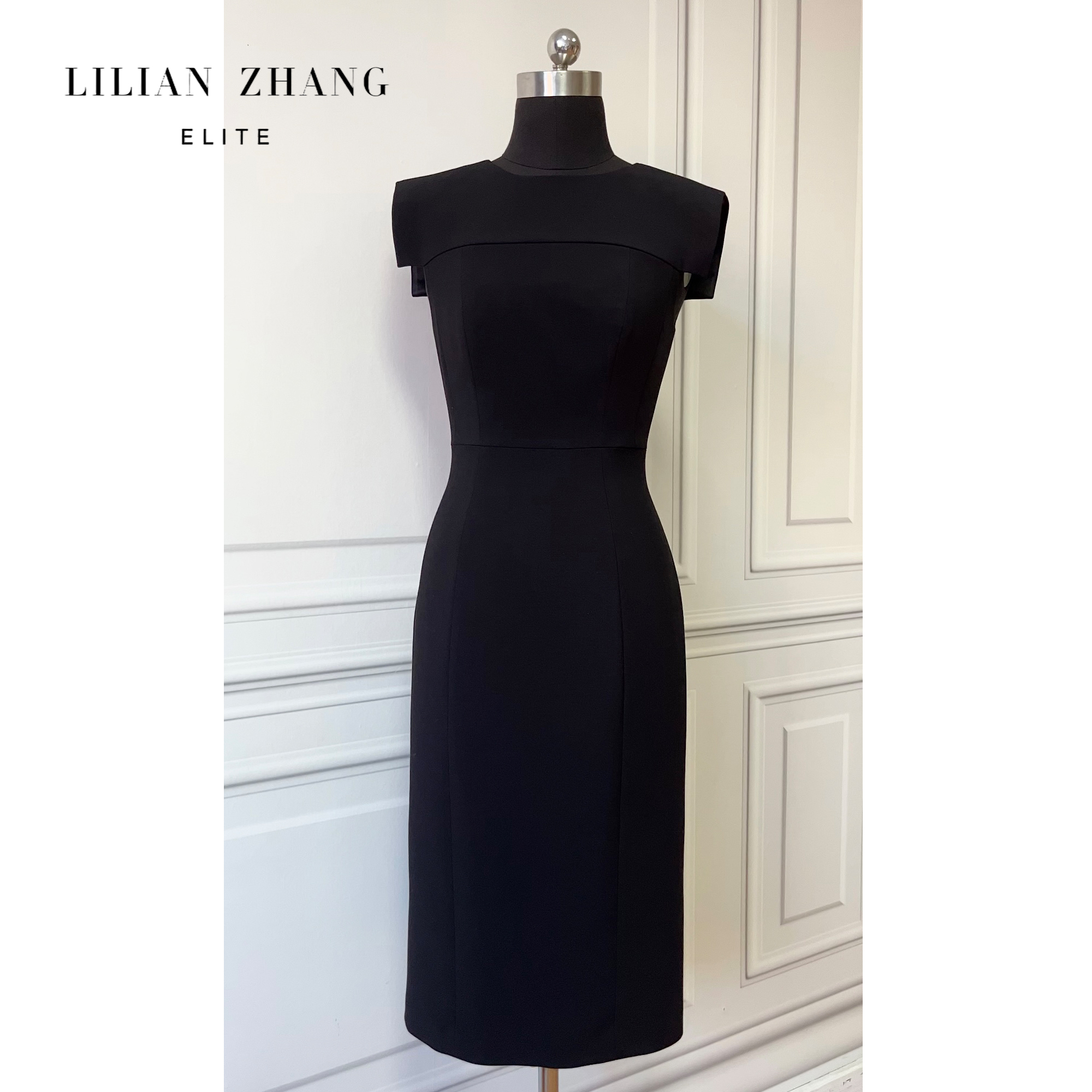 LILIAN ZHANG——都市力量—纯粹经典—挚爱高级感修身小黑裙 2301081