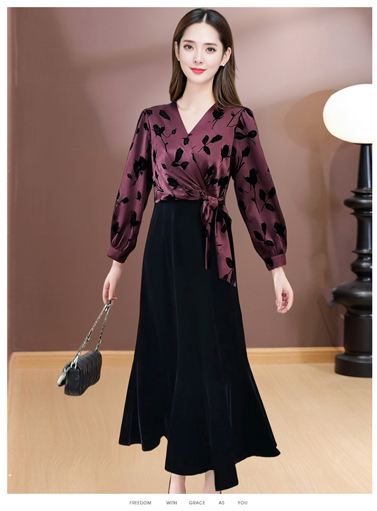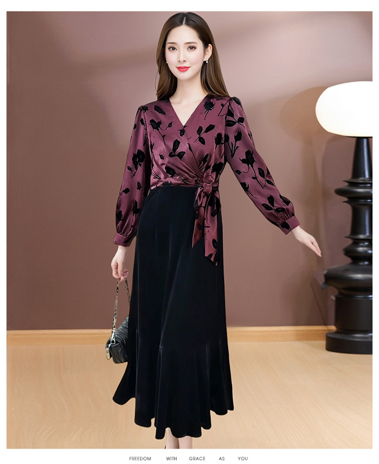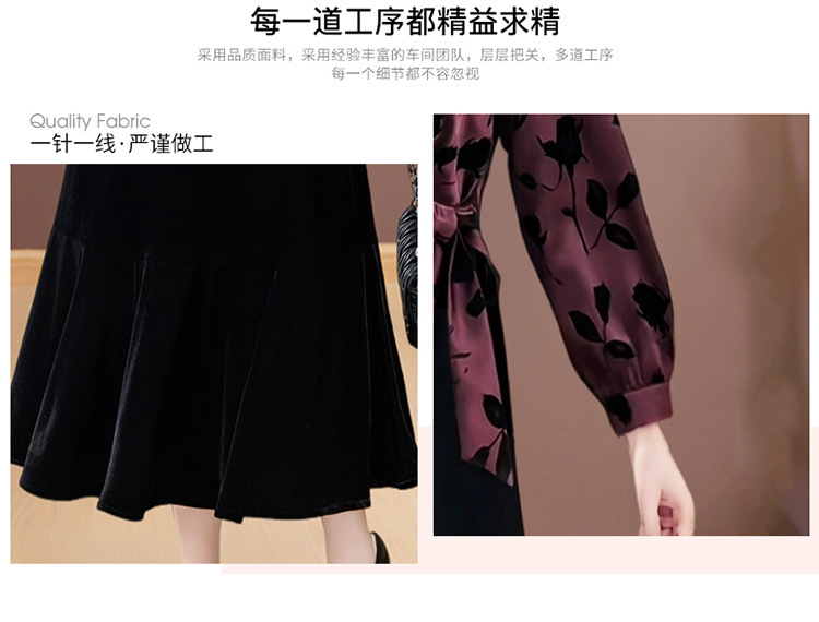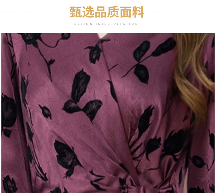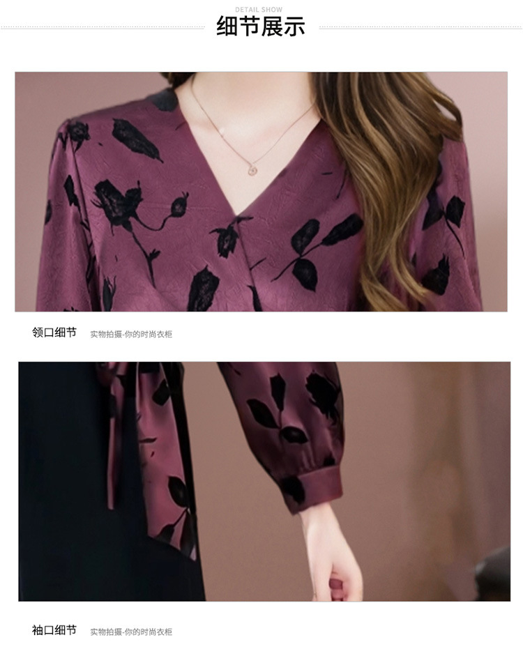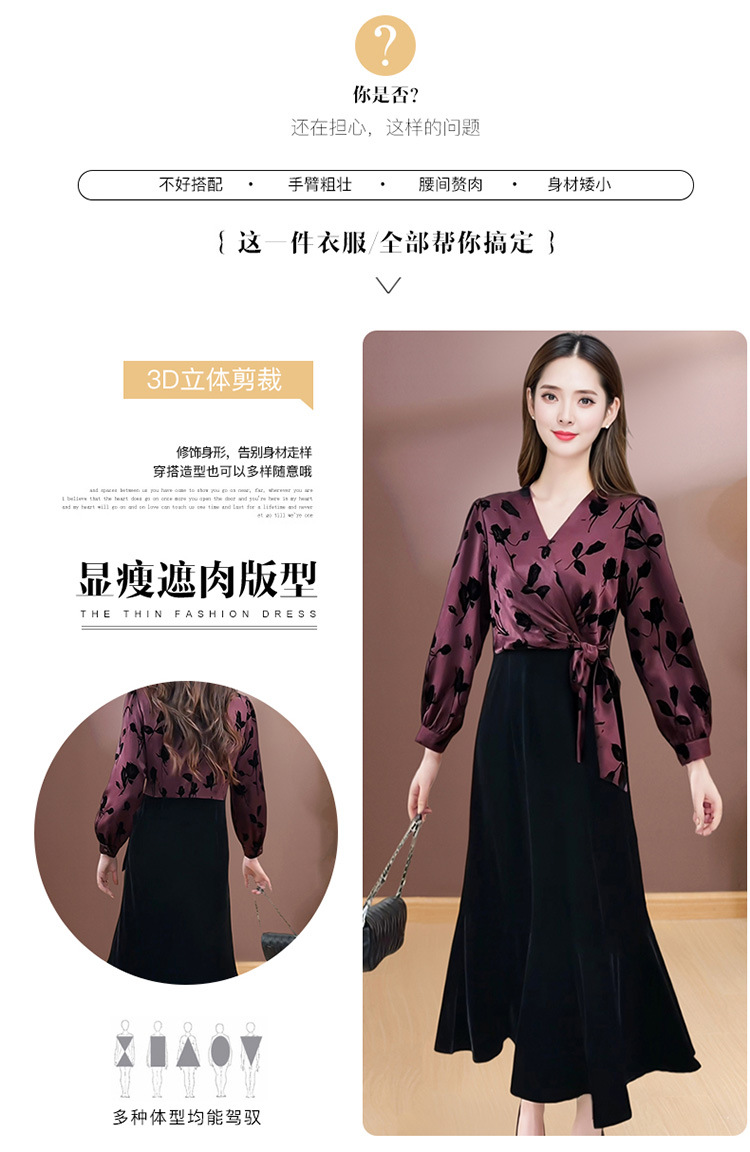 QYM SMAT99通勤风假两件V领印花连衣裙收腰显瘦气质淑女A字裙 商品图4