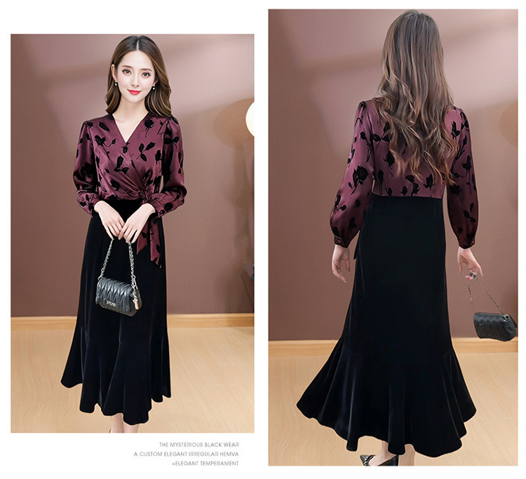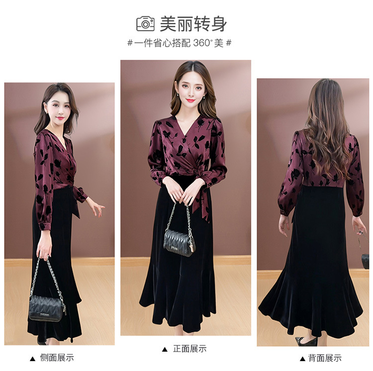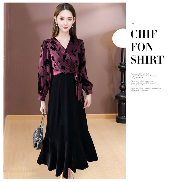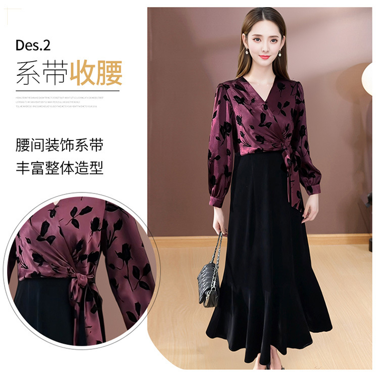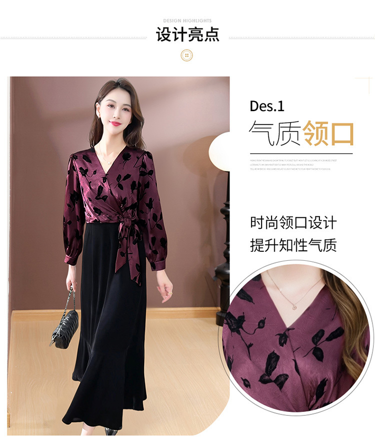 QYM SMAT99通勤风假两件V领印花连衣裙收腰显瘦气质淑女A字裙 商品图2