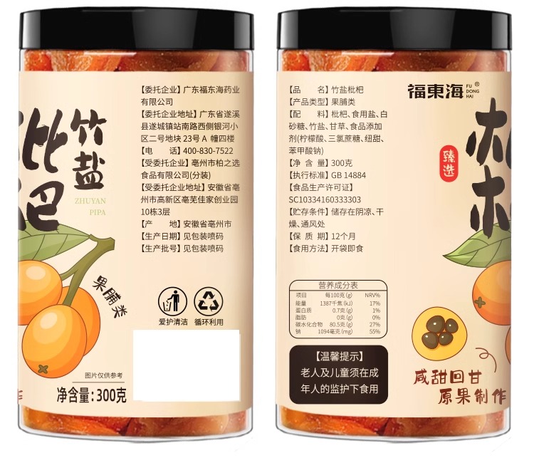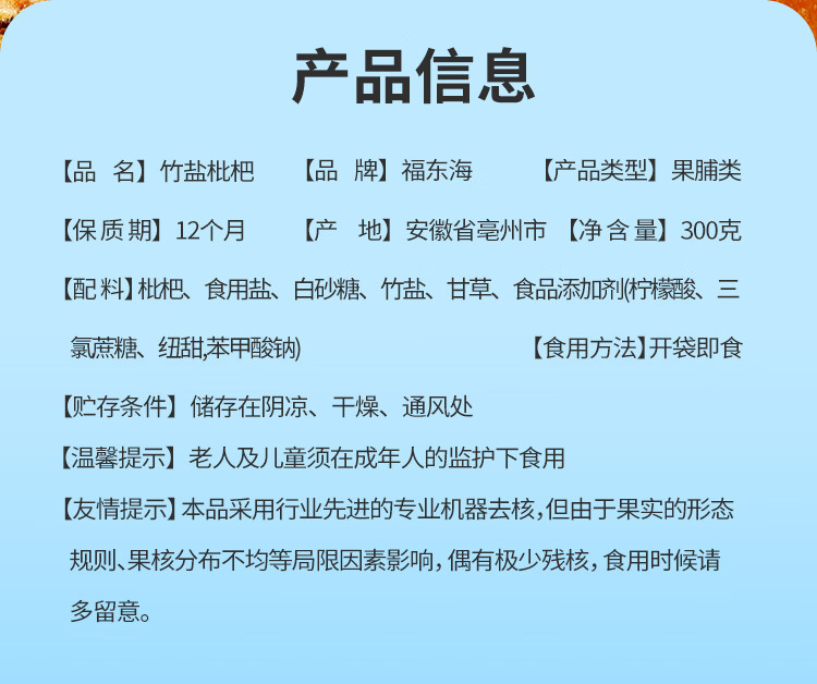 福东海 竹盐枇杷干300克 即食蜜饯干果脯休闲解馋零食