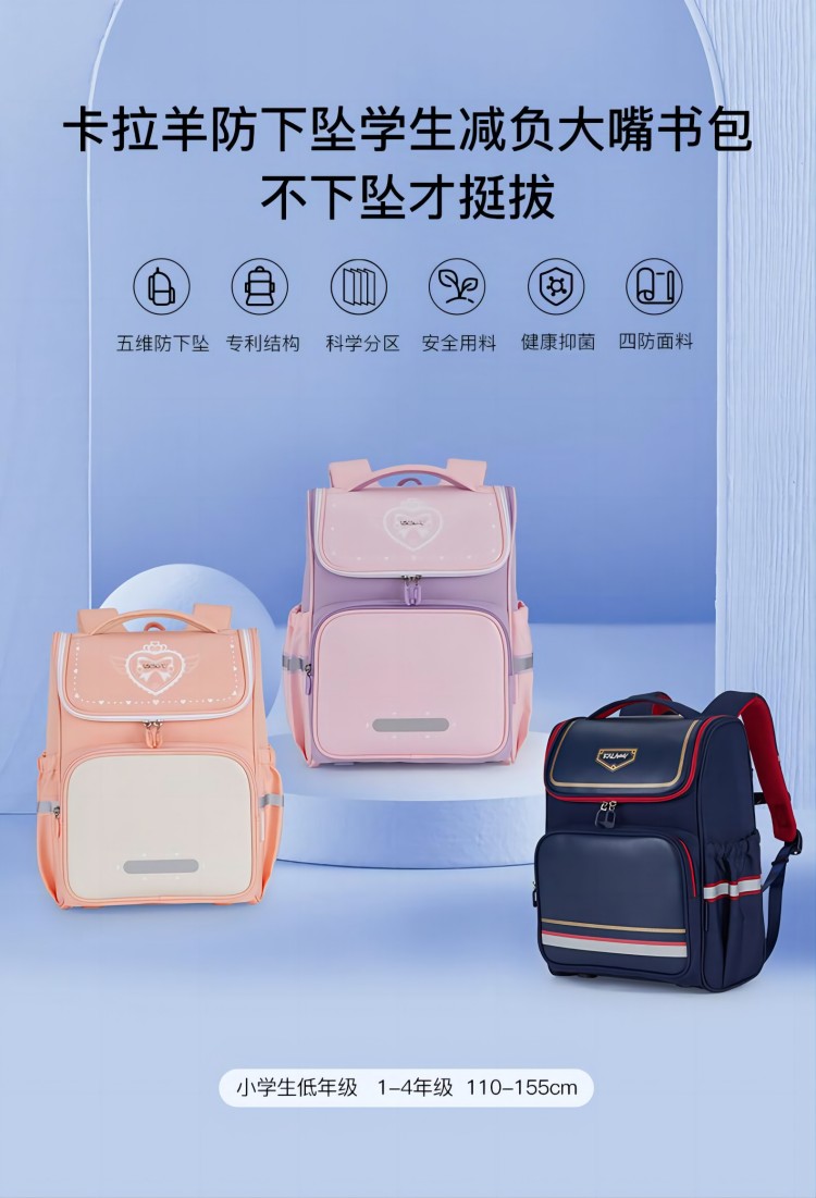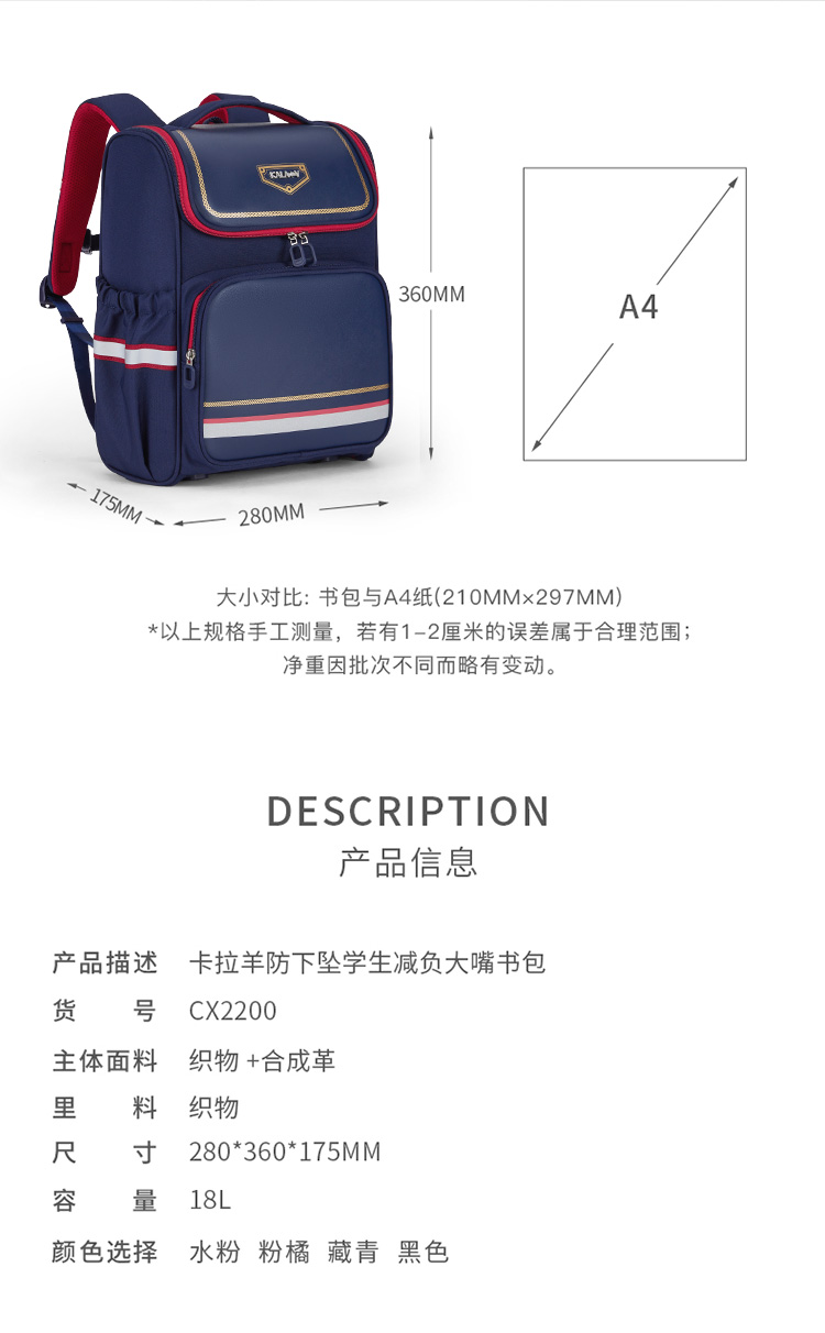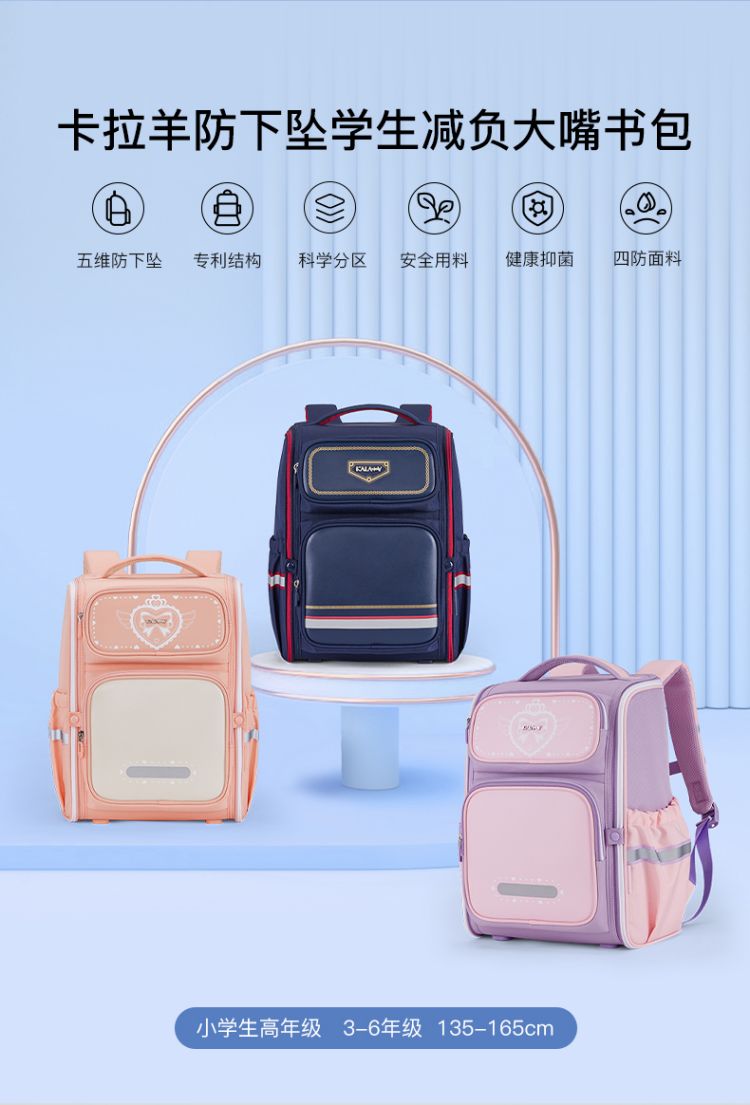 卡拉羊小学生1-3-6年级18L/22L减负护脊大嘴书包 追梦系列 CX2200+CX2675(3)