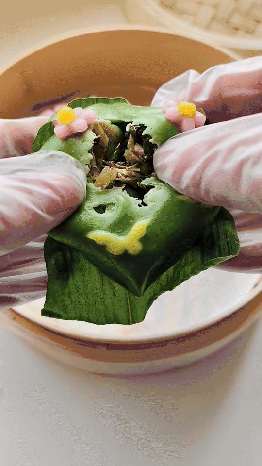 用鲜艾草,鲜笋,鲜茶(非遗西湖龙井),非遗匠人制作雪菜入馅,鲜嫩美味,0添加,更天然。