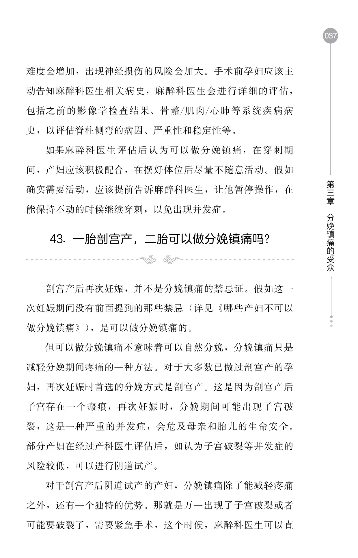 本书分为两个部分:上篇为《分娩镇痛大揭秘》,深入探讨了分娩镇痛的实施方法、适宜人群、操作流程和管理、效果与结局、可能出现的问题以及新生儿相关问题。下篇为《分娩经历直通车》收录了10位宝妈的分娩经历,从这些宝妈的故事中,可以感受到分娩的艰辛、喜悦以及镇痛带来的益处。