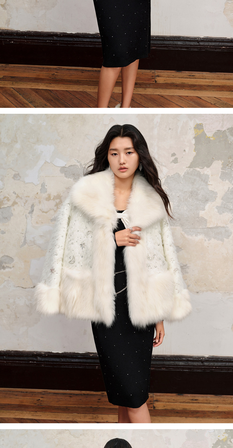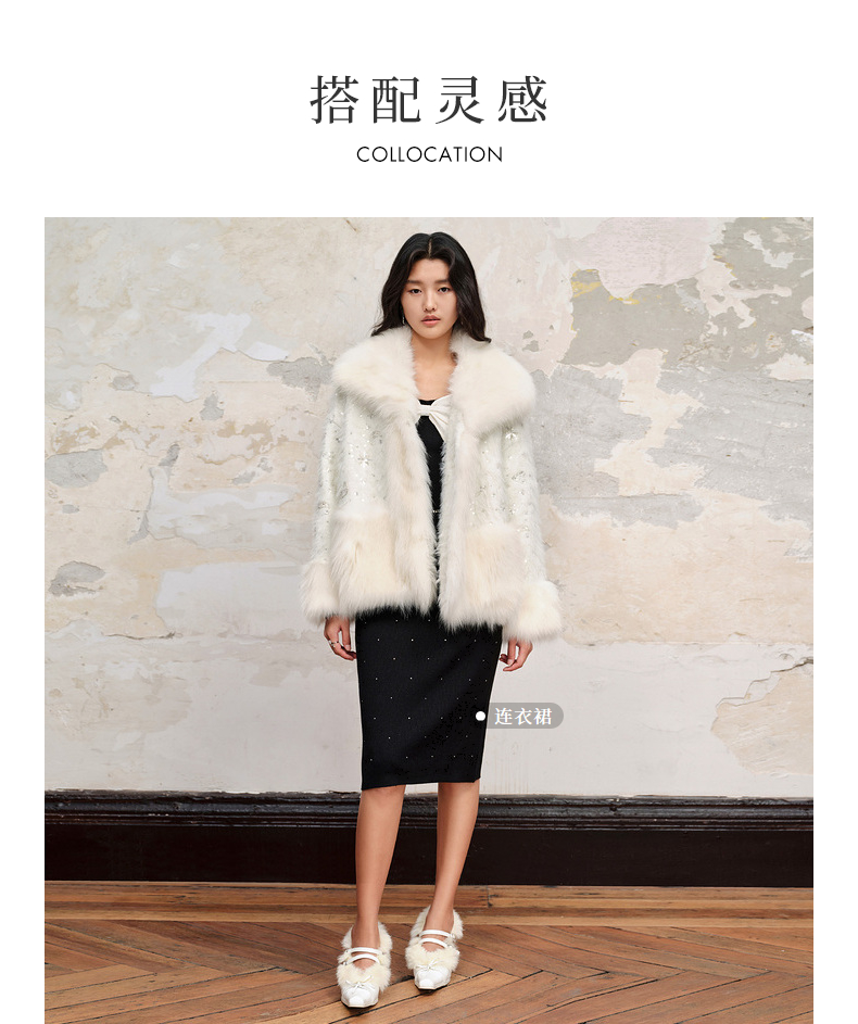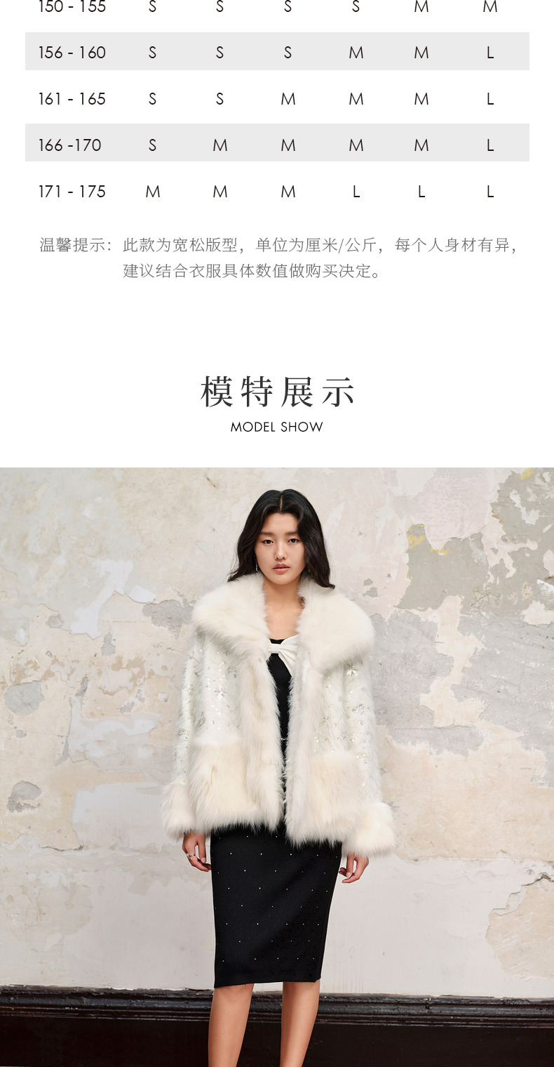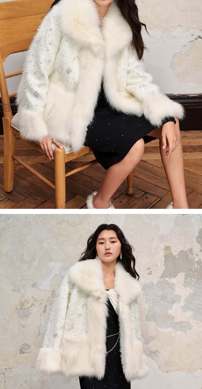 【商场同款】MAXRIENY*轻奢廓形外套2023冬季新款狐狸毛皮草女(货号:MC88FU503)