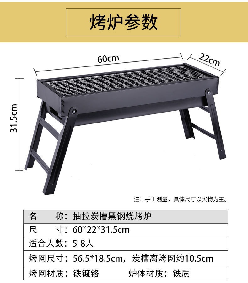 【抽屉式设计!方便易取】加厚烧烤炉子户外便携无烟折叠野外露营烧烤架子家用木炭烤肉炉子。rb