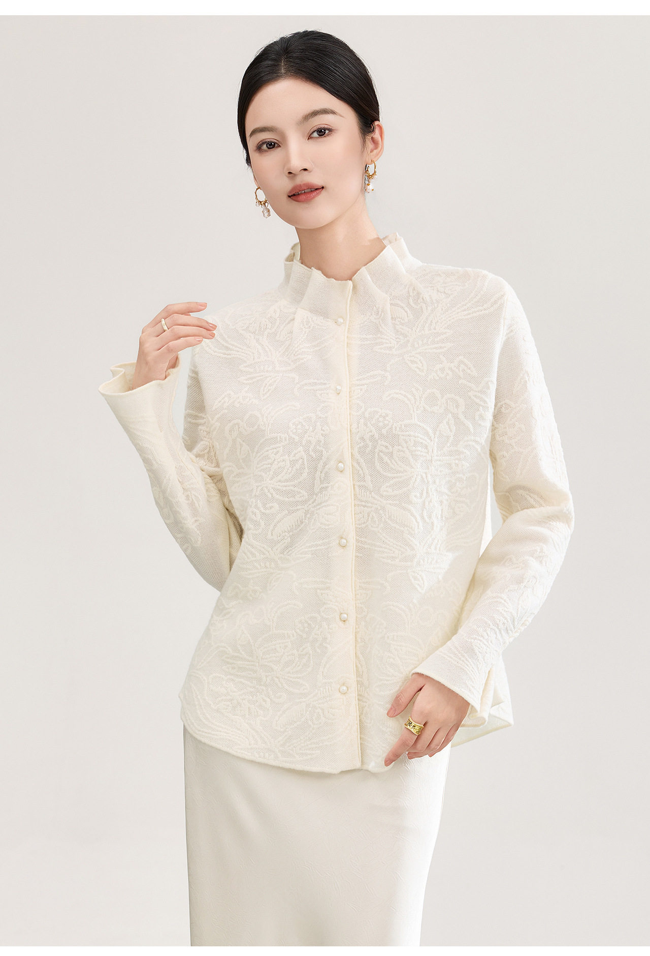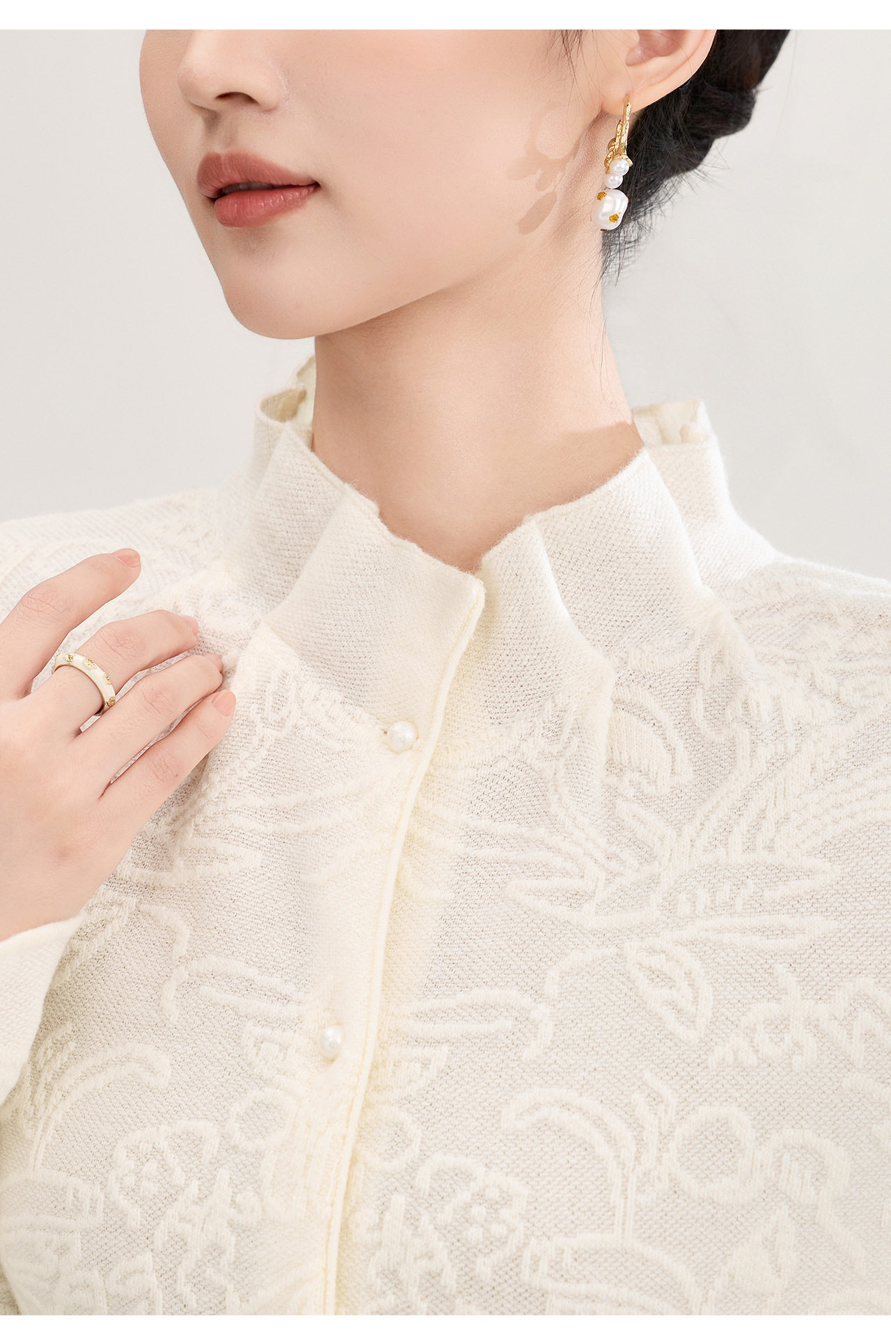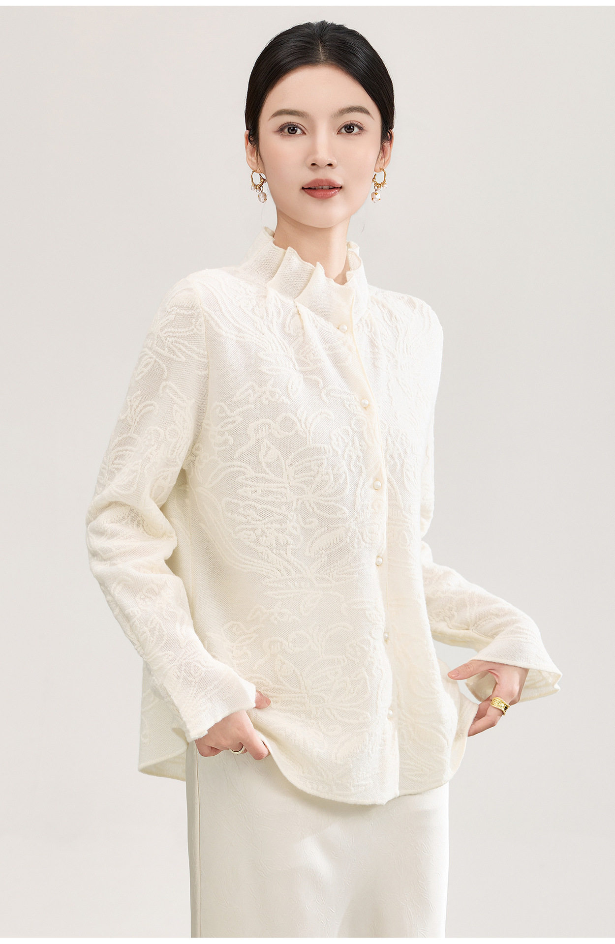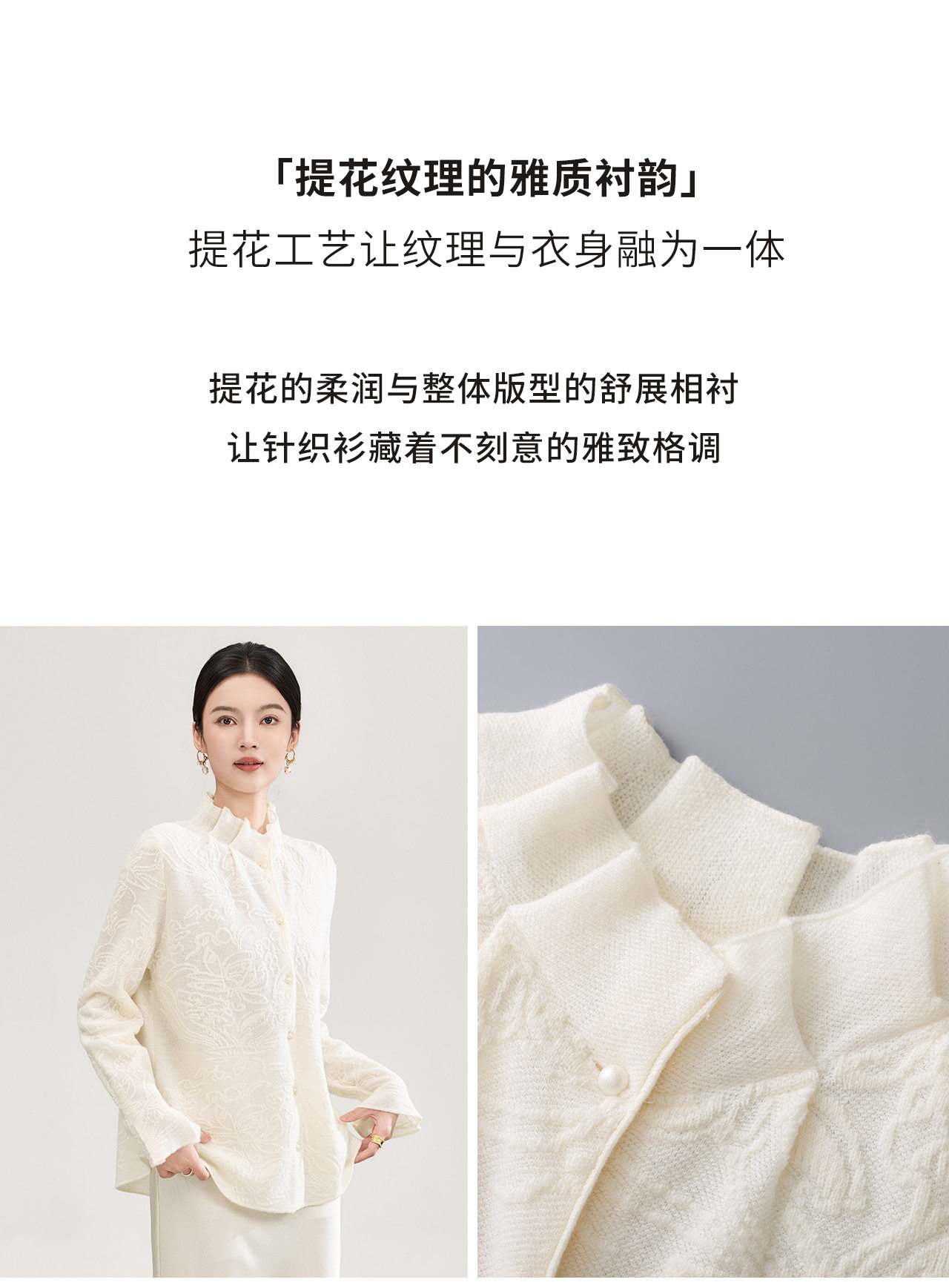 「高货wl」全新升级【铂金会员275/天猫369/差价94】(10415)洛诗琳立体交织羊毛提花衬衫2026春季法式木耳边针织上衣