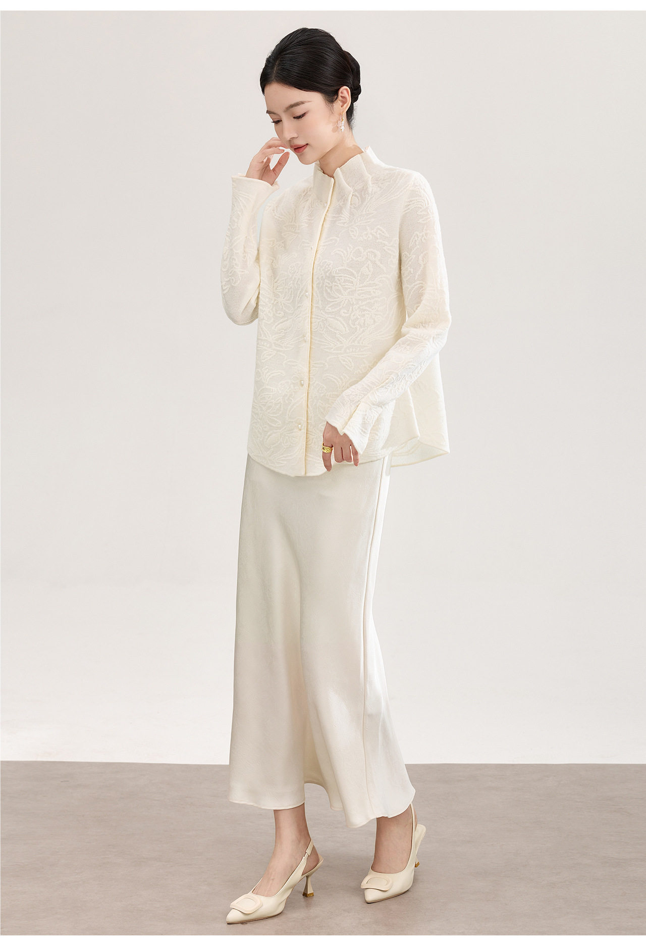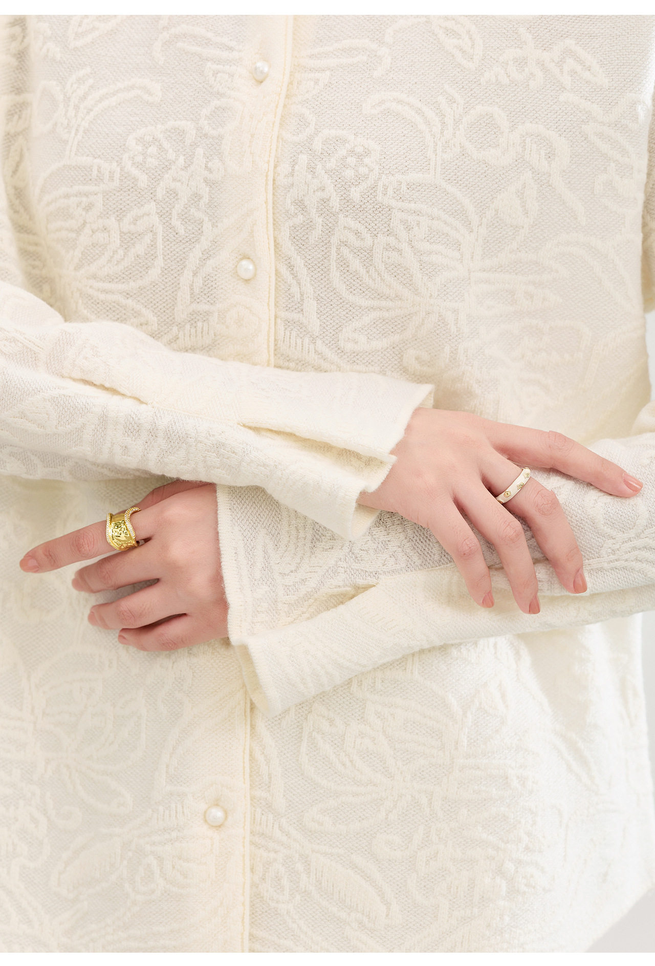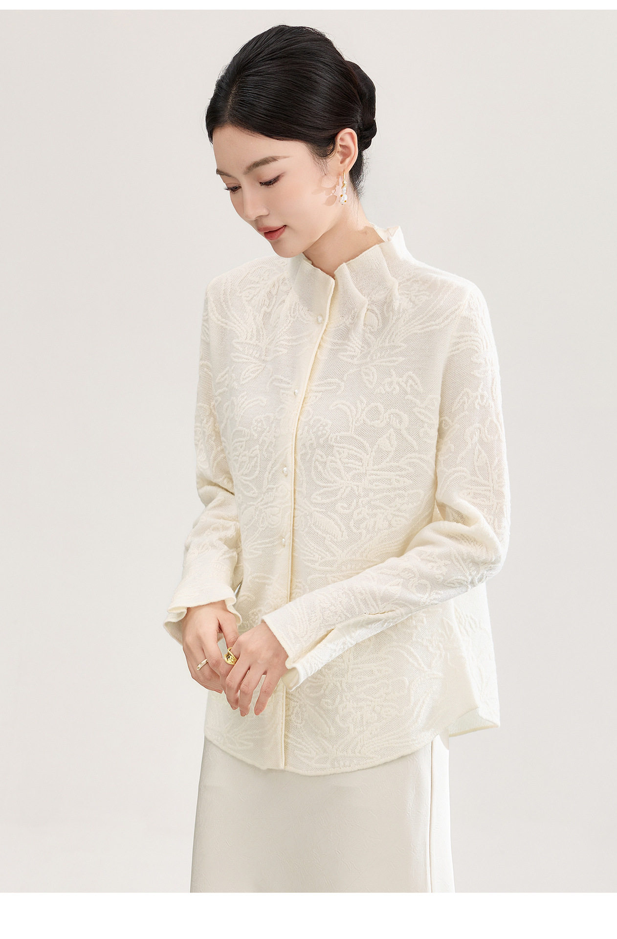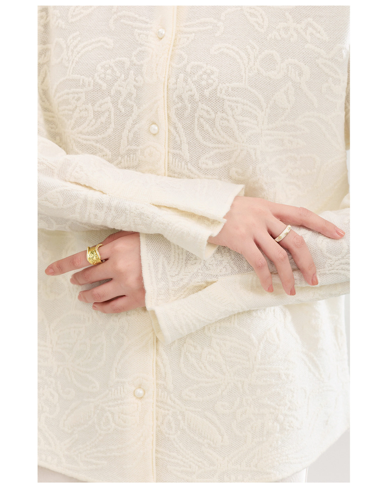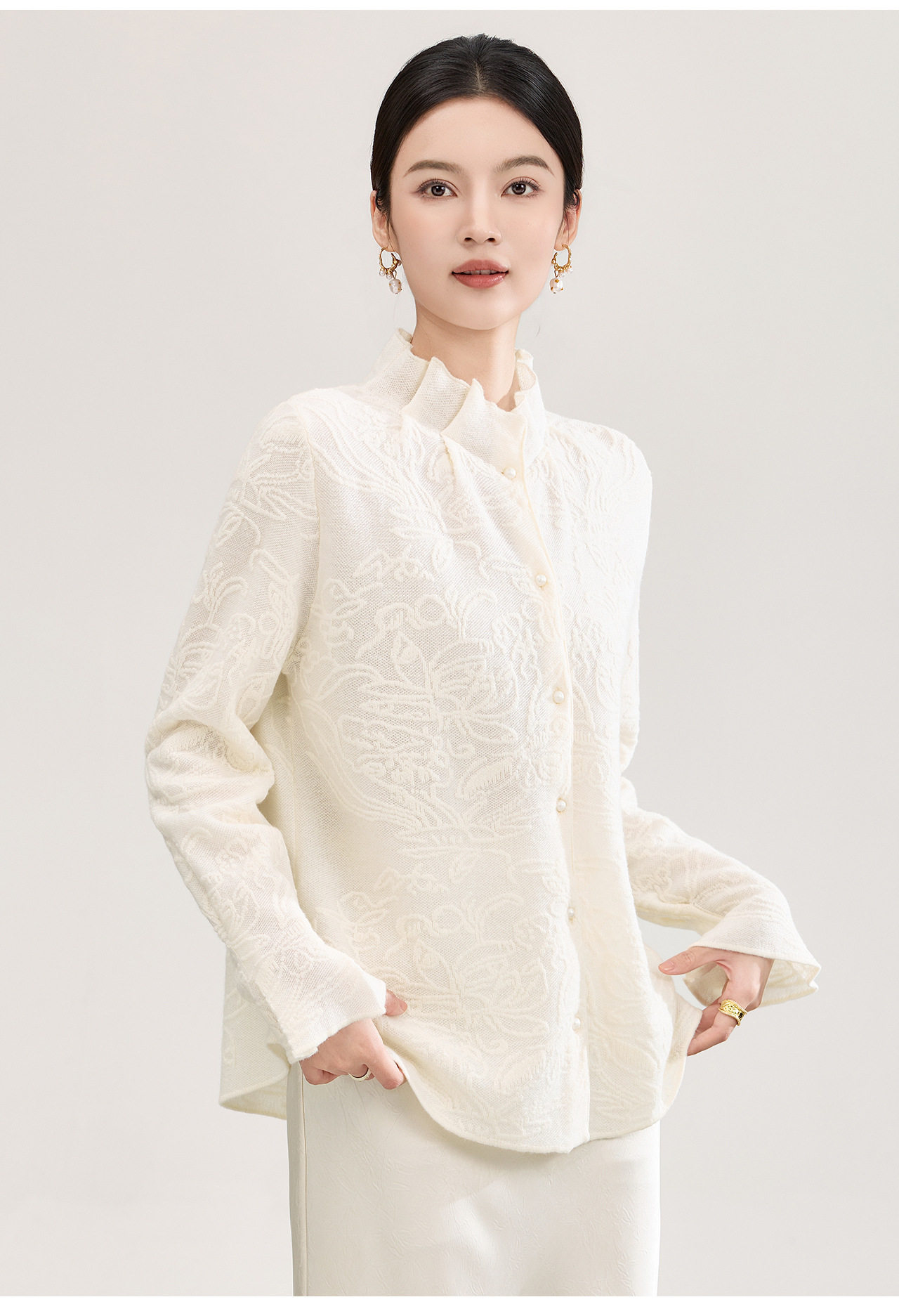 「高货wl」全新升级【铂金会员275/天猫369/差价94】(10415)洛诗琳立体交织羊毛提花衬衫2026春季法式木耳边针织上衣