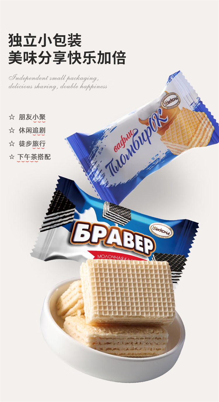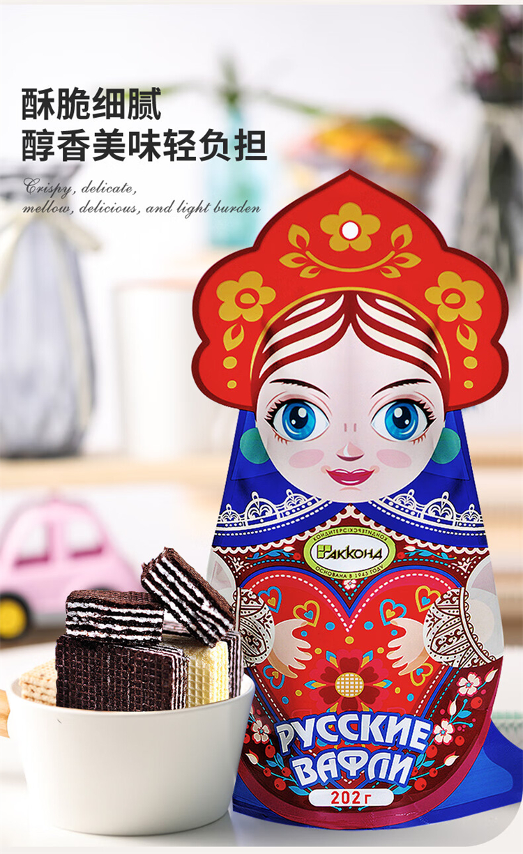 俄罗斯进口阿孔特牌甄选多味威化饼干202g冰淇淋菲利莫巧克力威化休闲零食品双口味
