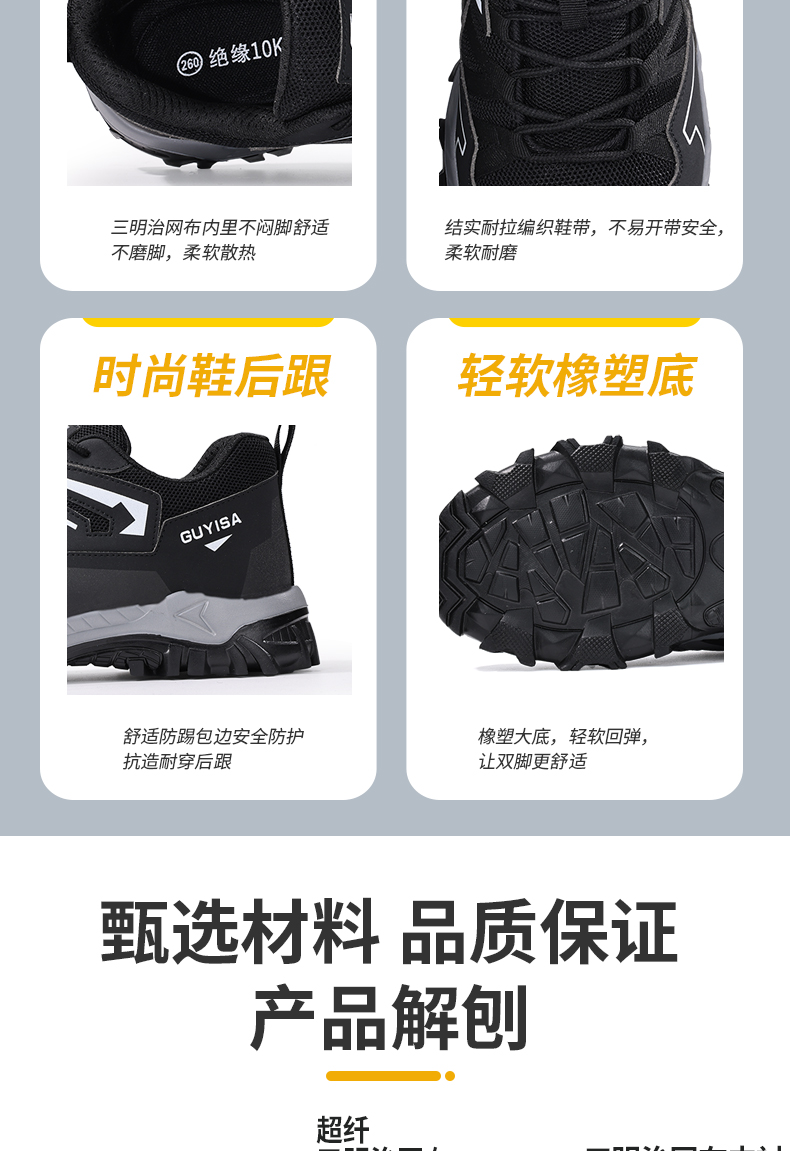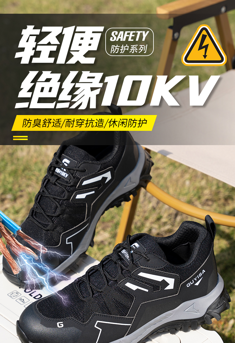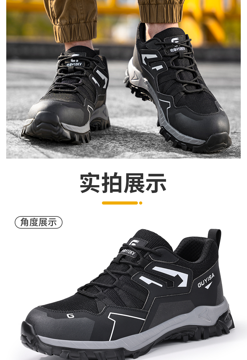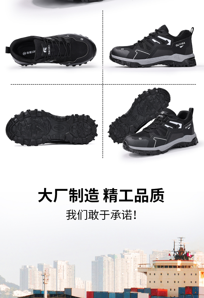 2024新款黑色绝缘鞋透气男士防砸防刺劳保鞋实心底耐磨