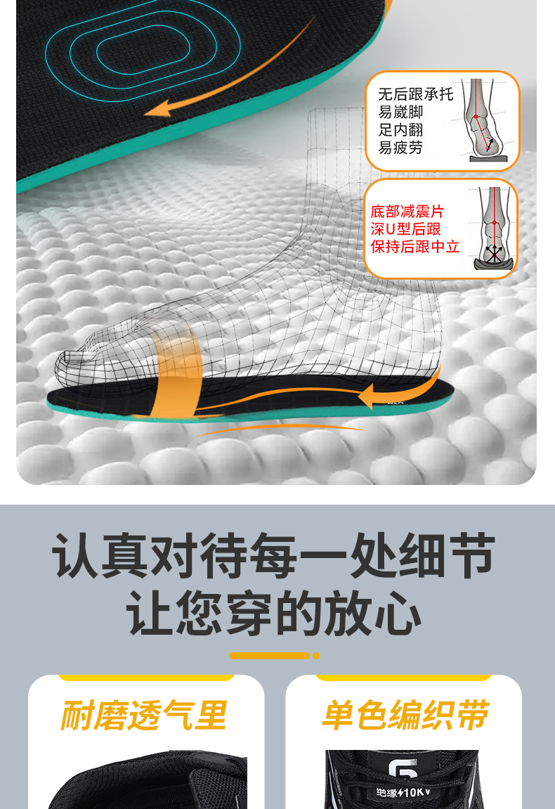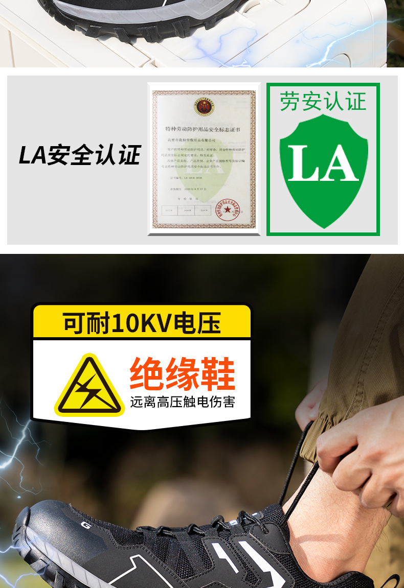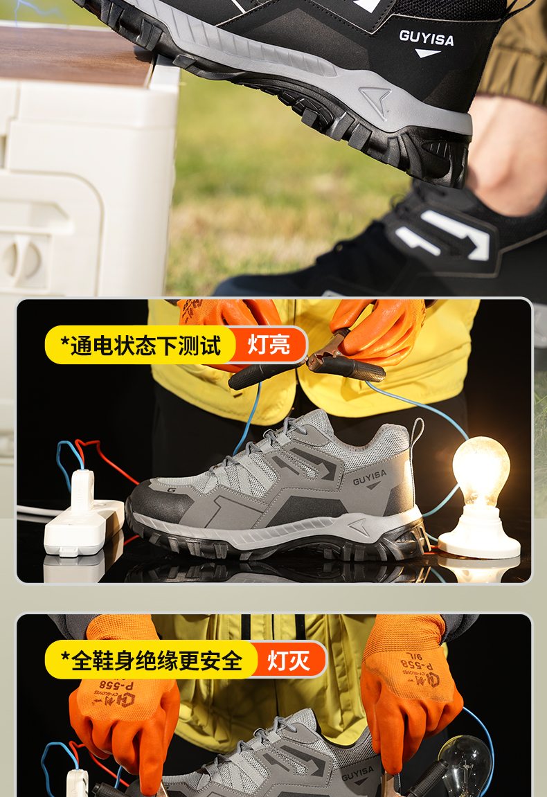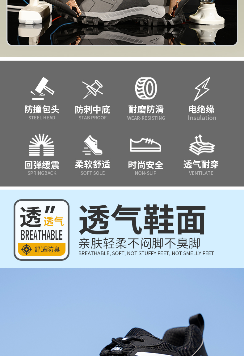 2024新款黑色绝缘鞋透气男士防砸防刺劳保鞋实心底耐磨