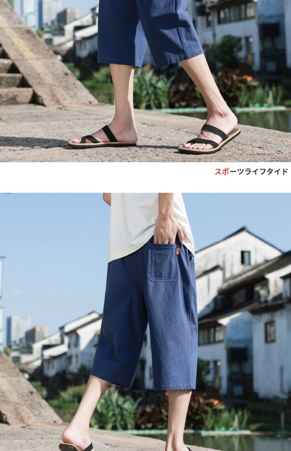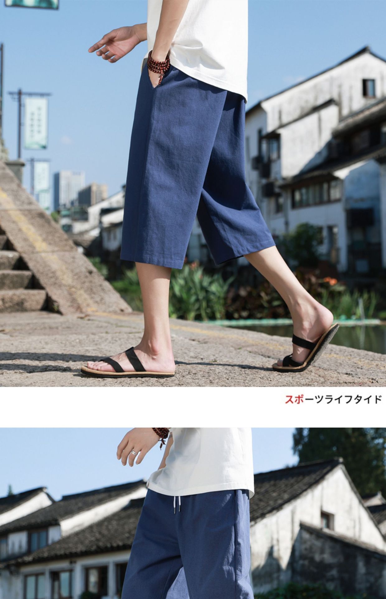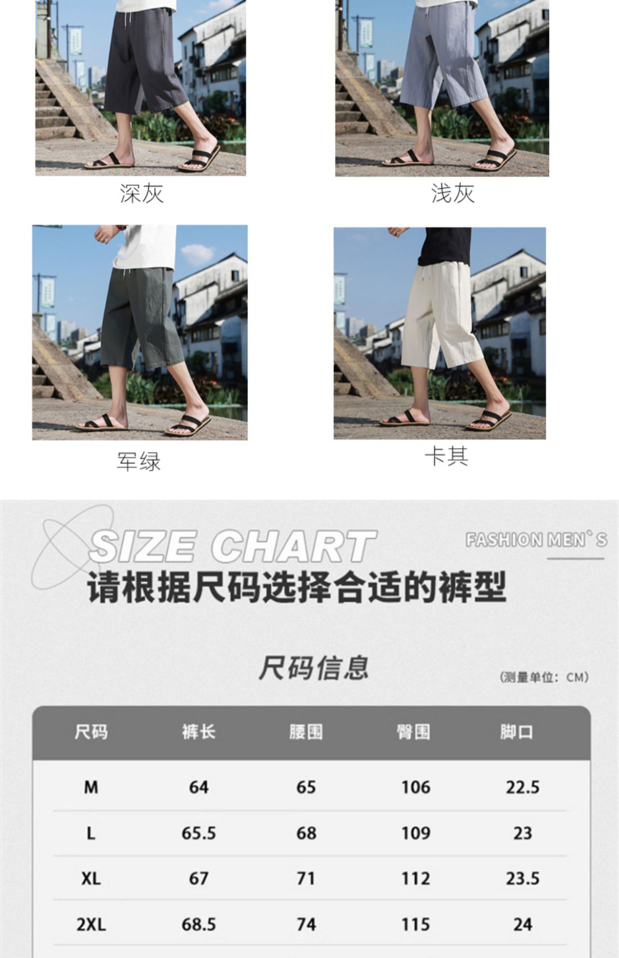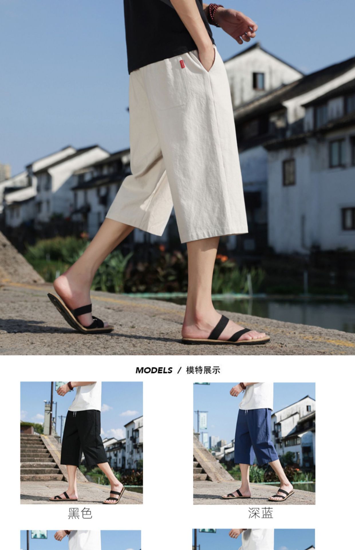 红览 新中式邹棉裤子夏季男士七分裤休闲裤K918