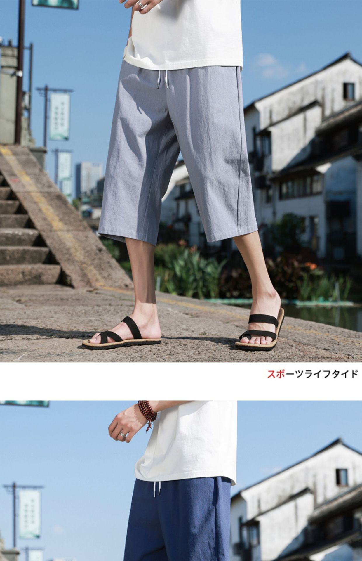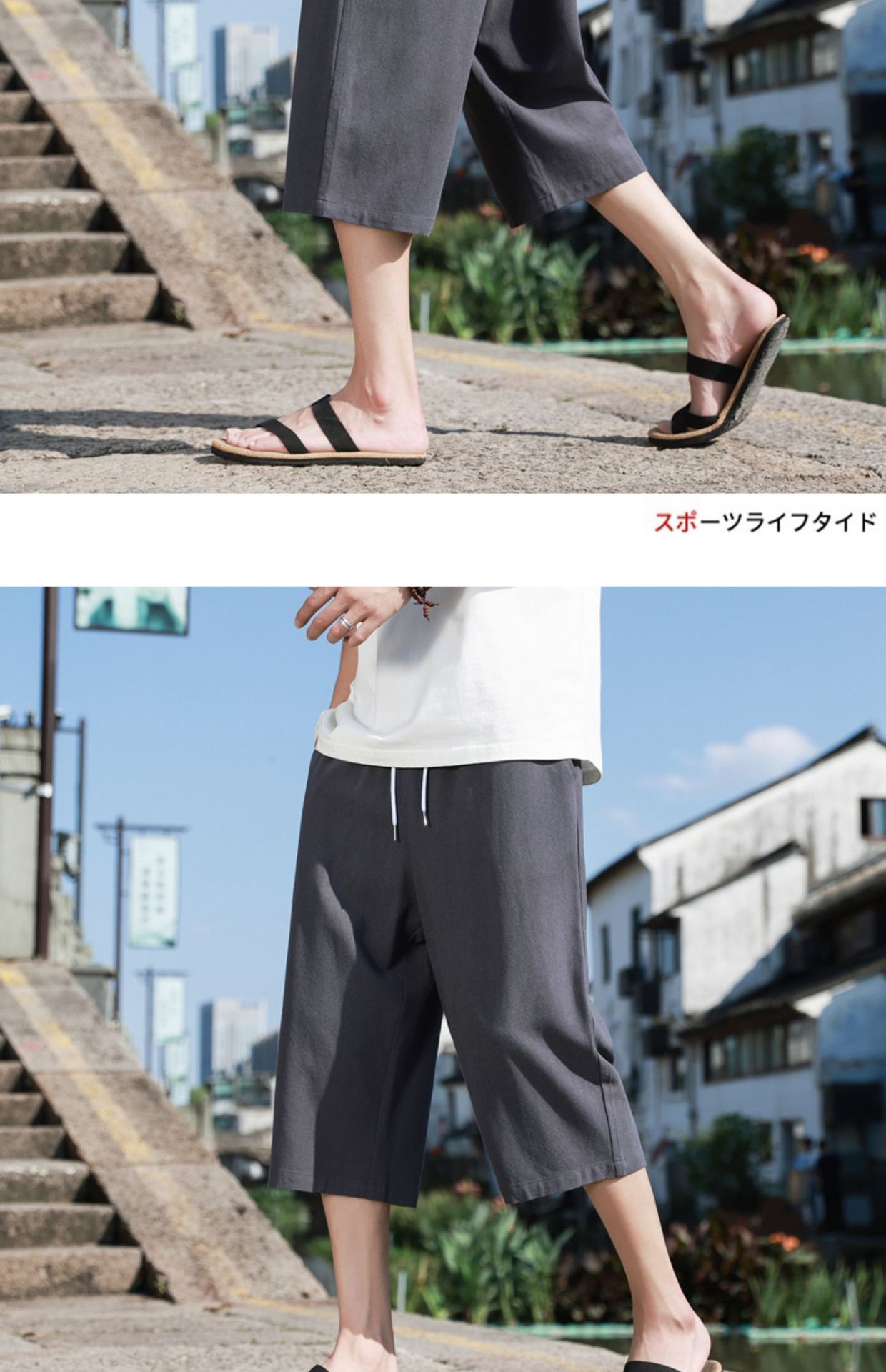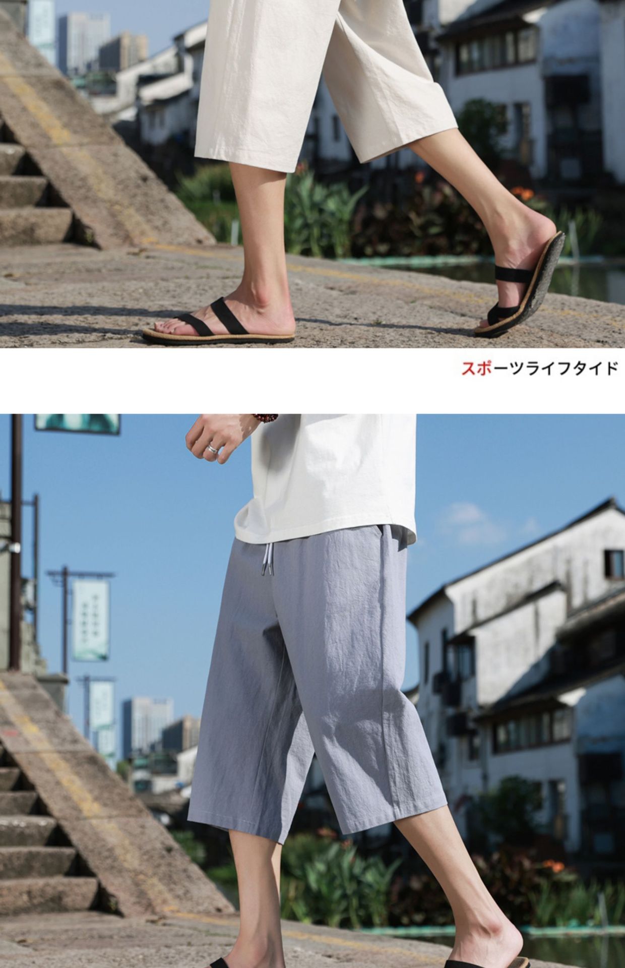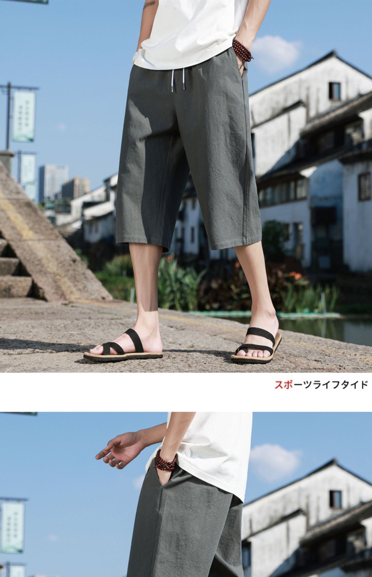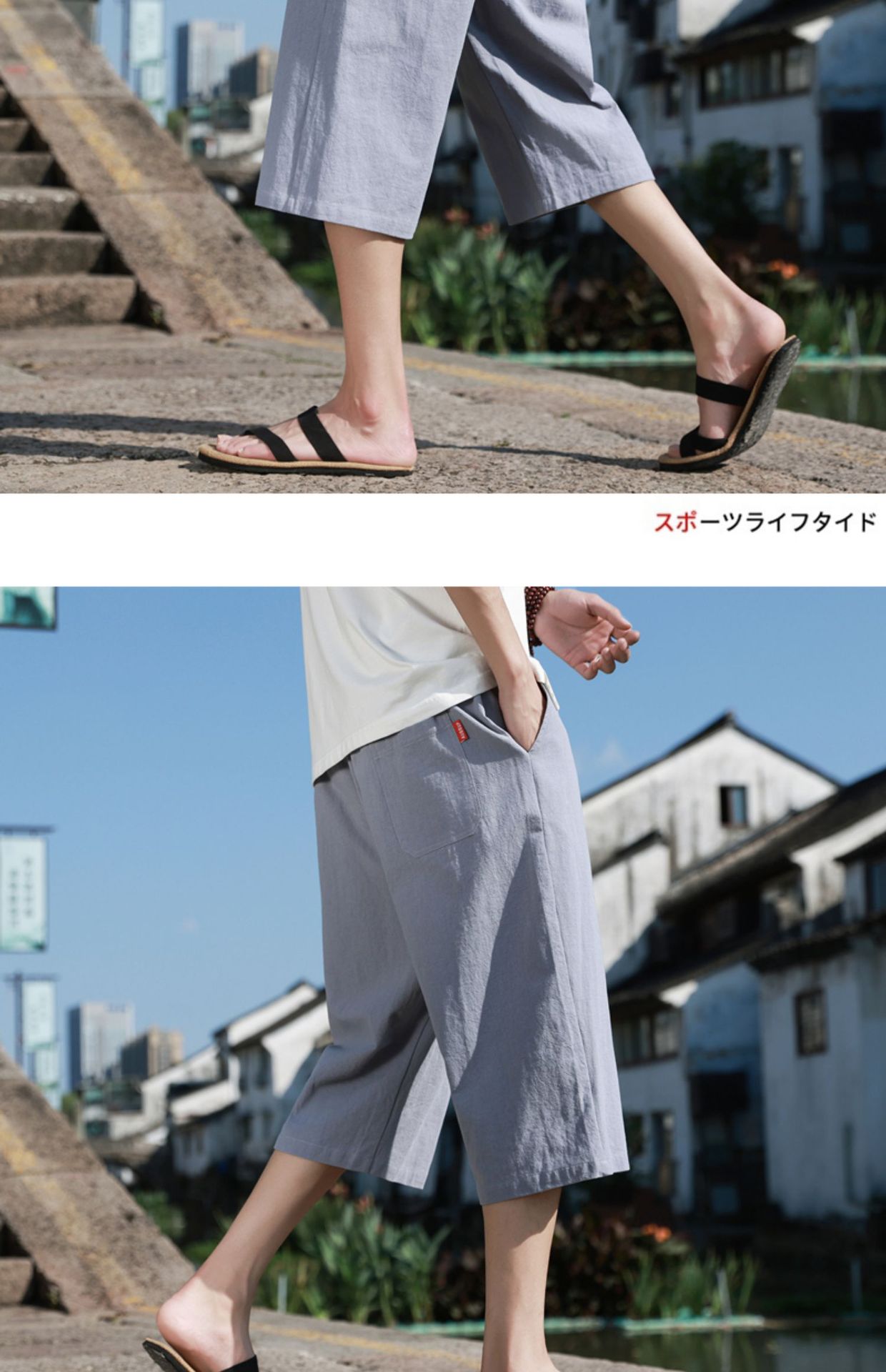 红览 新中式邹棉裤子夏季男士七分裤休闲裤K918