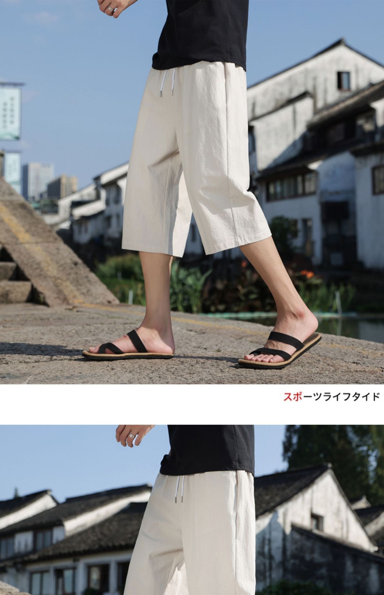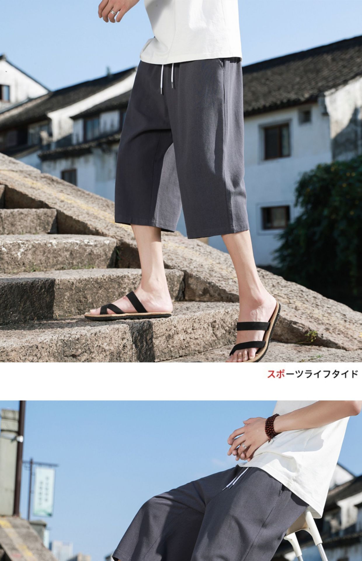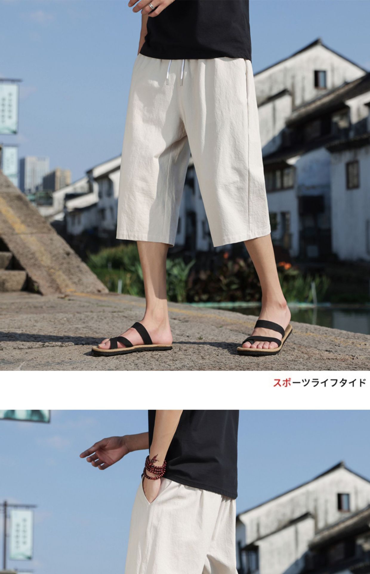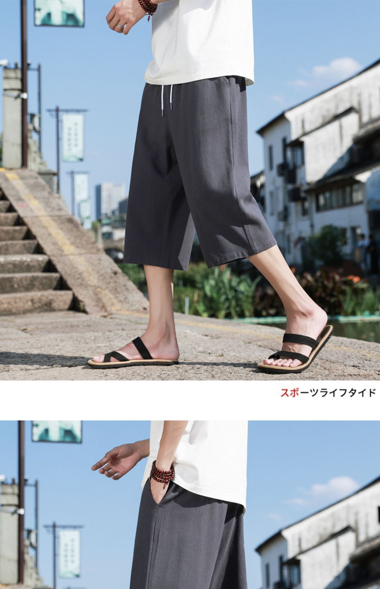 红览 新中式邹棉裤子夏季男士七分裤休闲裤K918