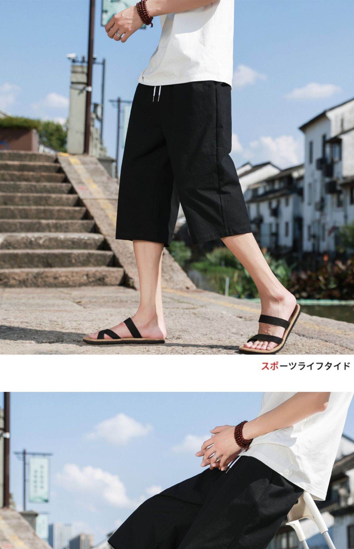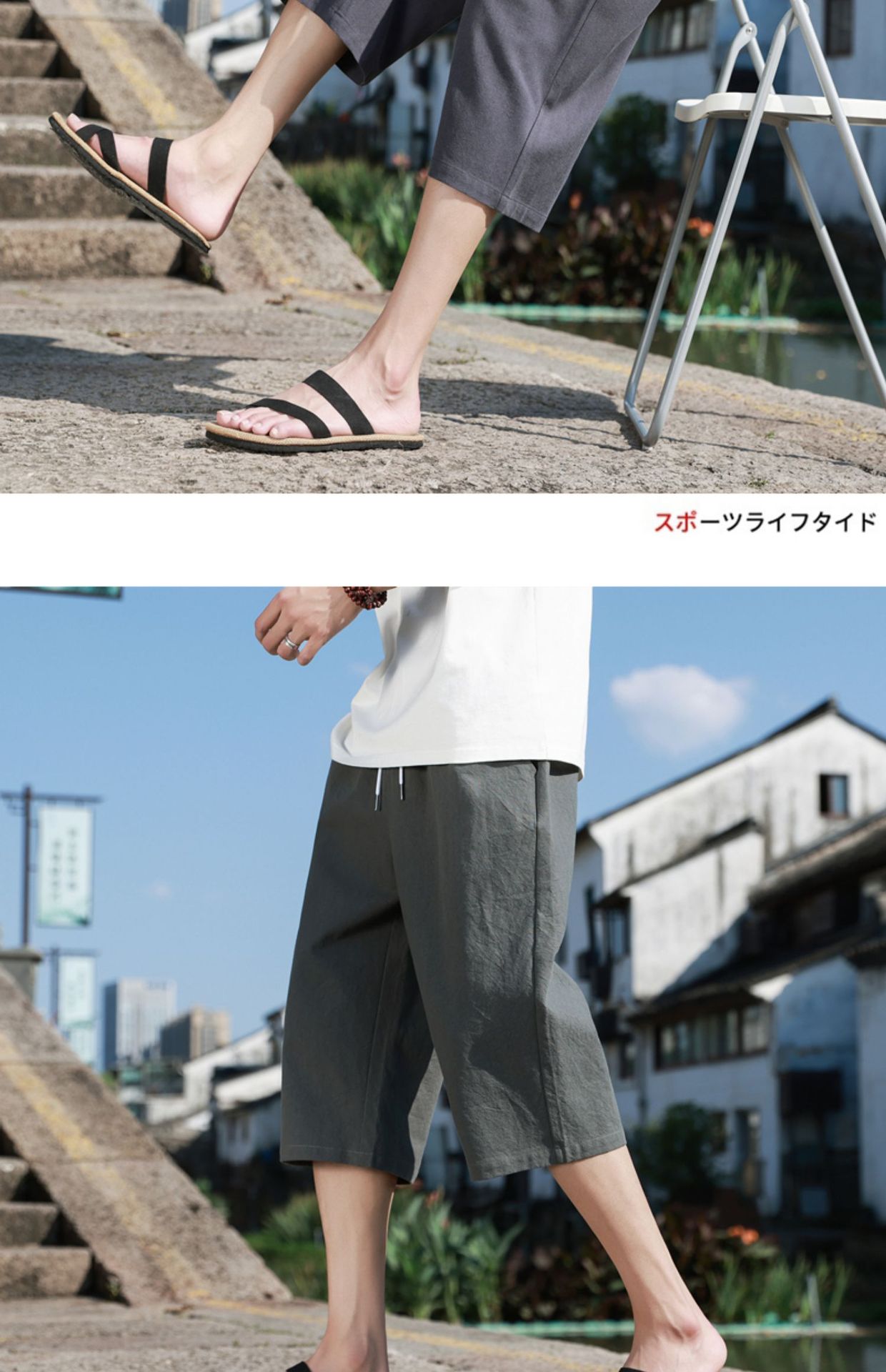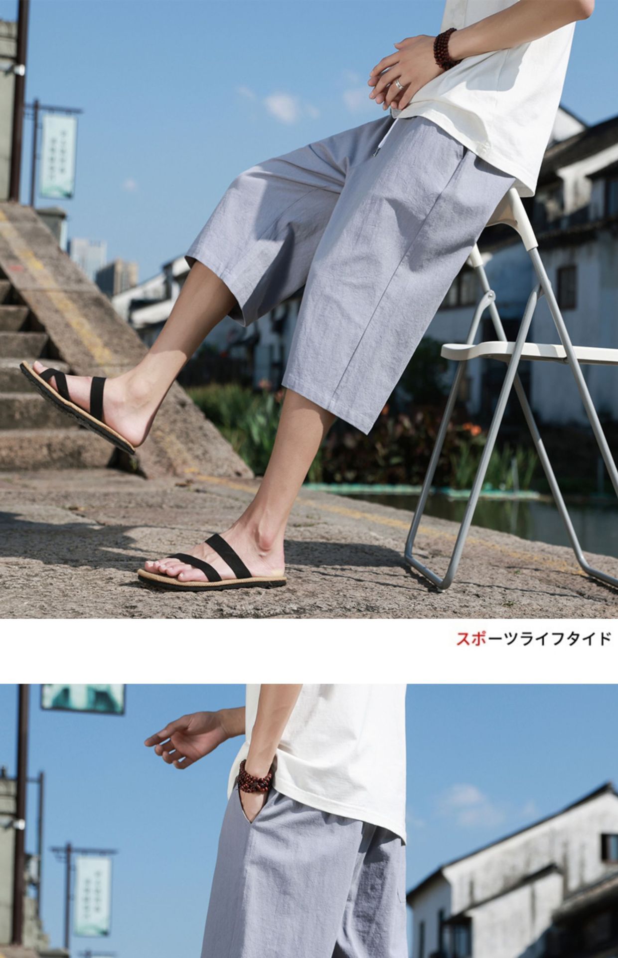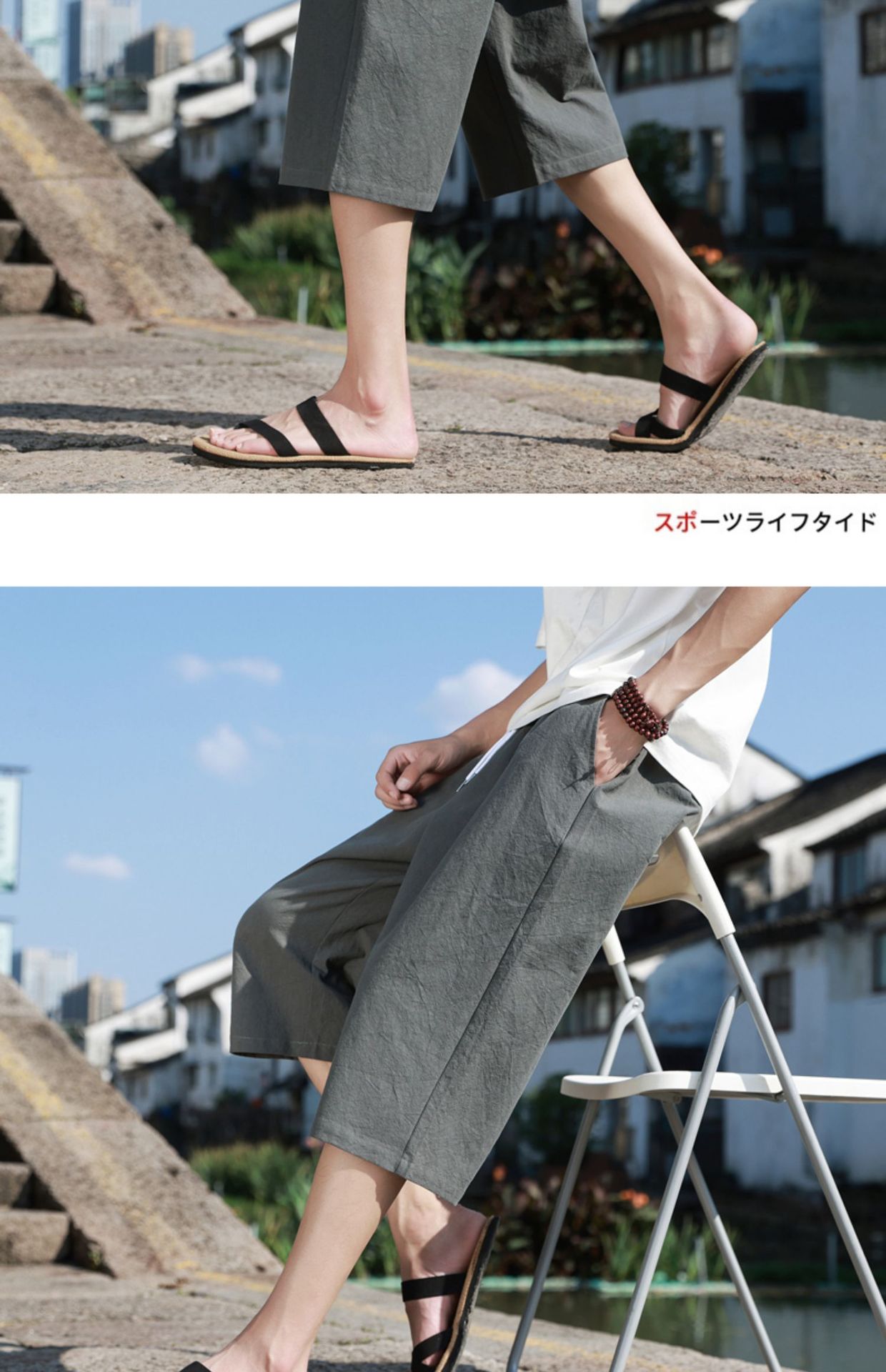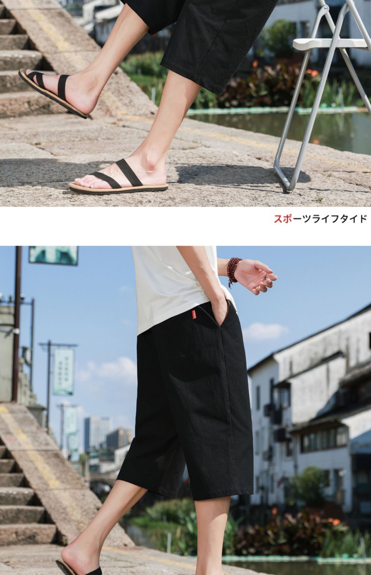 红览 新中式邹棉裤子夏季男士七分裤休闲裤K918