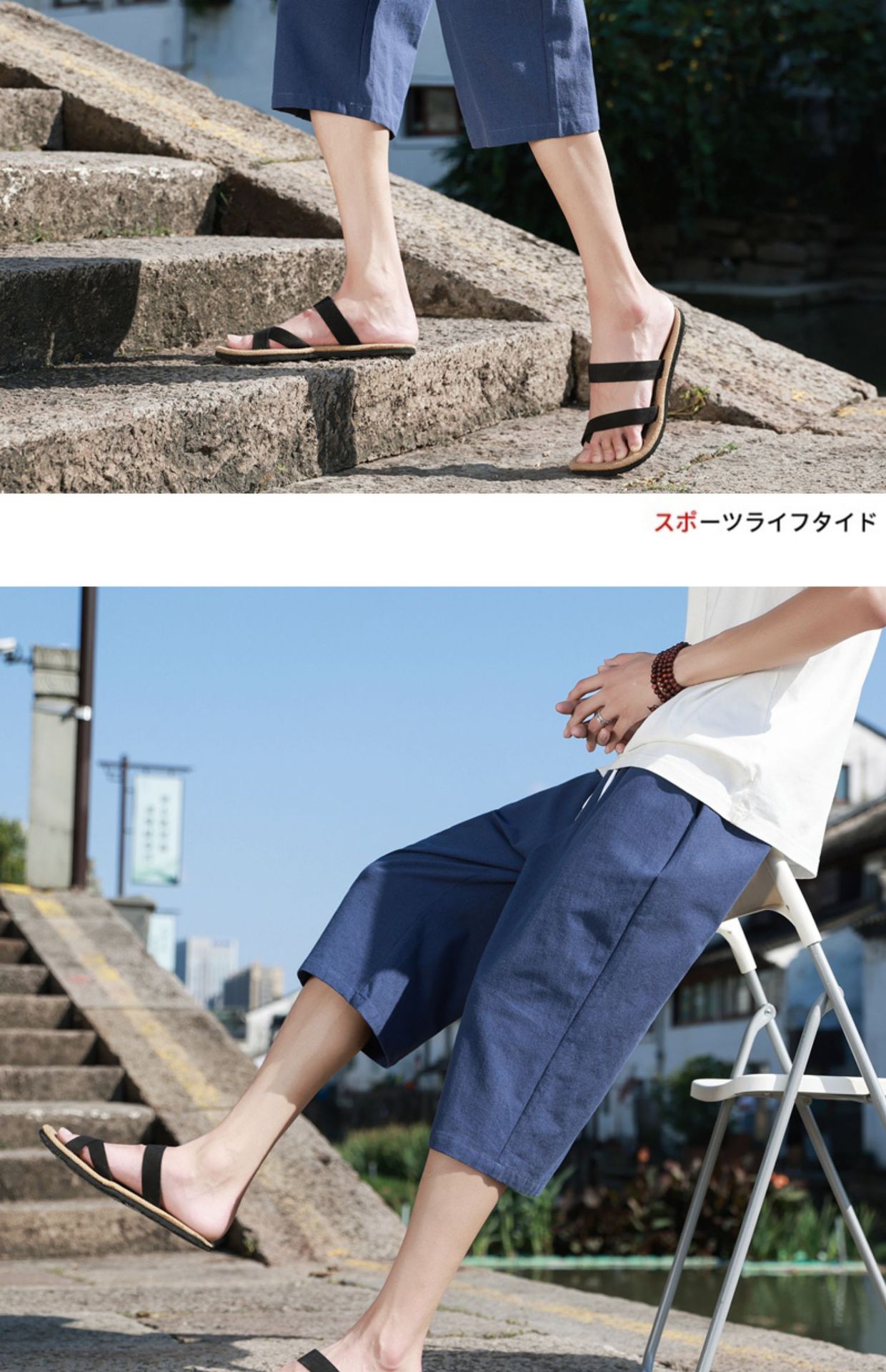 百媚生 抽绳复古宽松慵懒长阔腿休闲裤子C357