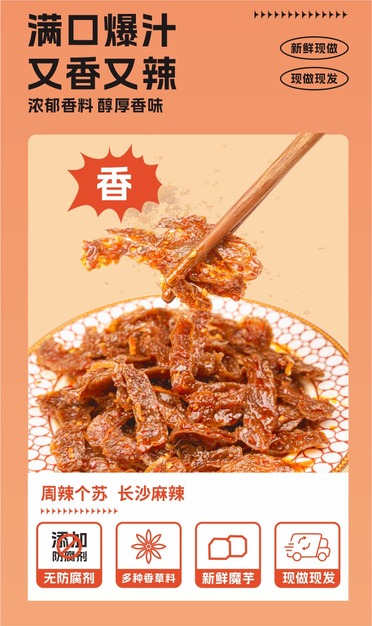 【斌哥优选】(周辣个苏I长沙麻辣系列)麻辣牛肉/秘制辣子鸡/香辣魔芋丝/特色兰花干,长沙地道手工特色麻辣小吃