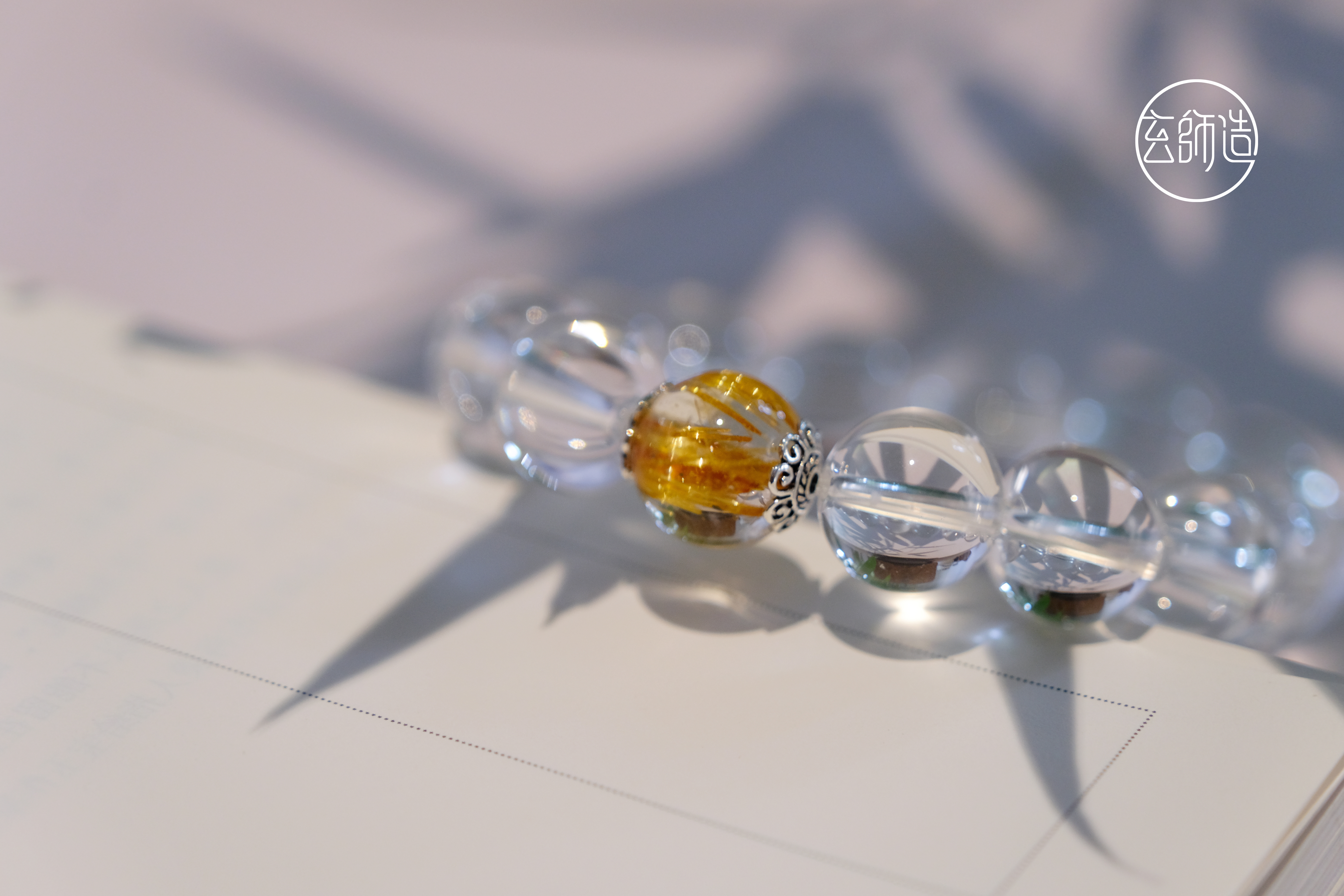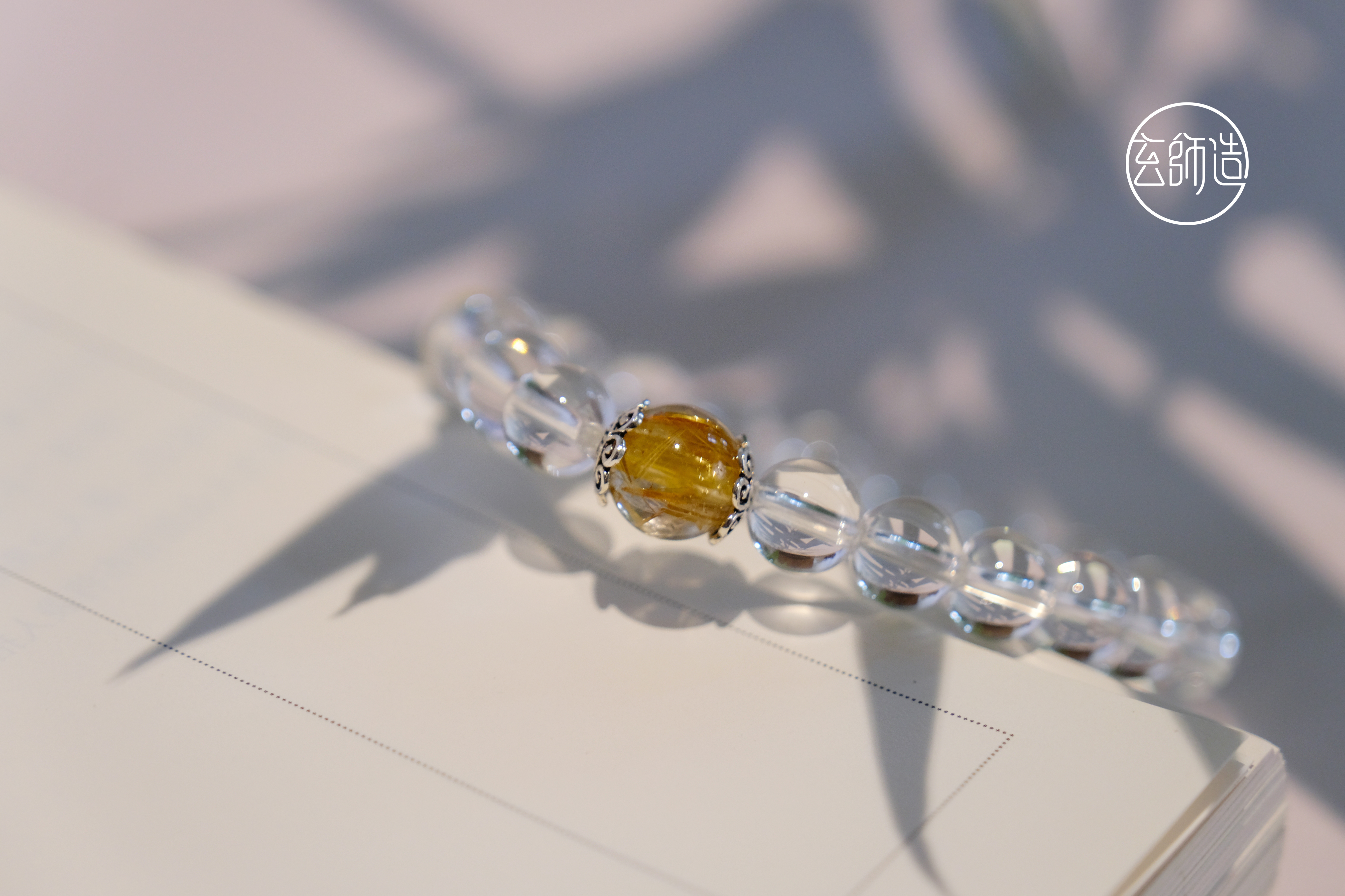晶莹剔透的白水晶是佛教七宝之一,被称为“摩尼宝珠”,搭配金属质感强烈的钛晶。