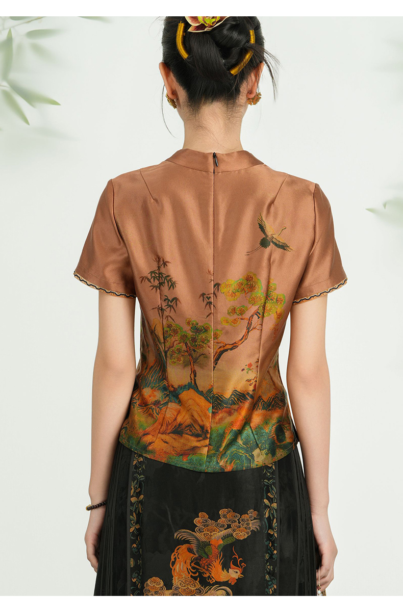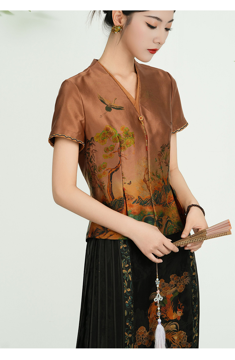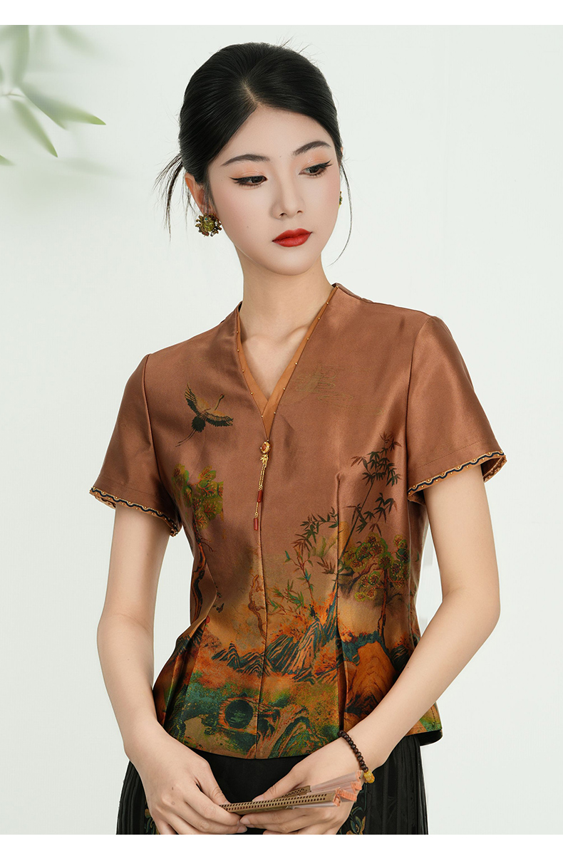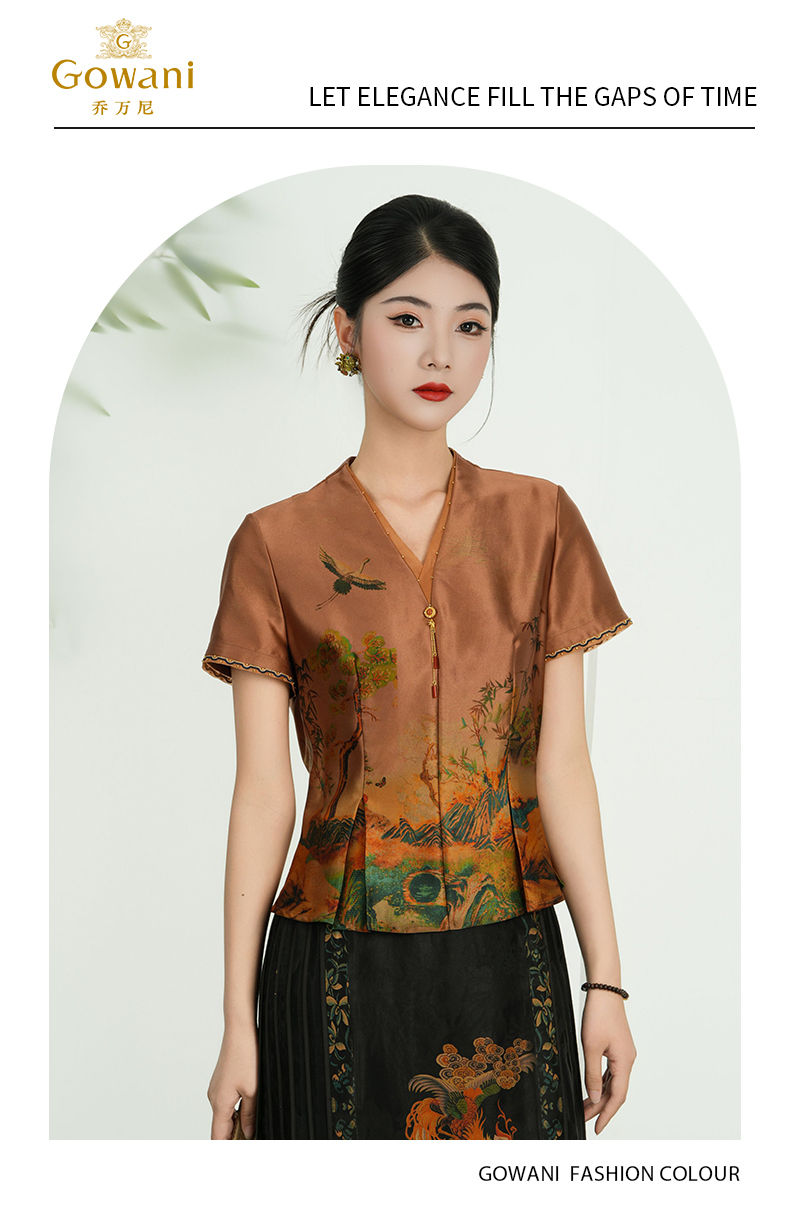 【竹林飞鹤】【香云纱】乔万尼2025新品重磅新中式精致V领上衣ED2C465