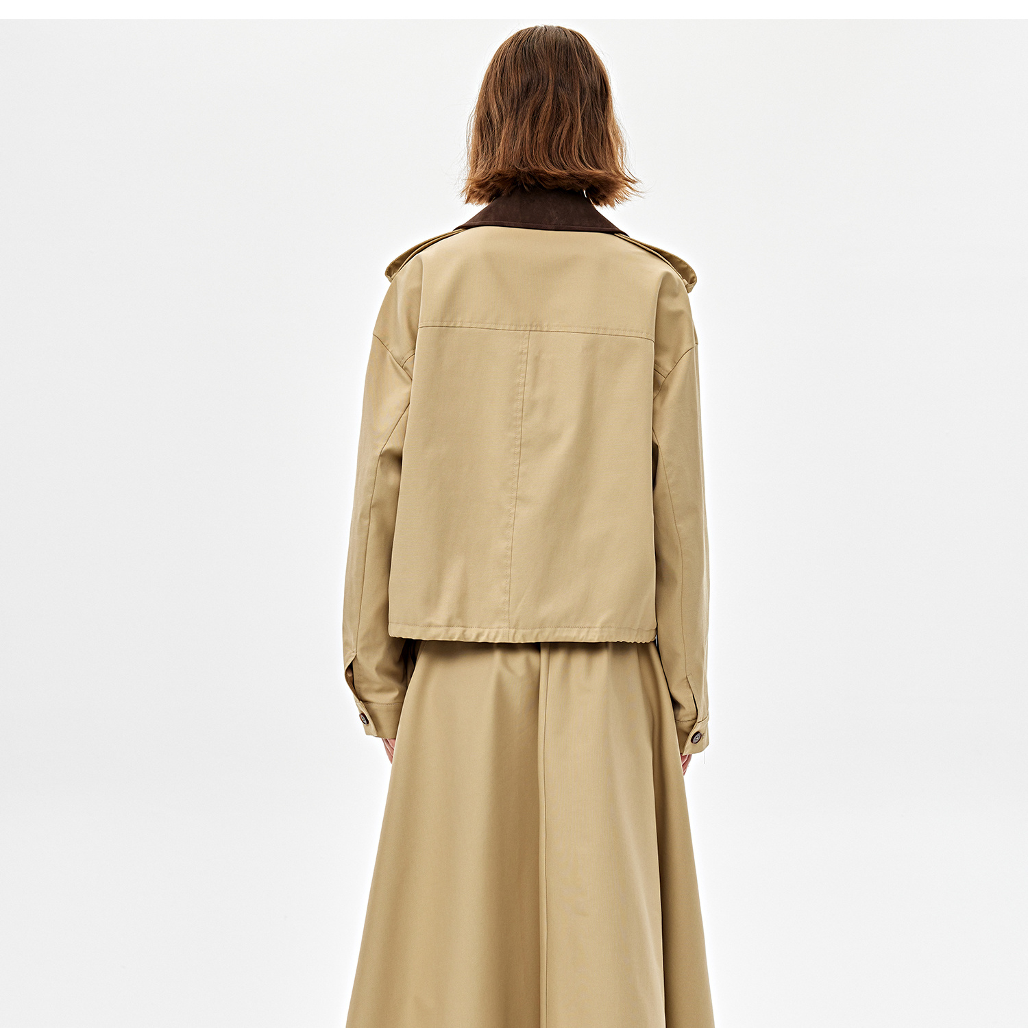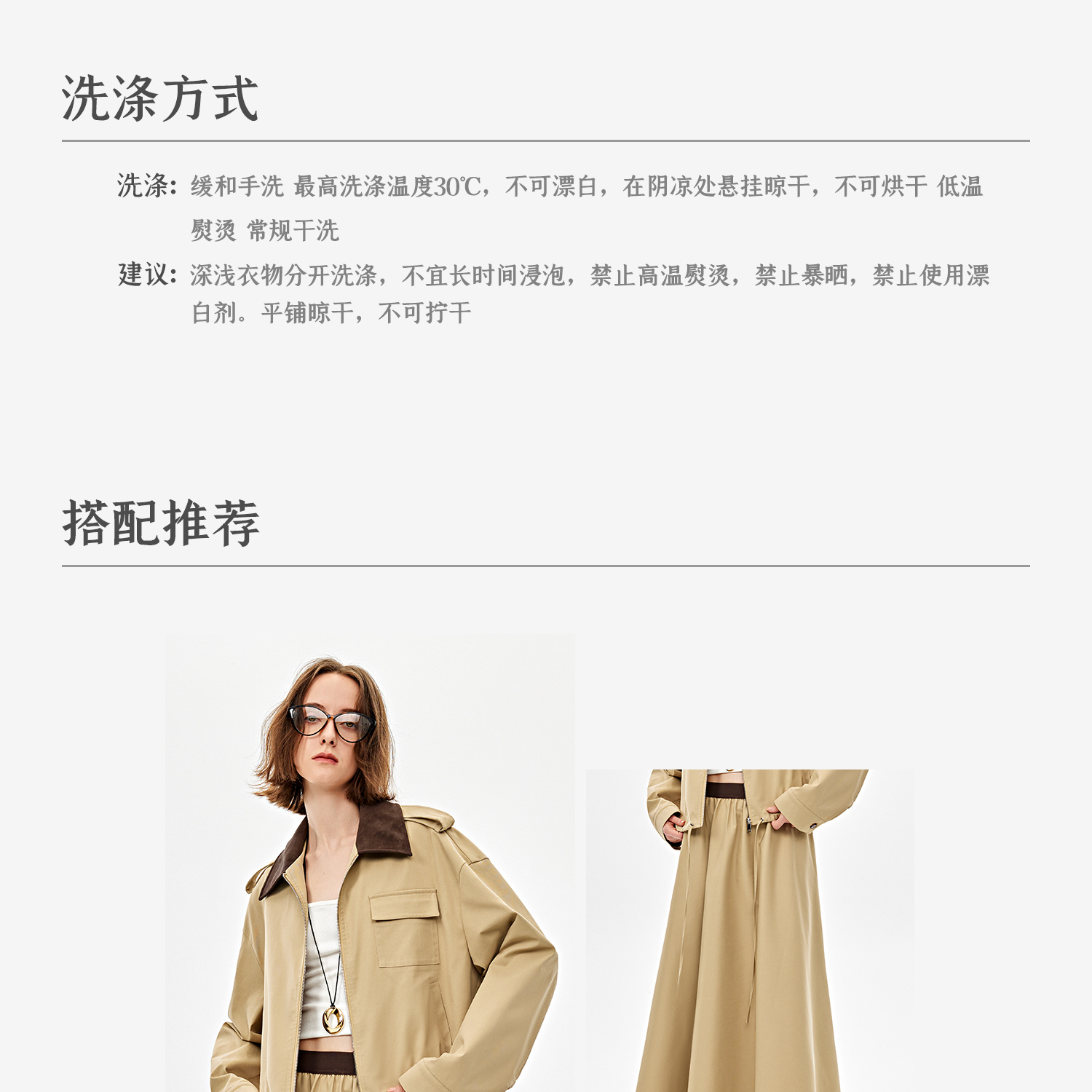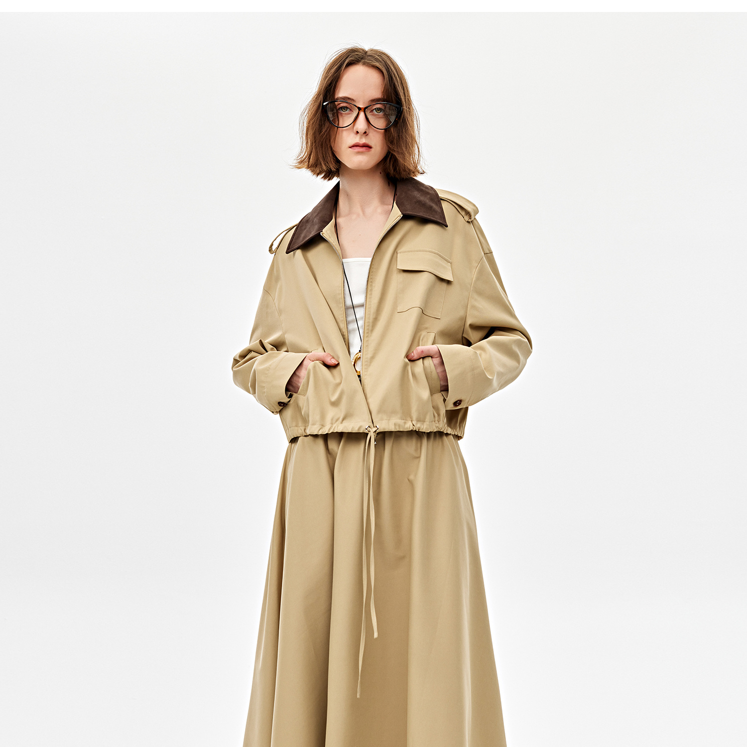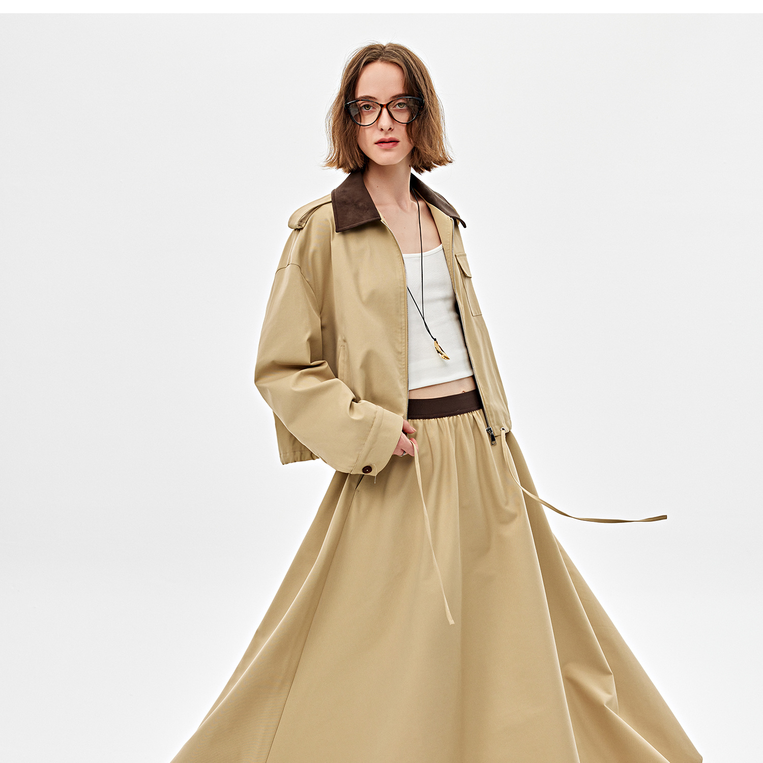 巴恩风亚麻混纺撞色翻领下摆抽绳外套/撞色腰头显瘦伞裙2025春WT2501011/BQ2501011