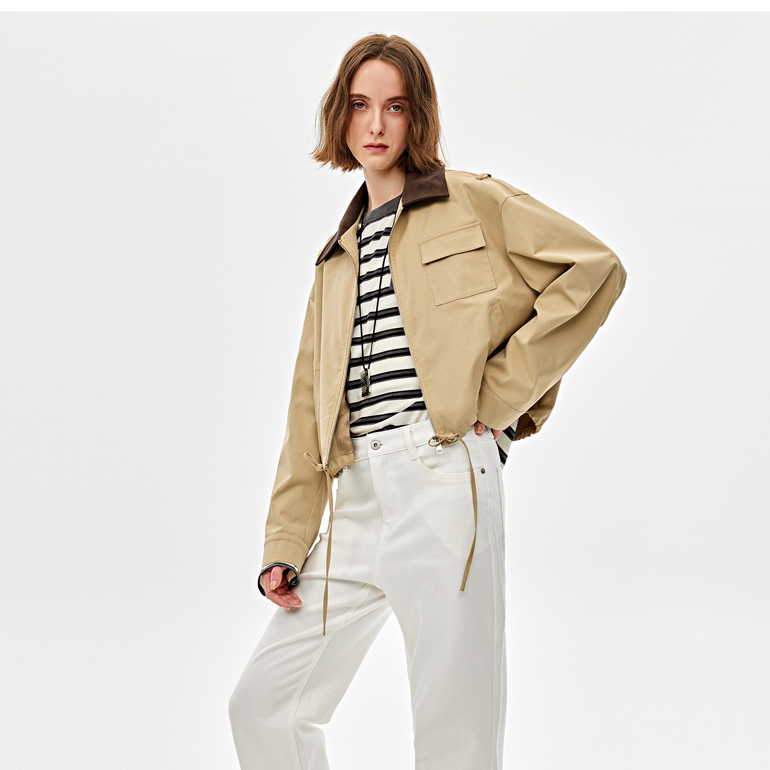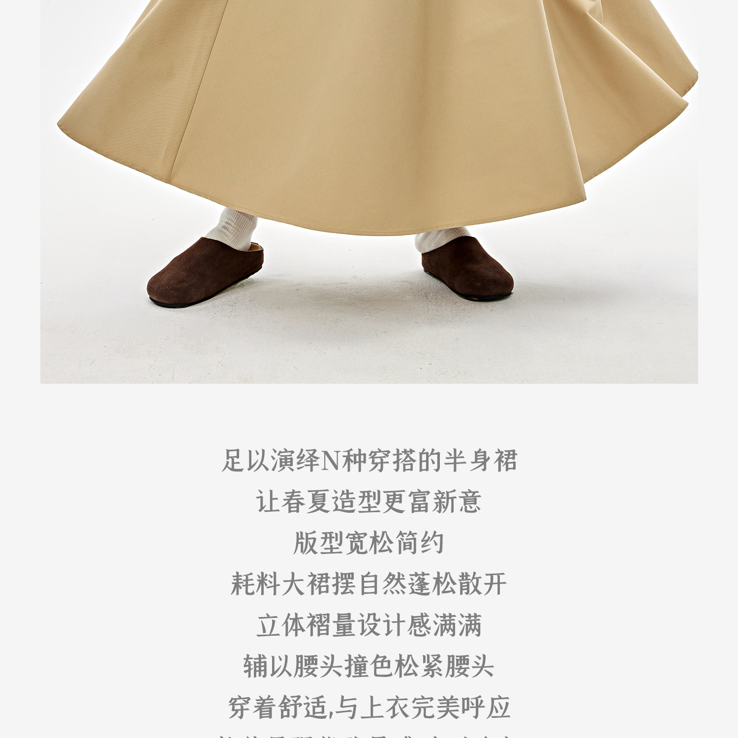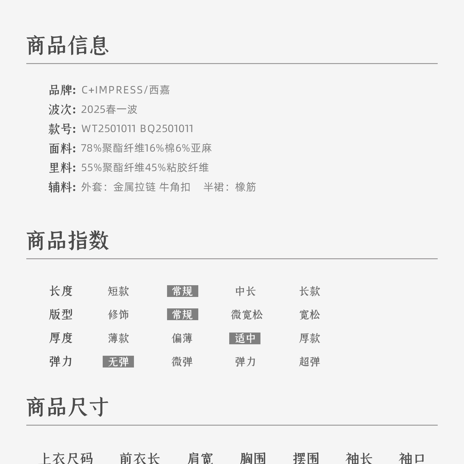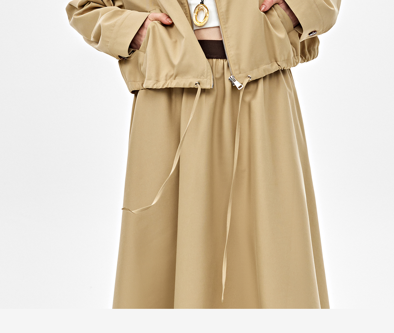 巴恩风亚麻混纺撞色翻领下摆抽绳外套/撞色腰头显瘦伞裙2025春WT2501011/BQ2501011