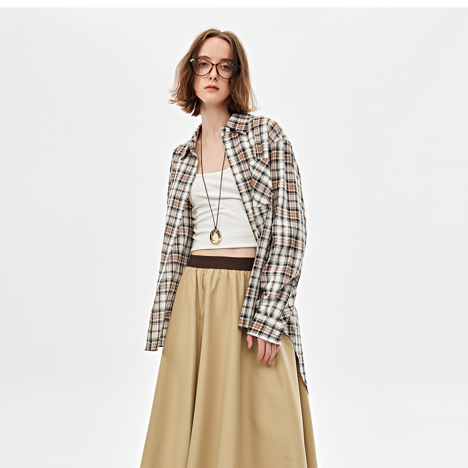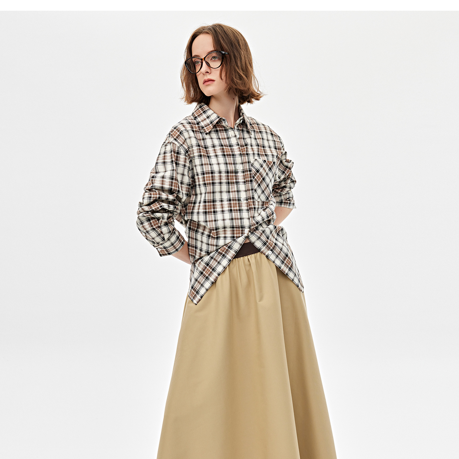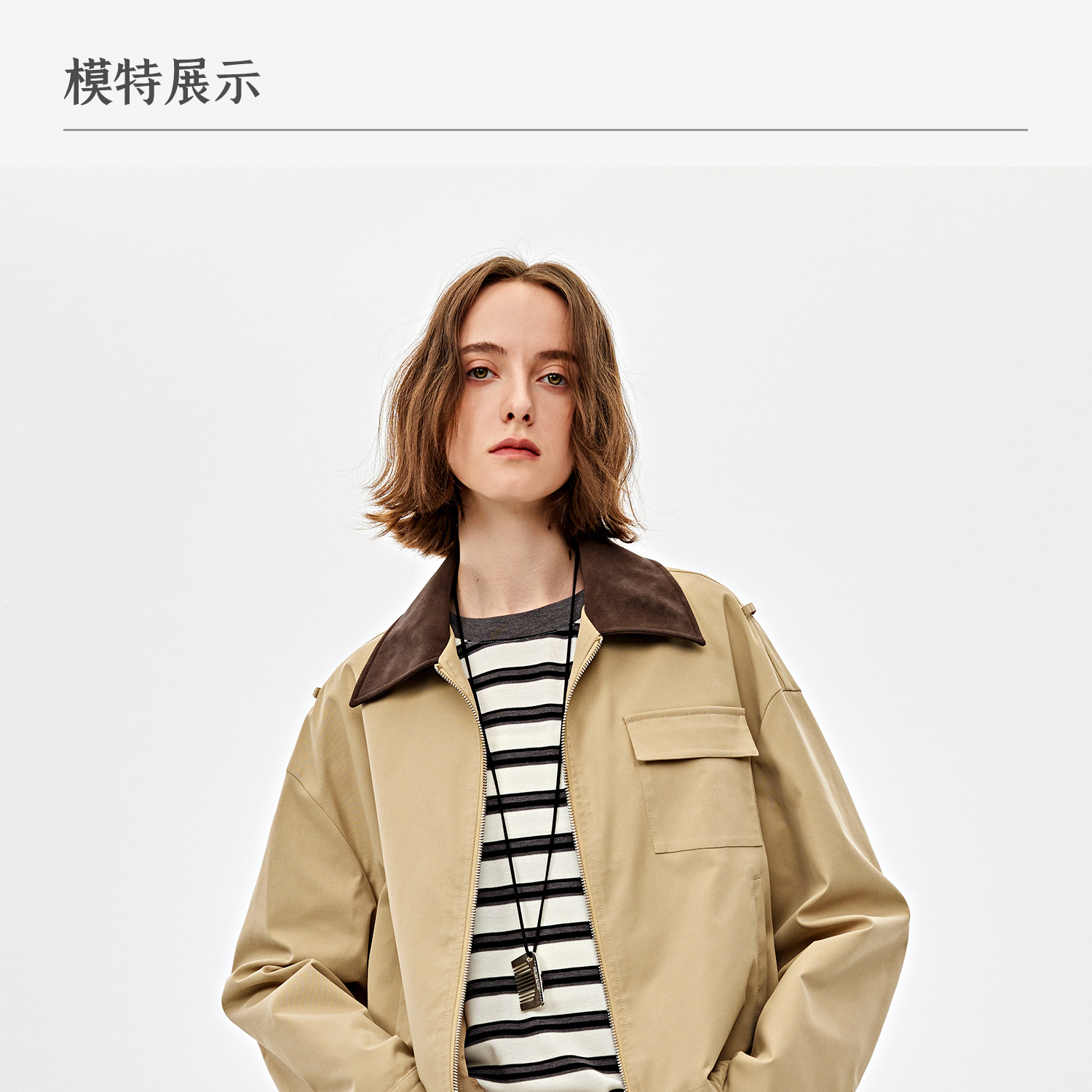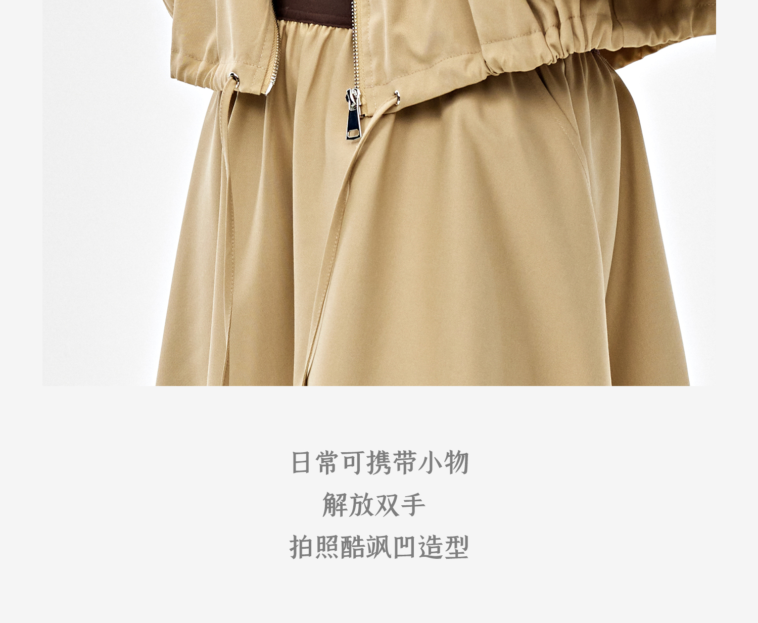 巴恩风亚麻混纺撞色翻领下摆抽绳外套/撞色腰头显瘦伞裙2025春WT2501011/BQ2501011