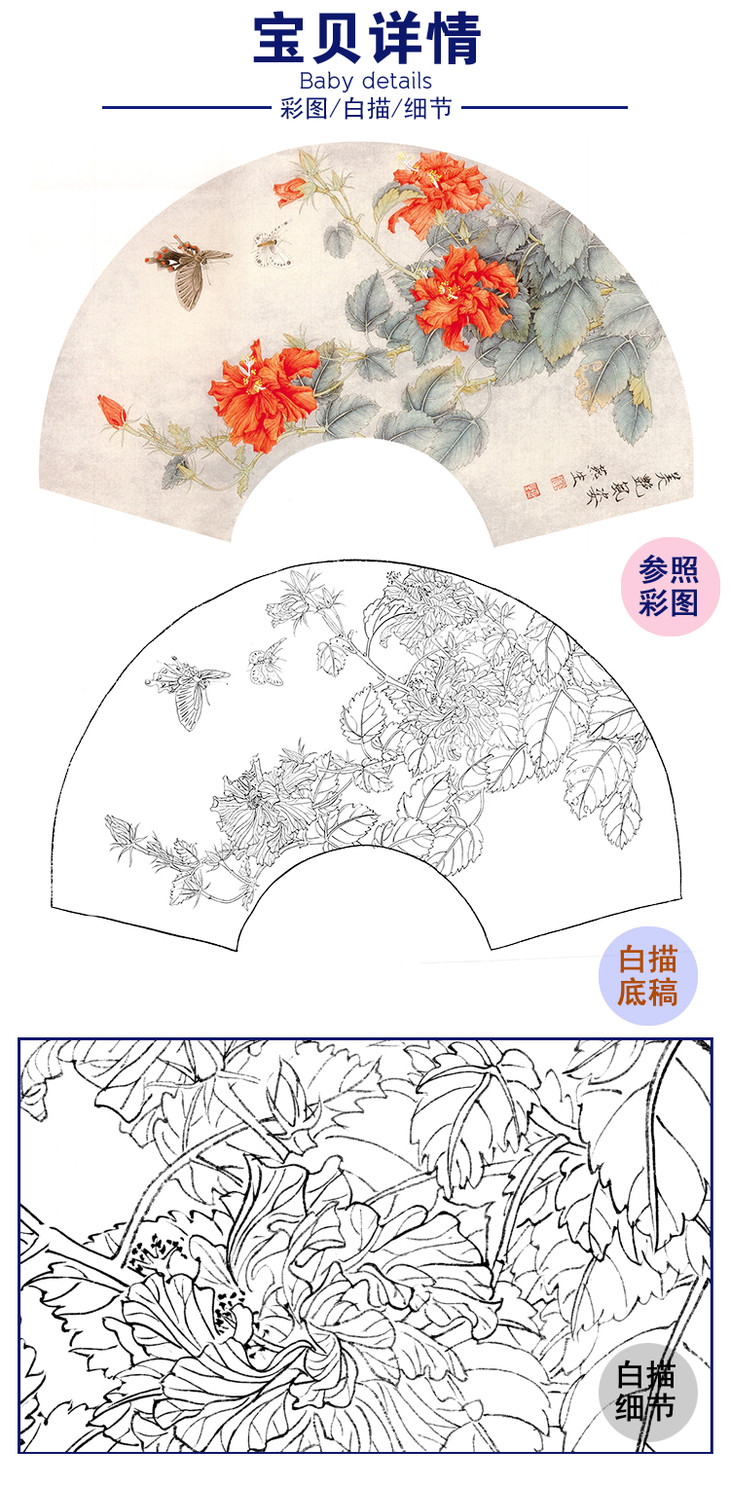 工笔花鸟白描底稿-美艳风姿-扇面小品-A359