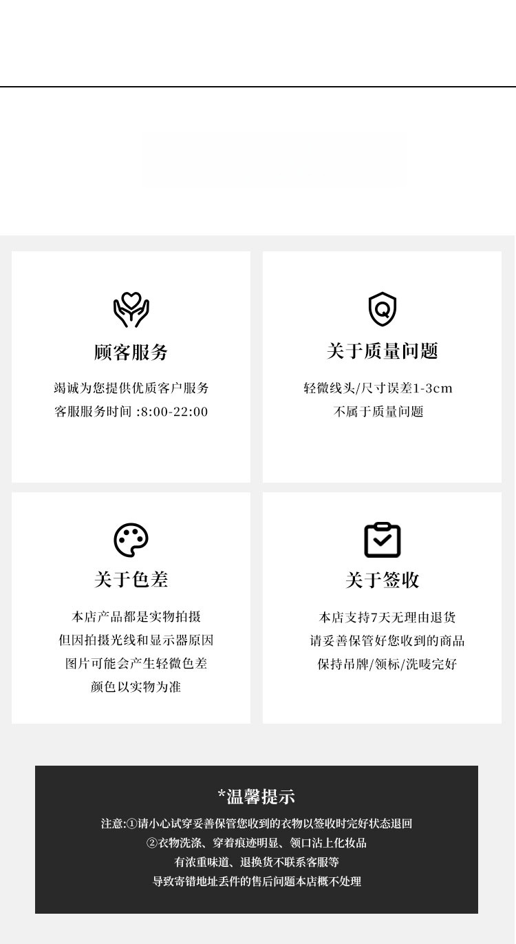 【售后政策】:7天之内包装完好,不影响二次销售的,可以无理由退换,但需要您承担寄回费用