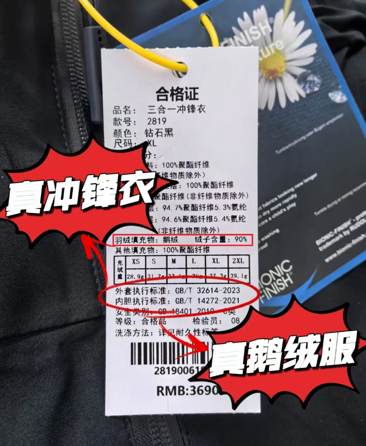 【鸟家同厂同源 国标Ⅱ级真冲+可拆卸90鹅绒】全天候硬壳全压胶三合一冲锋鹅绒服 (国标GB/T 32614-2023冲锋衣+国标GB/T 14272-2021鹅绒内胆)