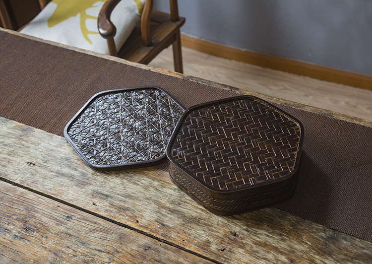 产品名称:竹编大漆两用收纳篮 六角