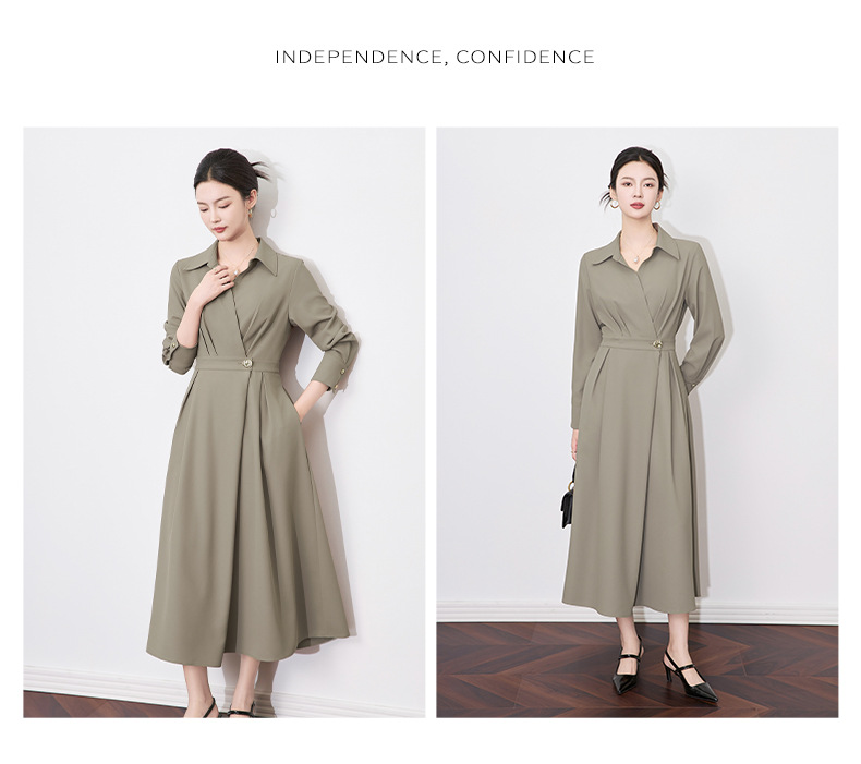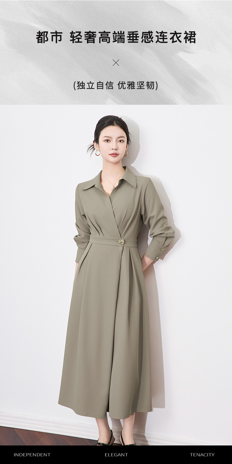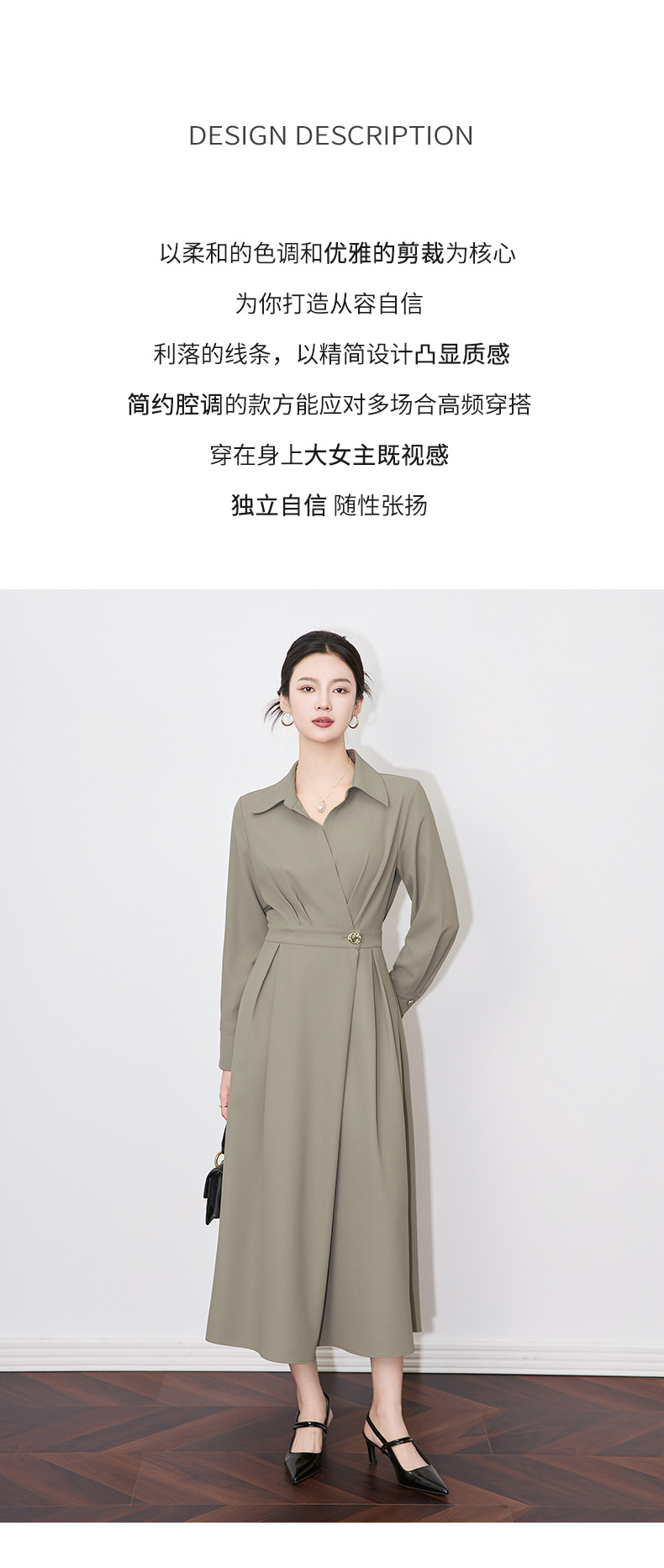 【高货wl】全新升级【铂金会员321/天猫429/差价108】(01623) 洛诗琳2025春季新款高级感翻领衬衫裙通勤气质轻奢长裙wl01623