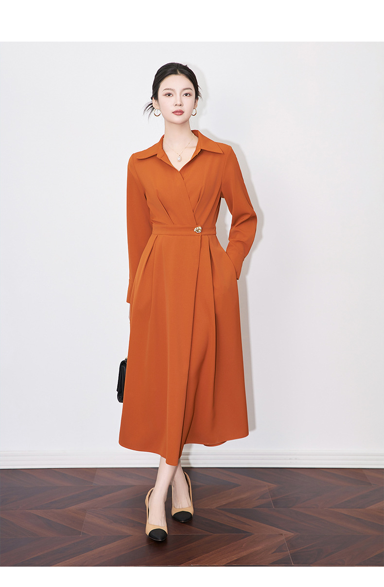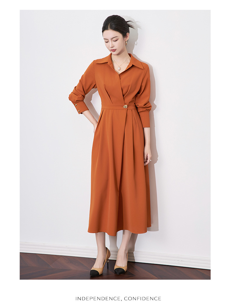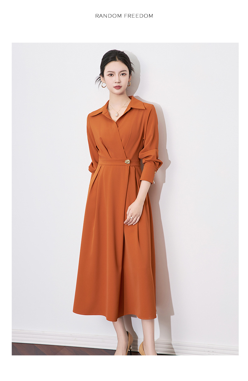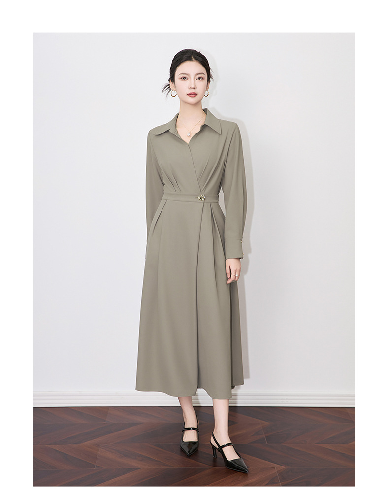 【高货wl】全新升级【铂金会员321/天猫429/差价108】(01623) 洛诗琳2025春季新款高级感翻领衬衫裙通勤气质轻奢长裙wl01623