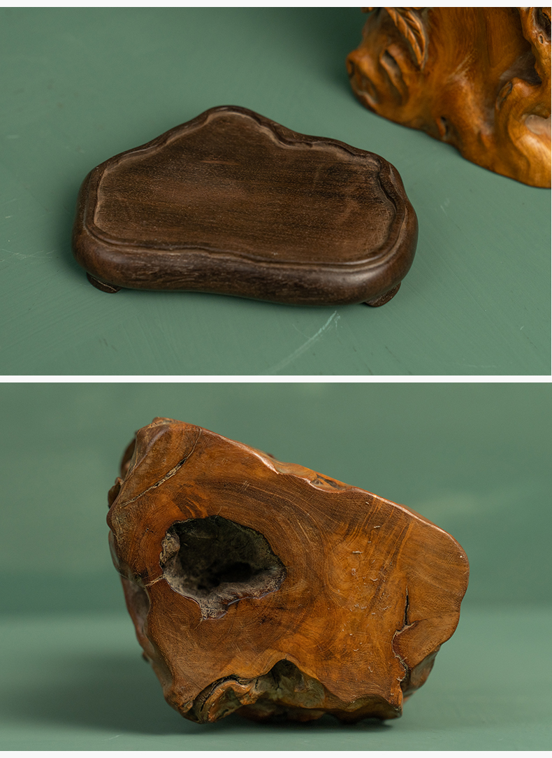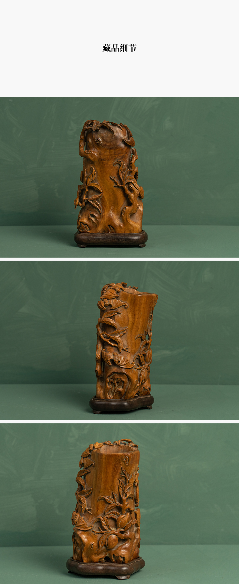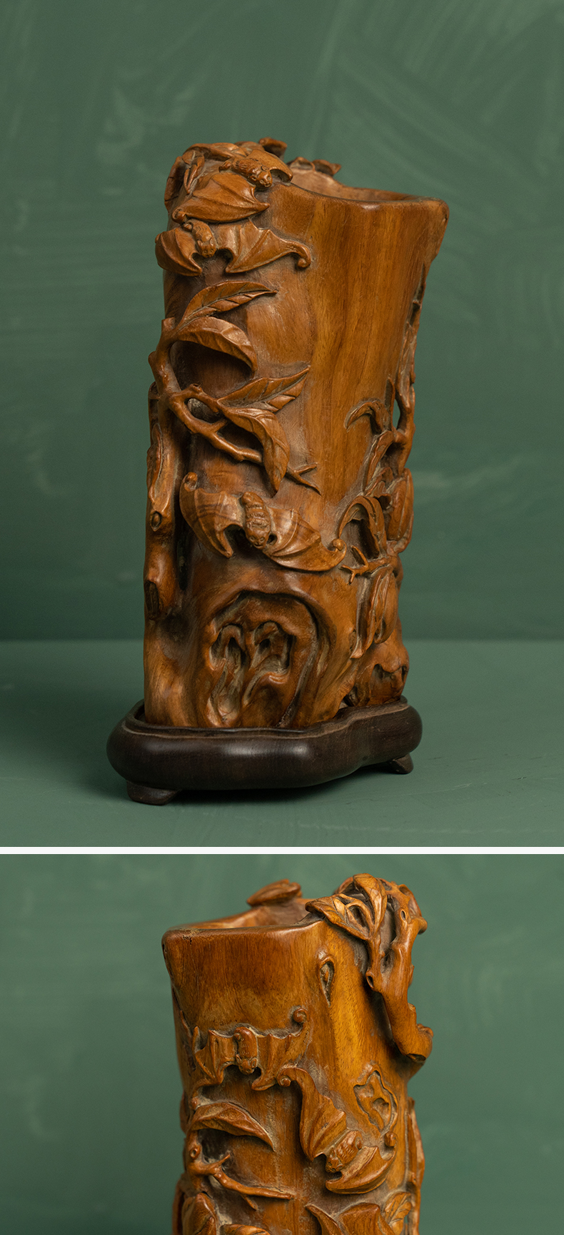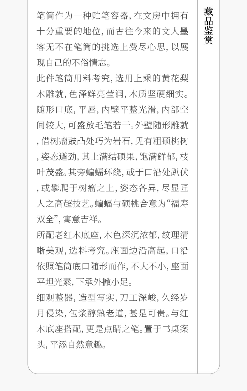 清 黄花梨雕福寿纹随形笔筒(红木座)