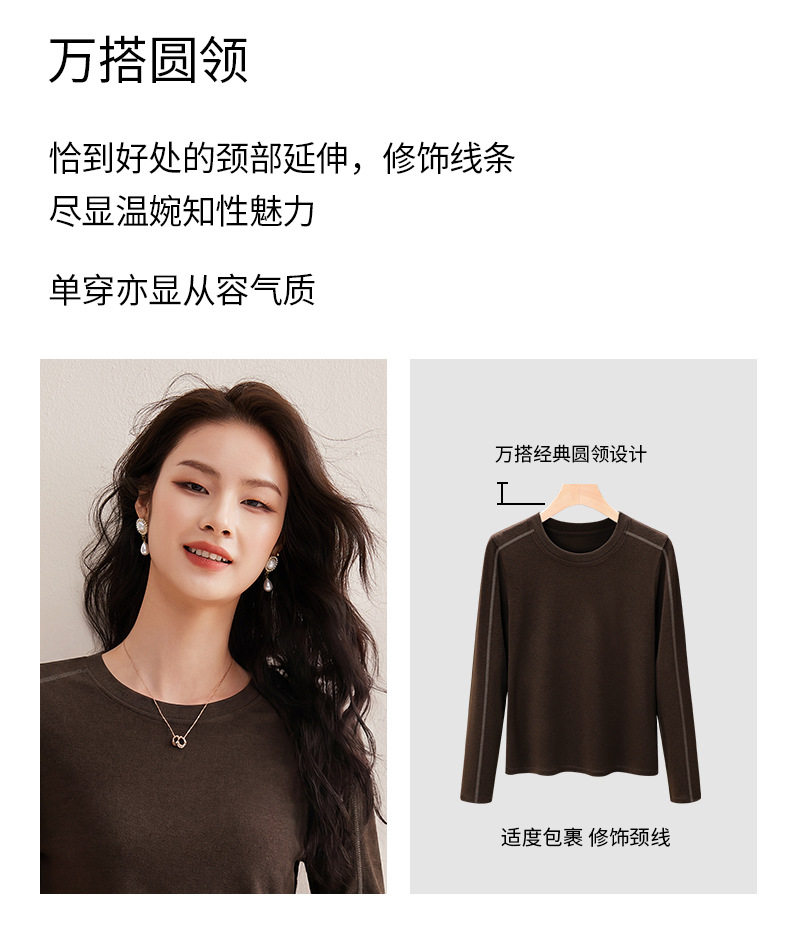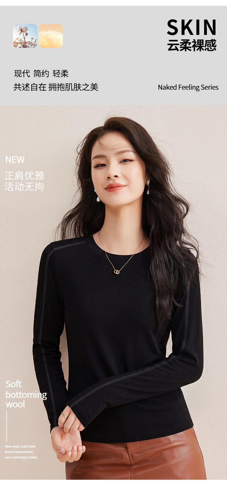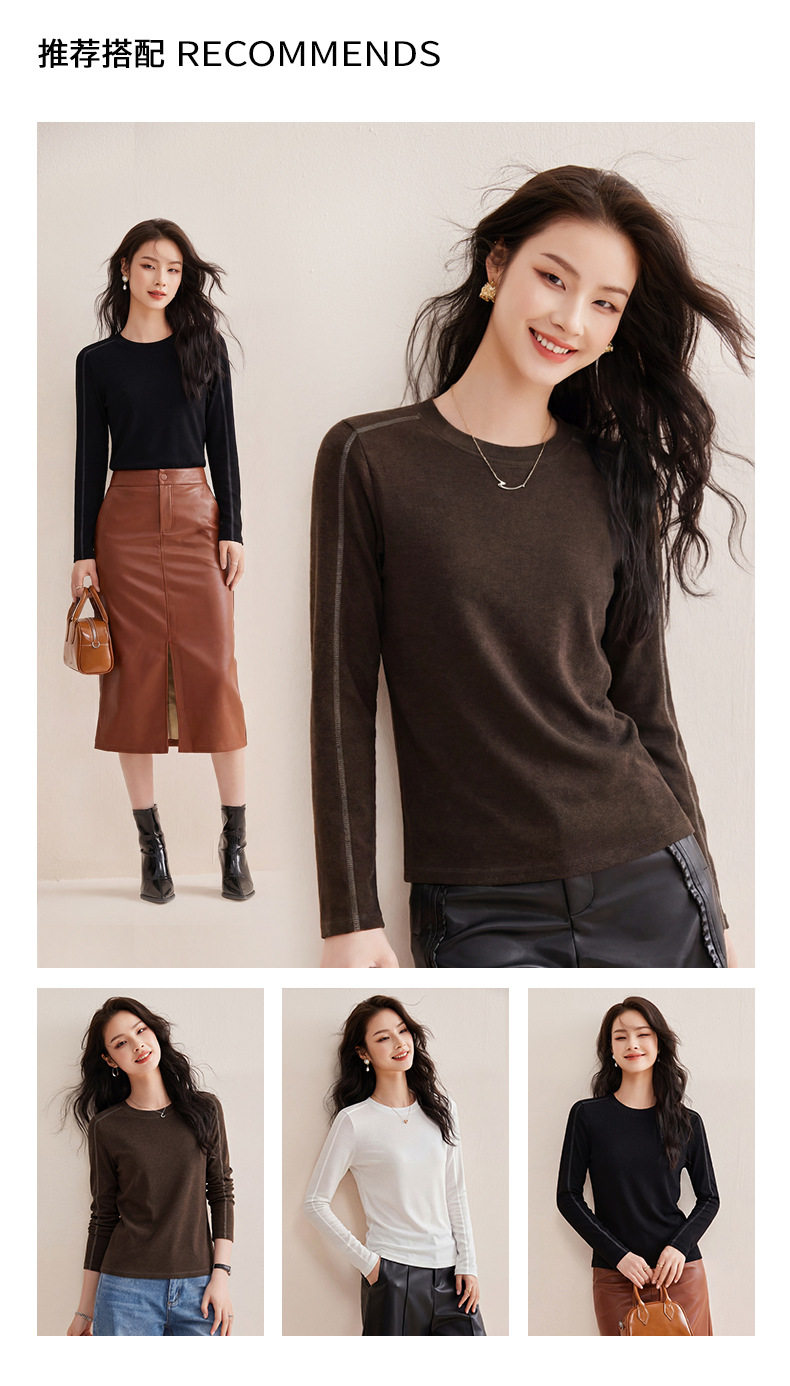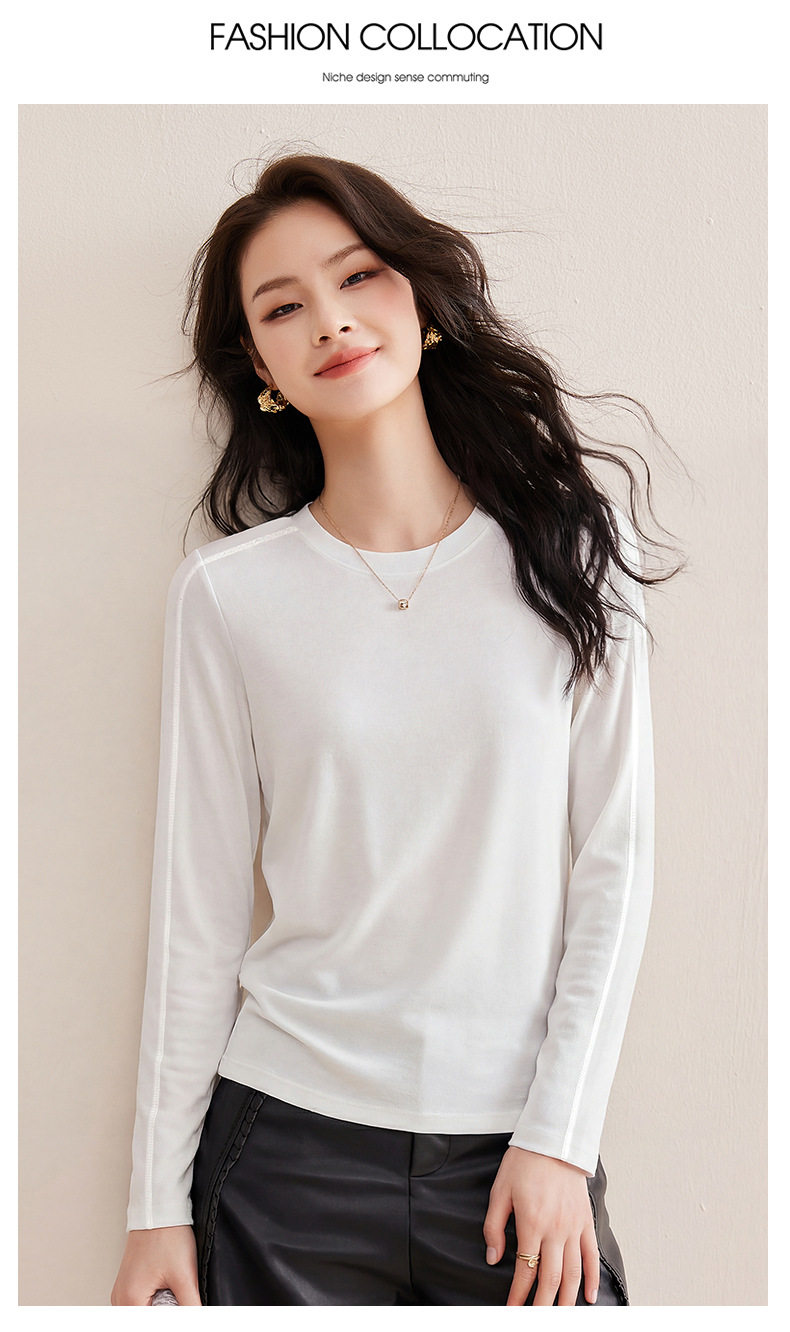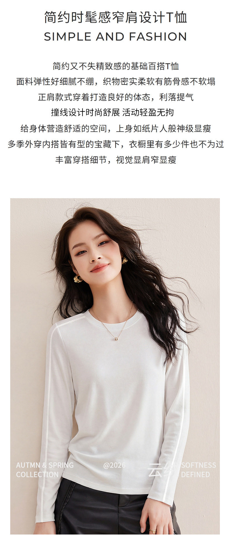 「自j」全新升级【铂金会员119/天猫159/差价40】(01716)洛诗琳休闲通勤打底衫2026新款圆领肩部撞色线条修身上衣