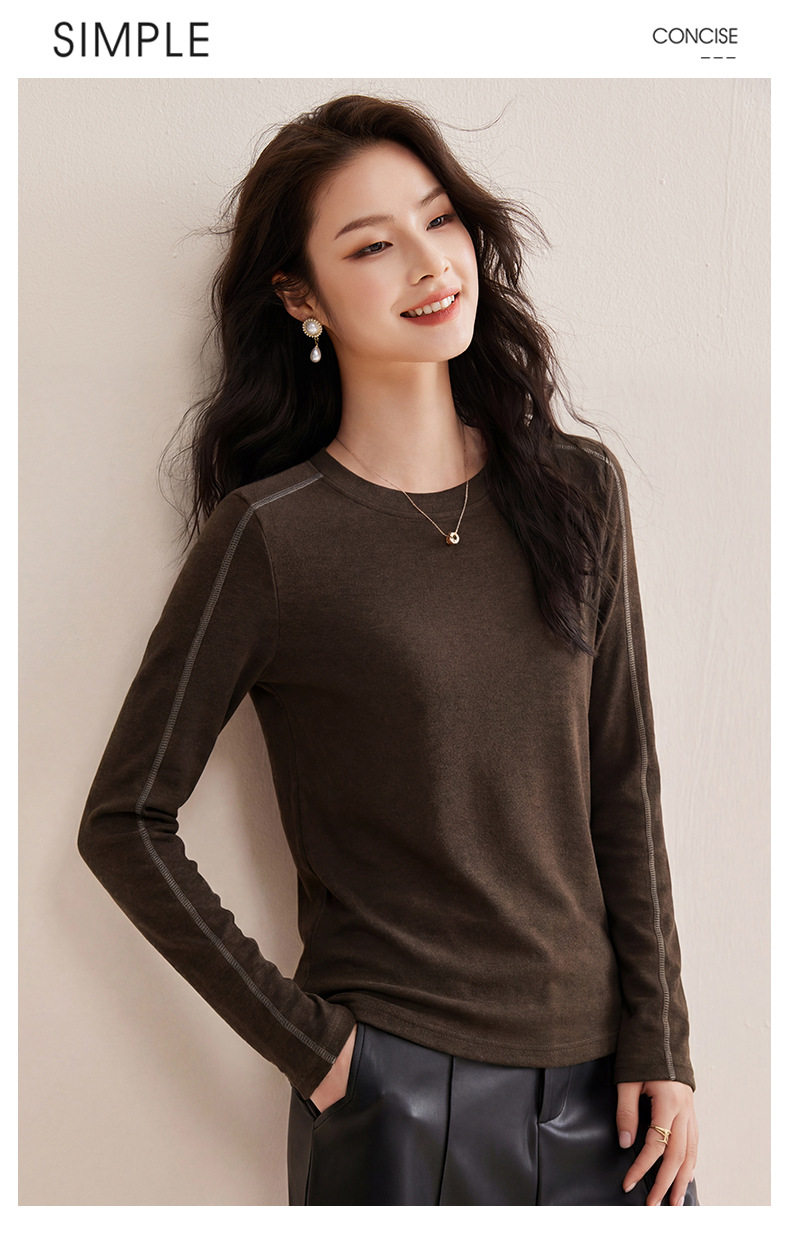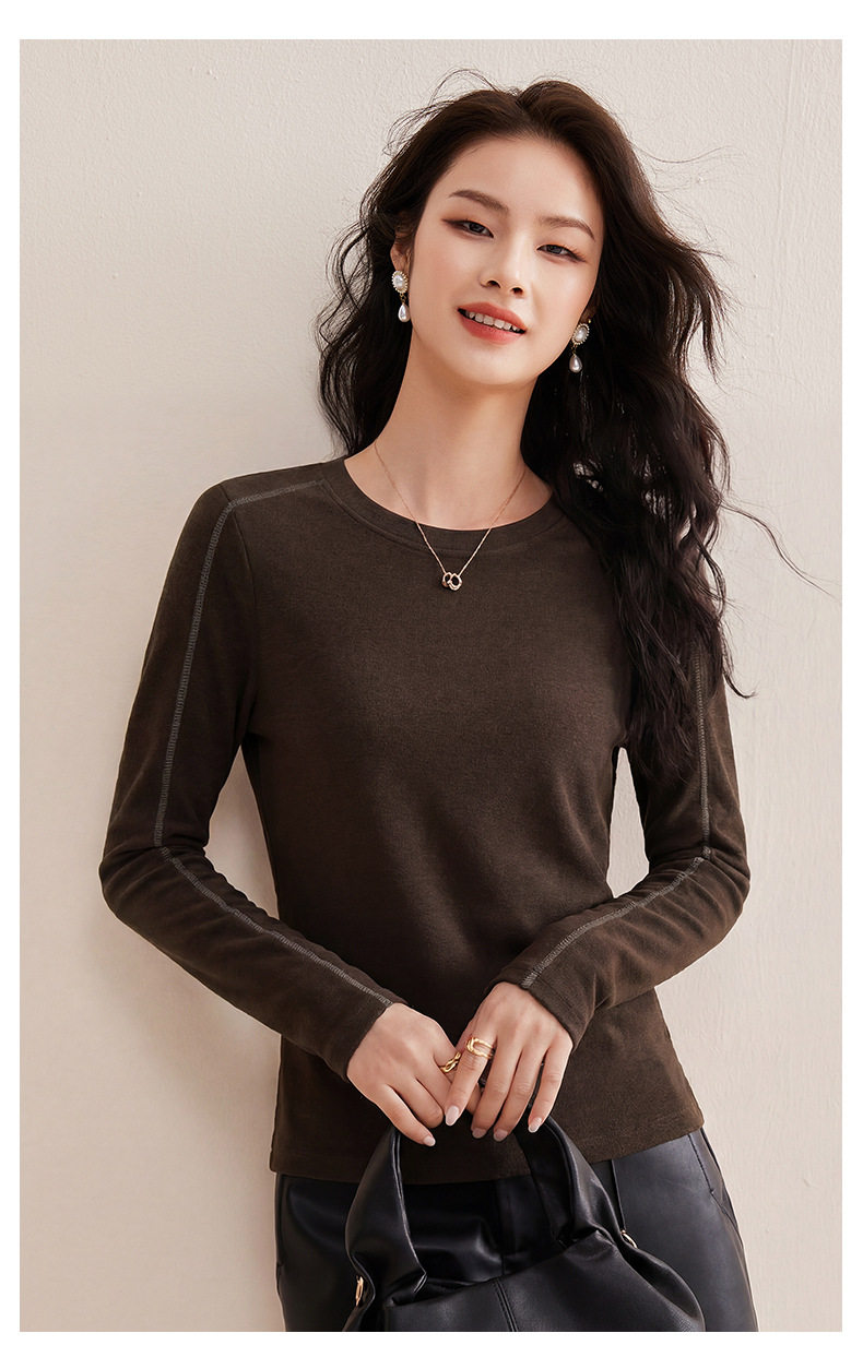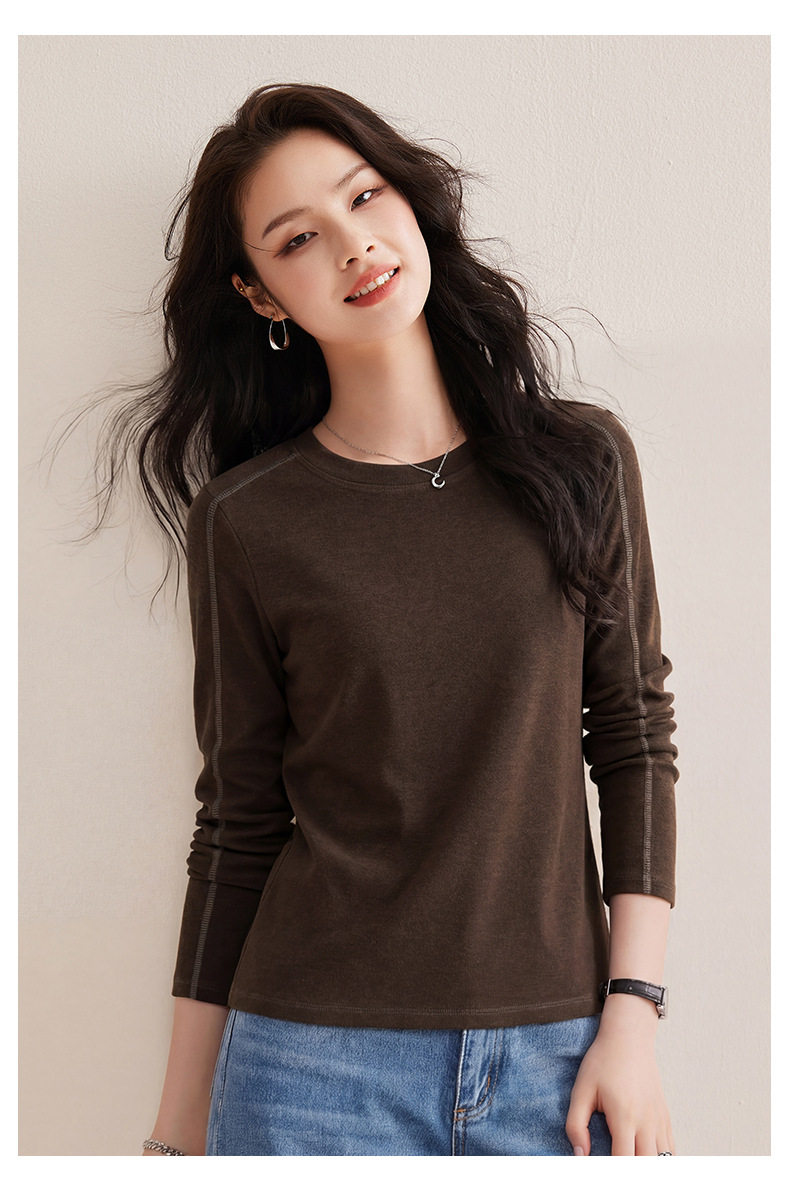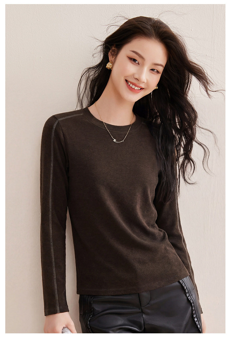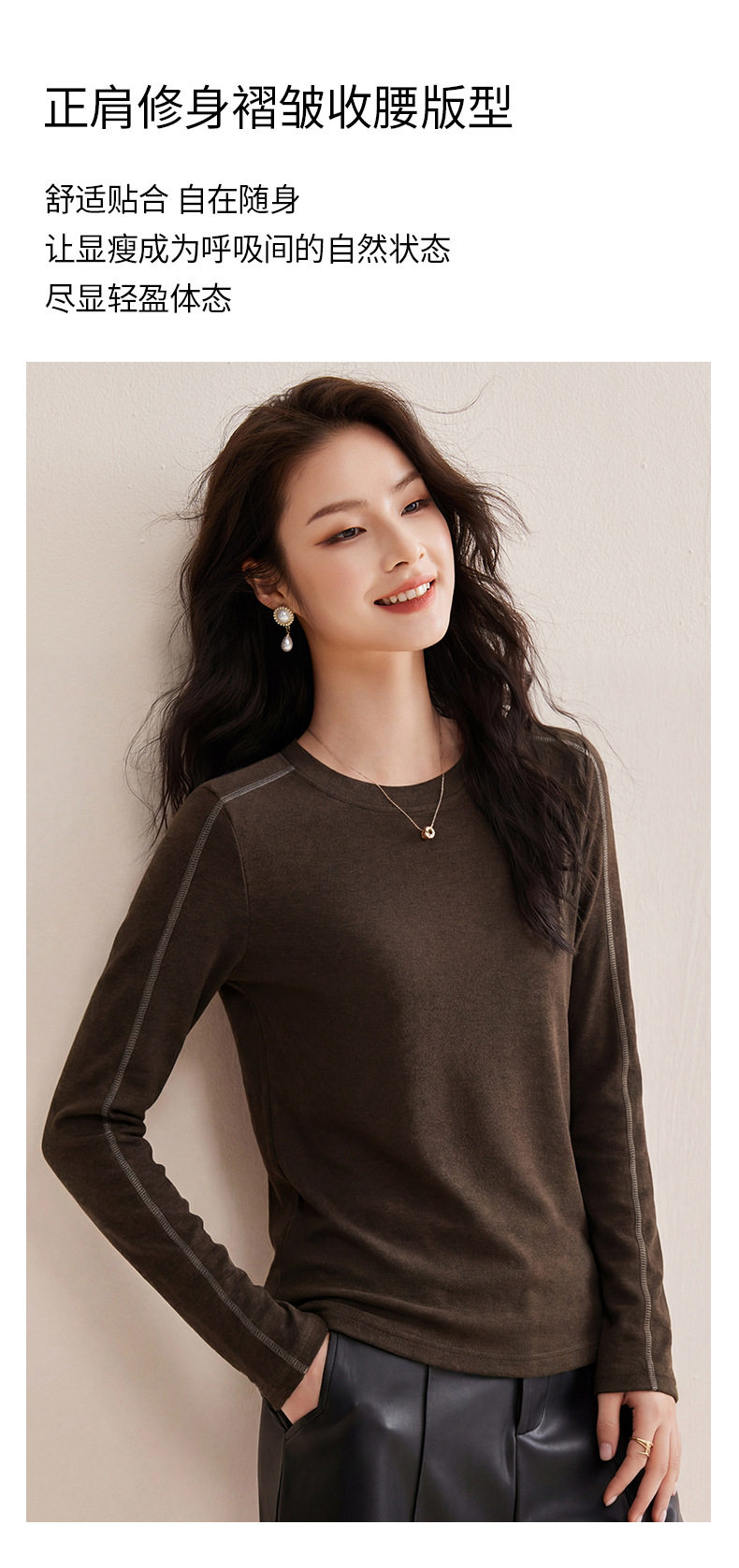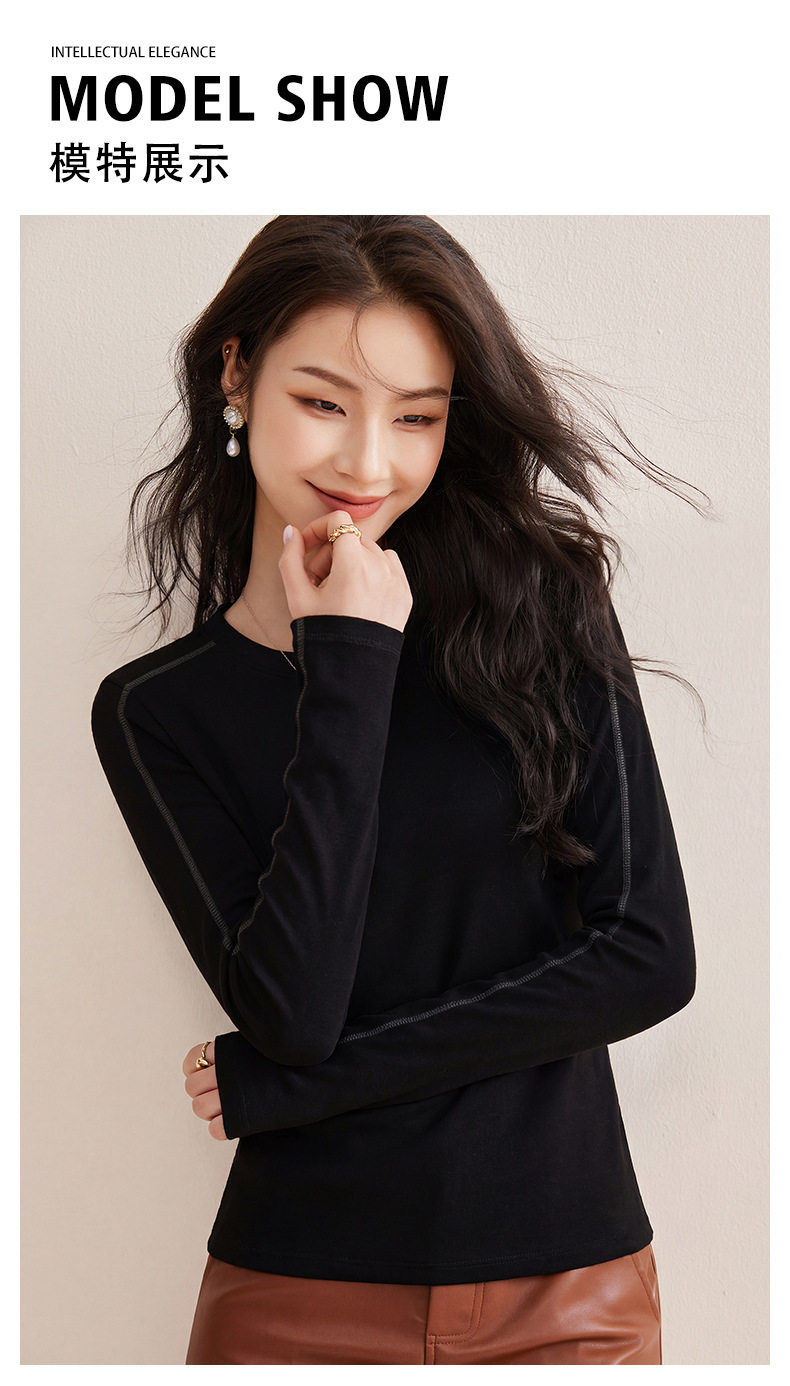 「自j」全新升级【铂金会员119/天猫159/差价40】(01716)洛诗琳休闲通勤打底衫2026新款圆领肩部撞色线条修身上衣