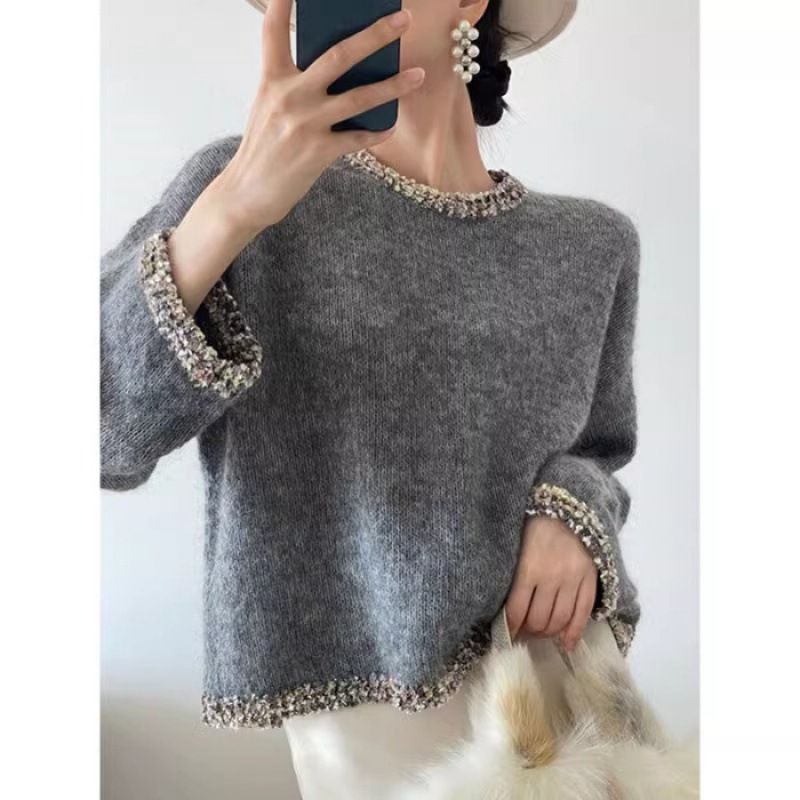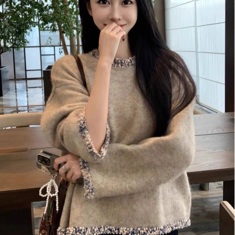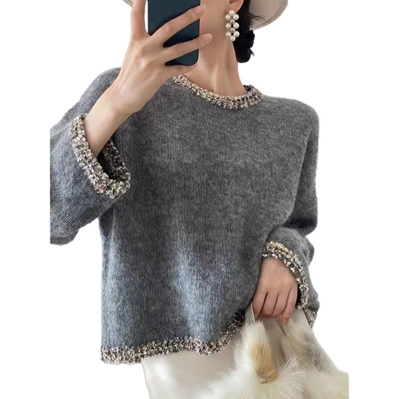 【保暖舒适❗️亲肤柔软】YS法式小香风复古短版重工马海毛针织衫女秋冬高级感宽松套头毛衣。jc