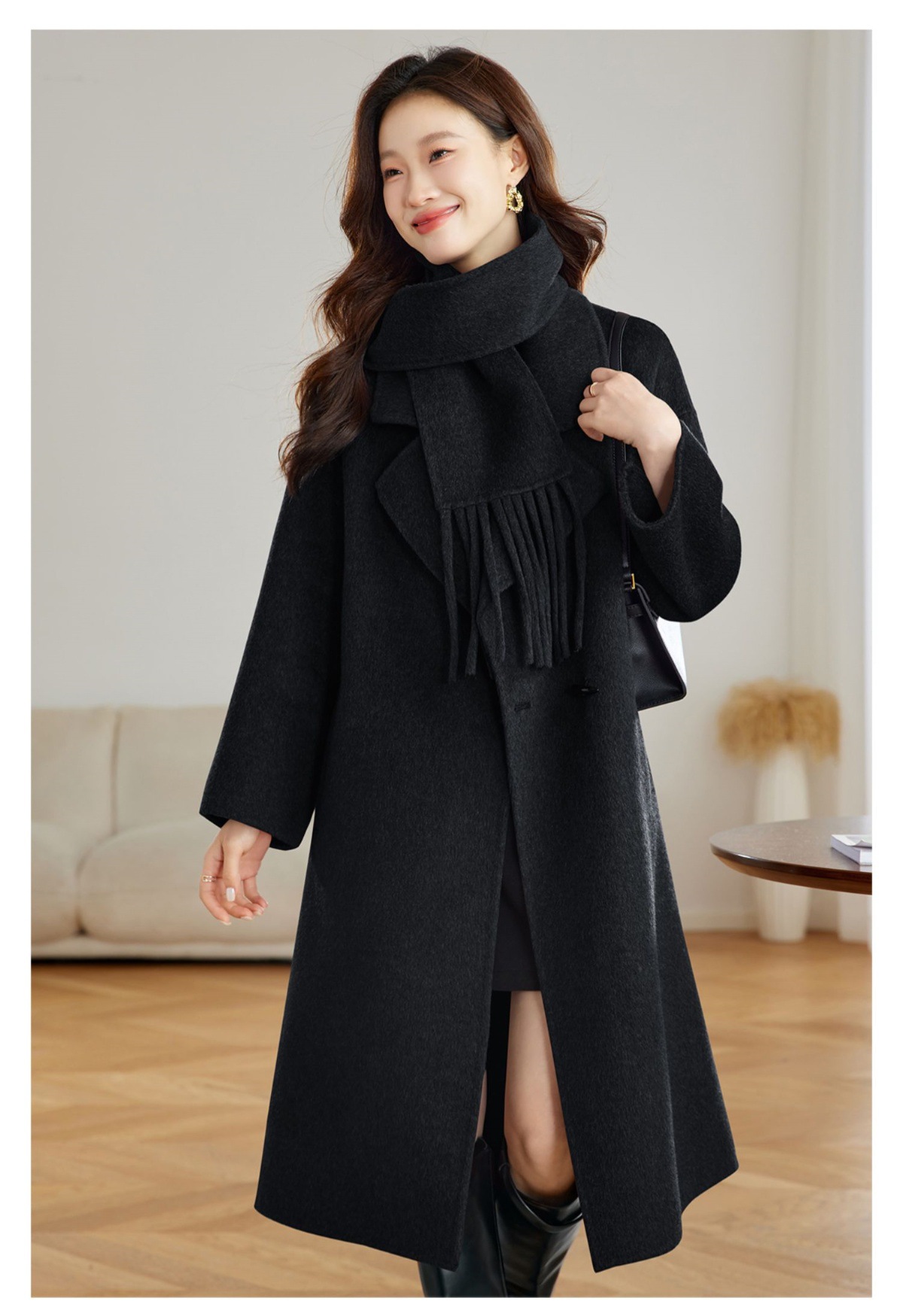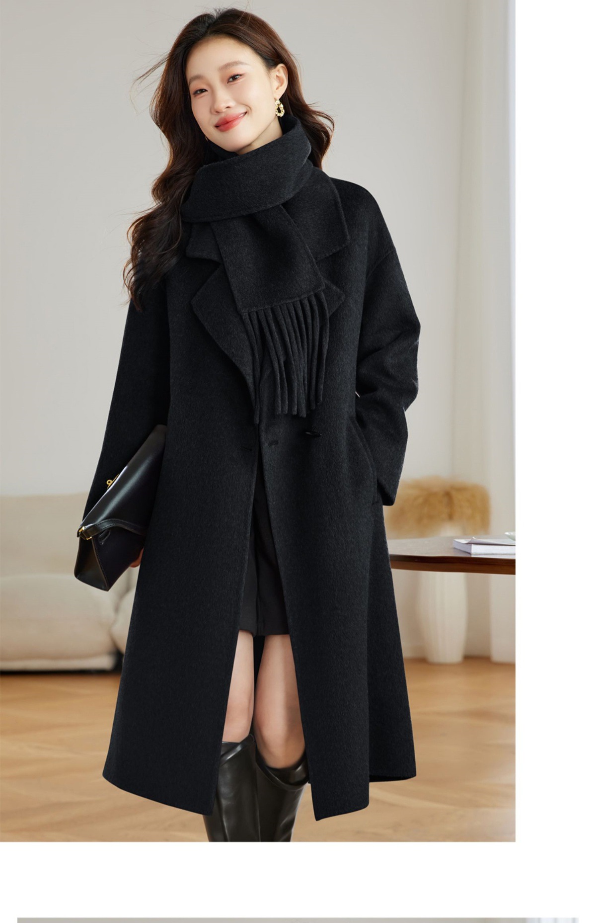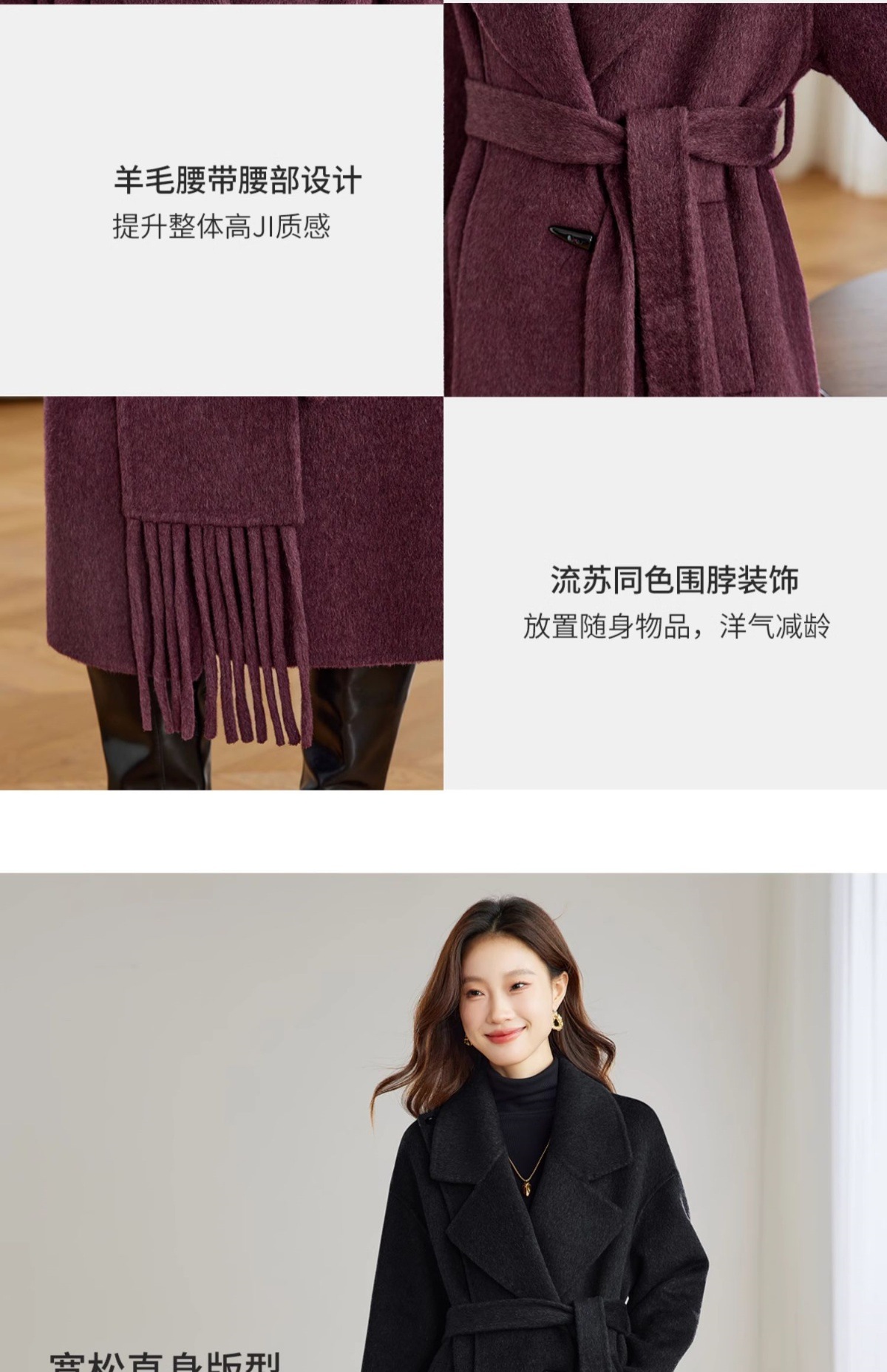 赫本毛呢外套,时尚气质显瘦中长款双面呢子大衣HR-ZYIF1123