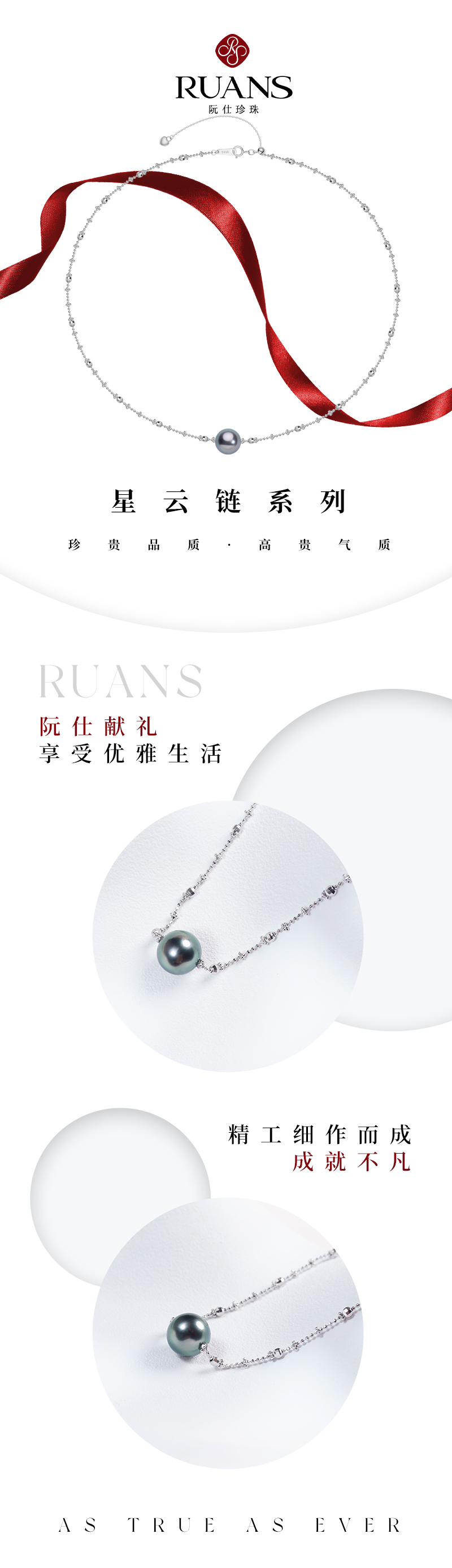 阮仕珍珠 星云链系列S925银 大溪地黑珍珠链牌 10-11mm 圆 小瑕 极强光