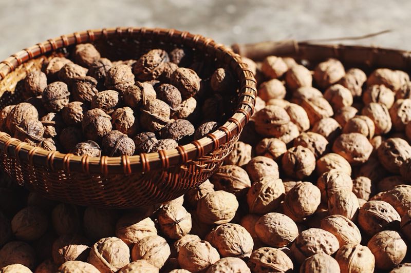 云南丽江塔城,是三江并流腹地的一块风水宝地,海拔2800米不止,与香格里拉一江之隔。这里干湿季分明、光照充足、降水均匀、气温适宜,土壤中饱含丰富的多种微量元素和天然有机物质,这种得天独厚条件下生长的铁皮核桃集天地之灵气,品质上乘。在蓝天下的蜿蜒小道行驶,能遇到的,除了牛羊成群,便是应接不暇的古核桃树。在这附近的村落里,家家户户都有核桃树,核桃树长在山上,有些甚至是大石头缝里。