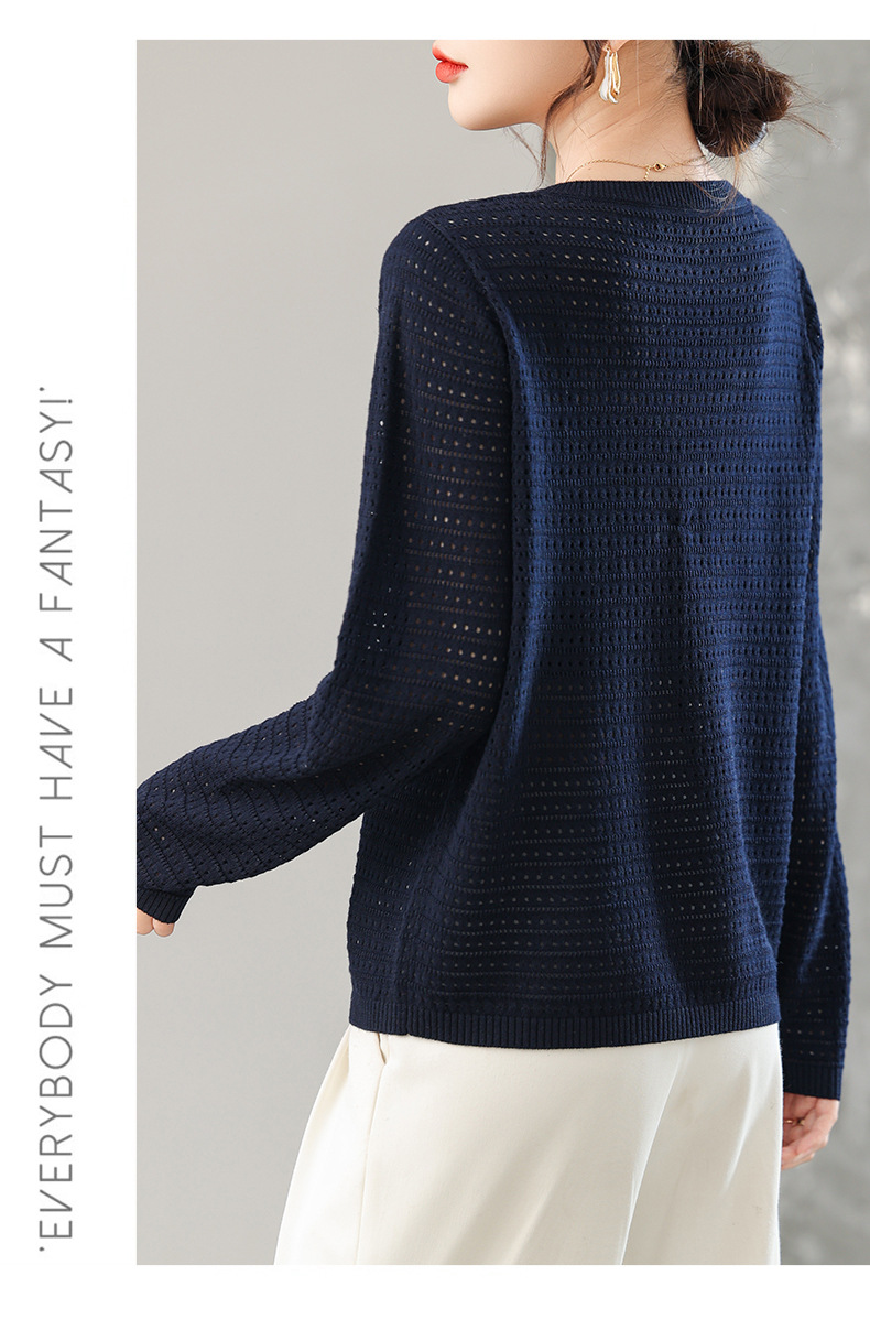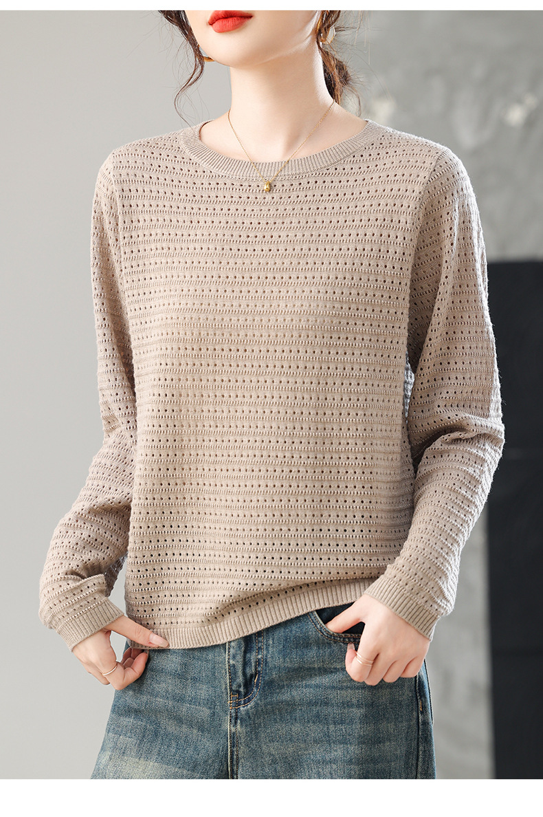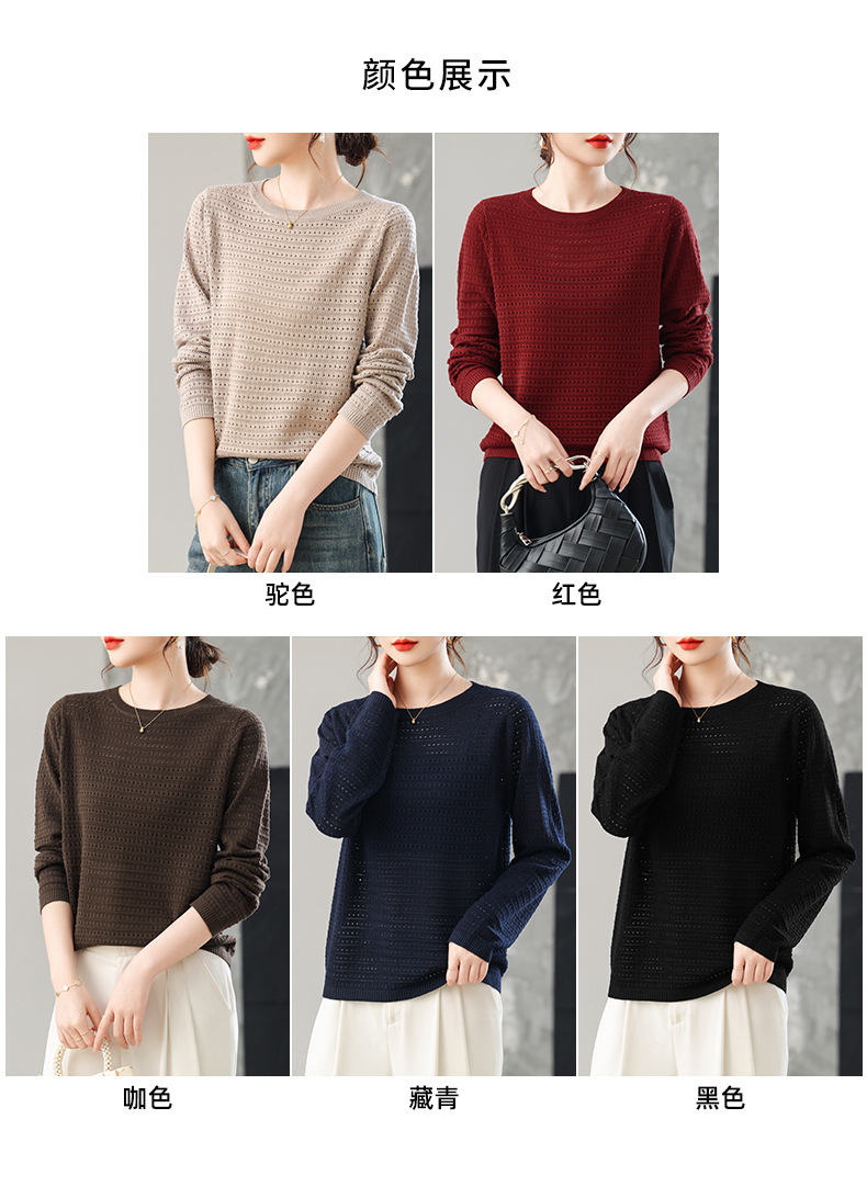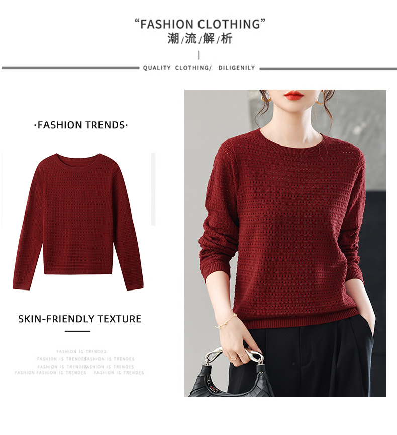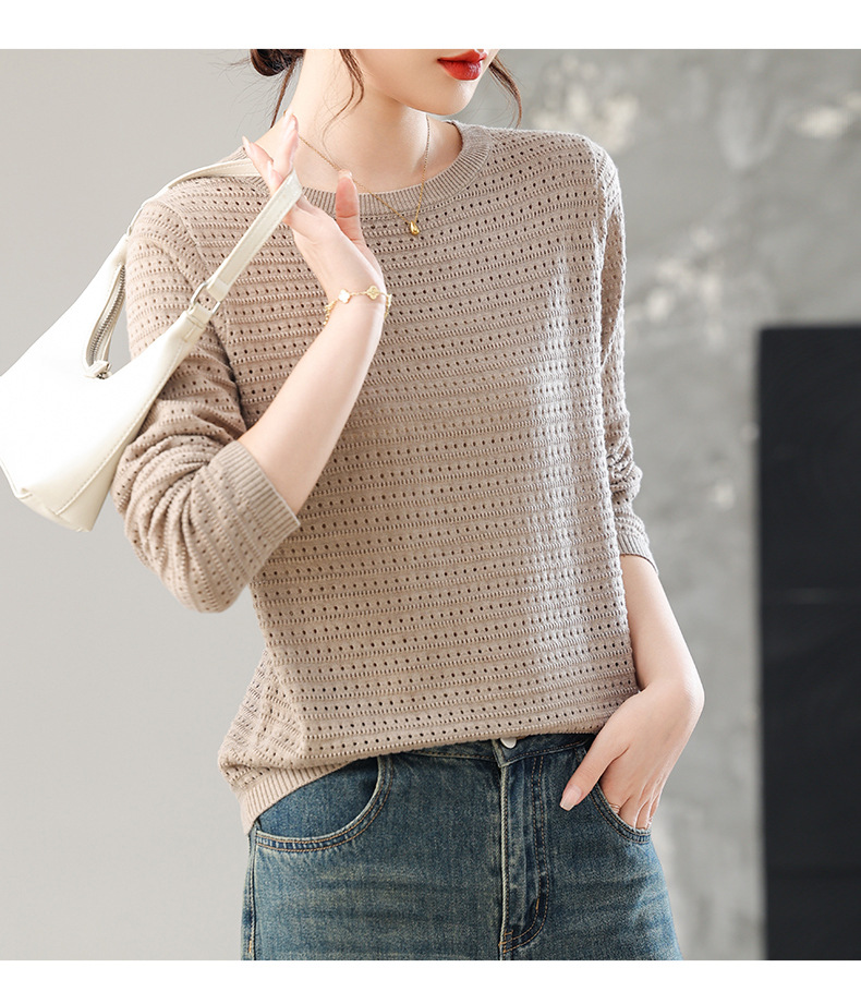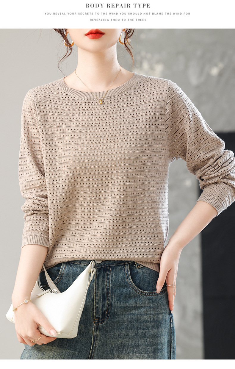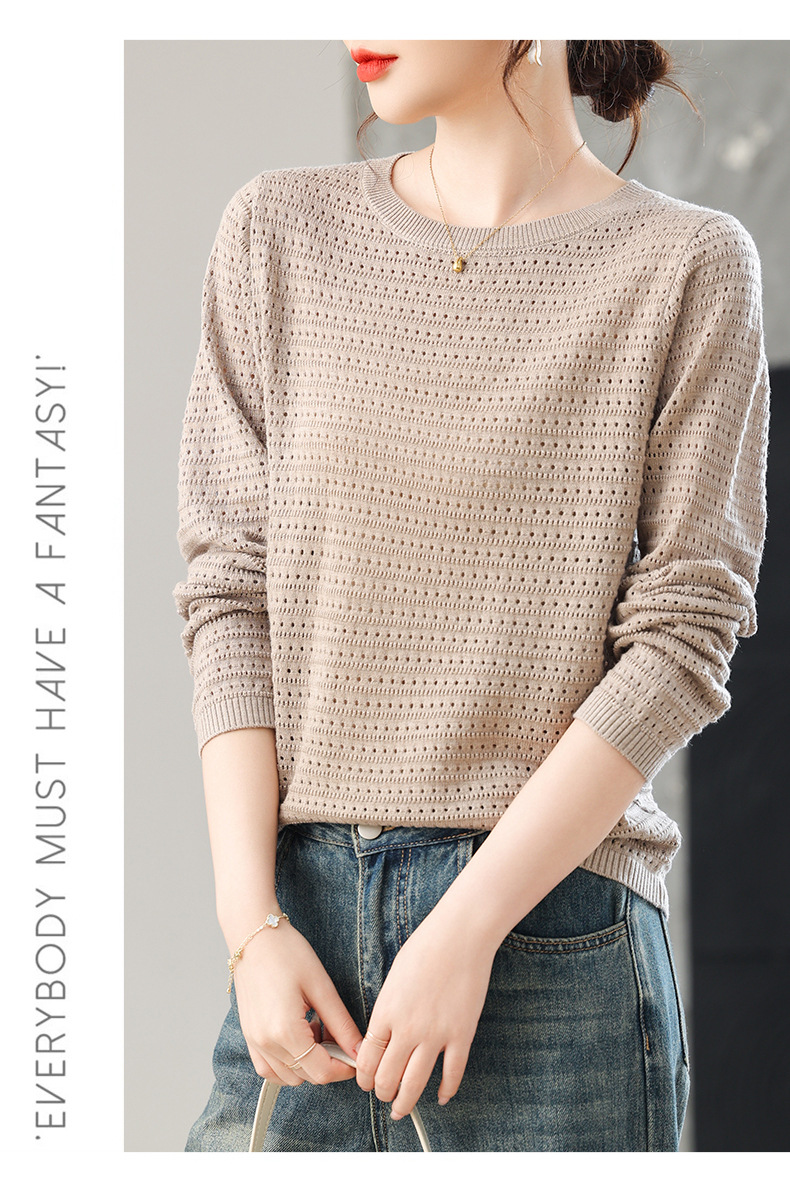CC早秋薄款针织衫长袖镂空上衣秋装2025新款女装圆领宽松打底衫毛衣